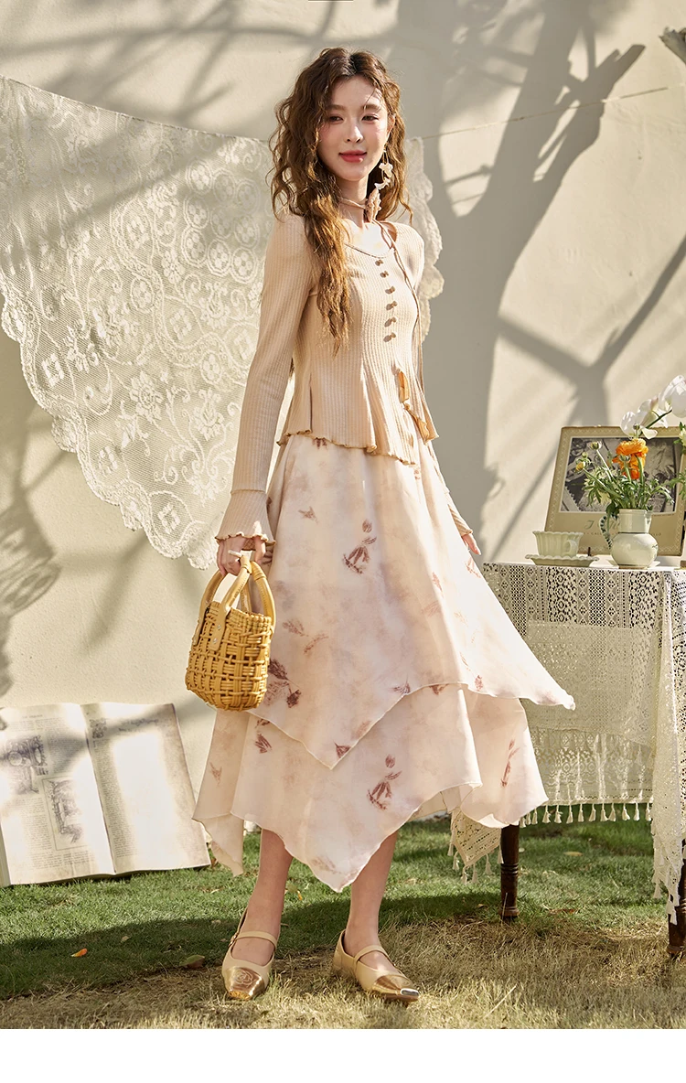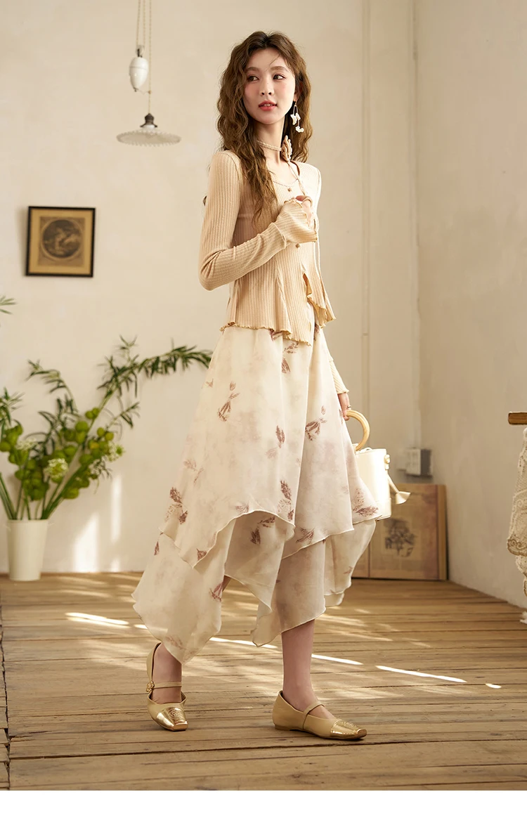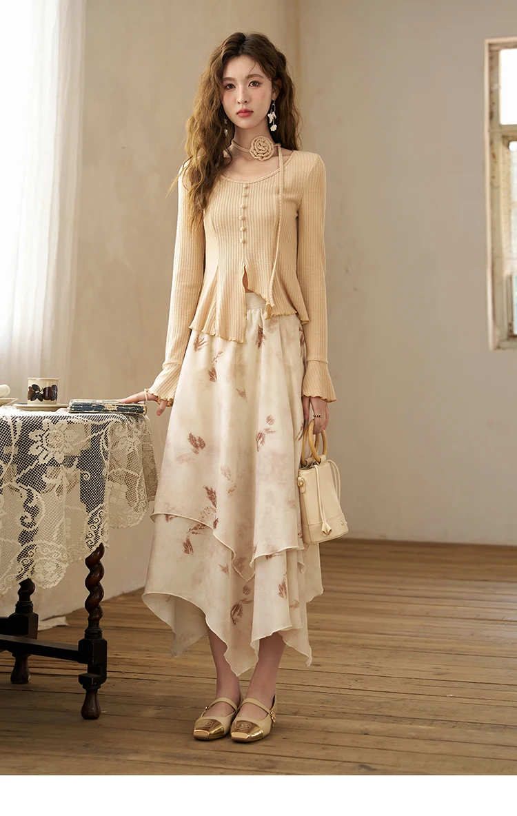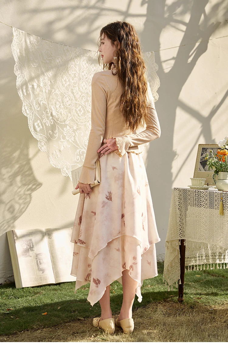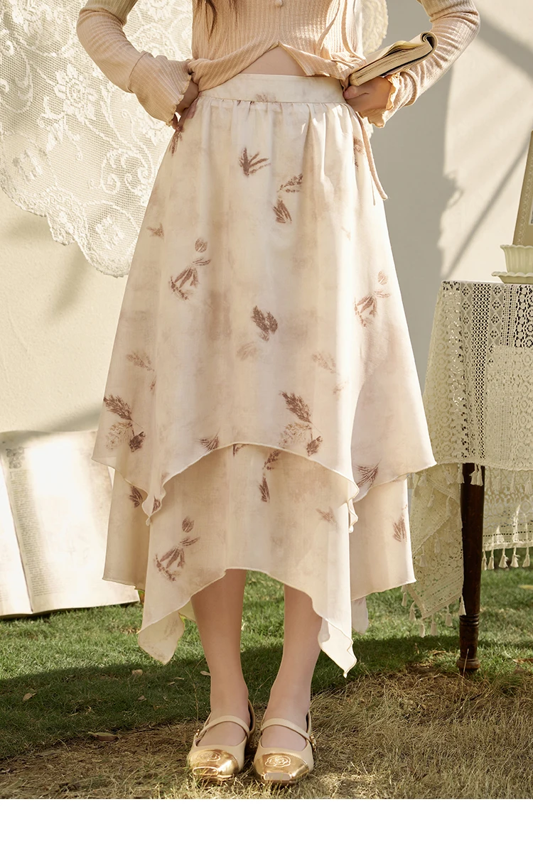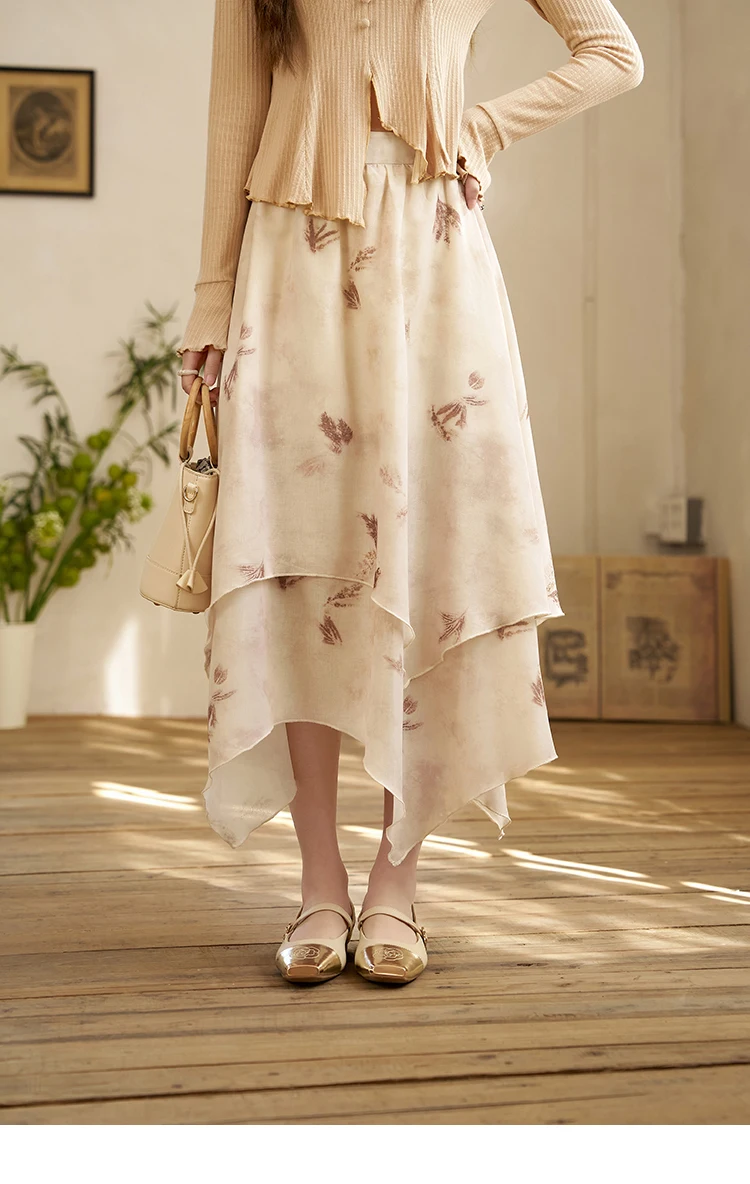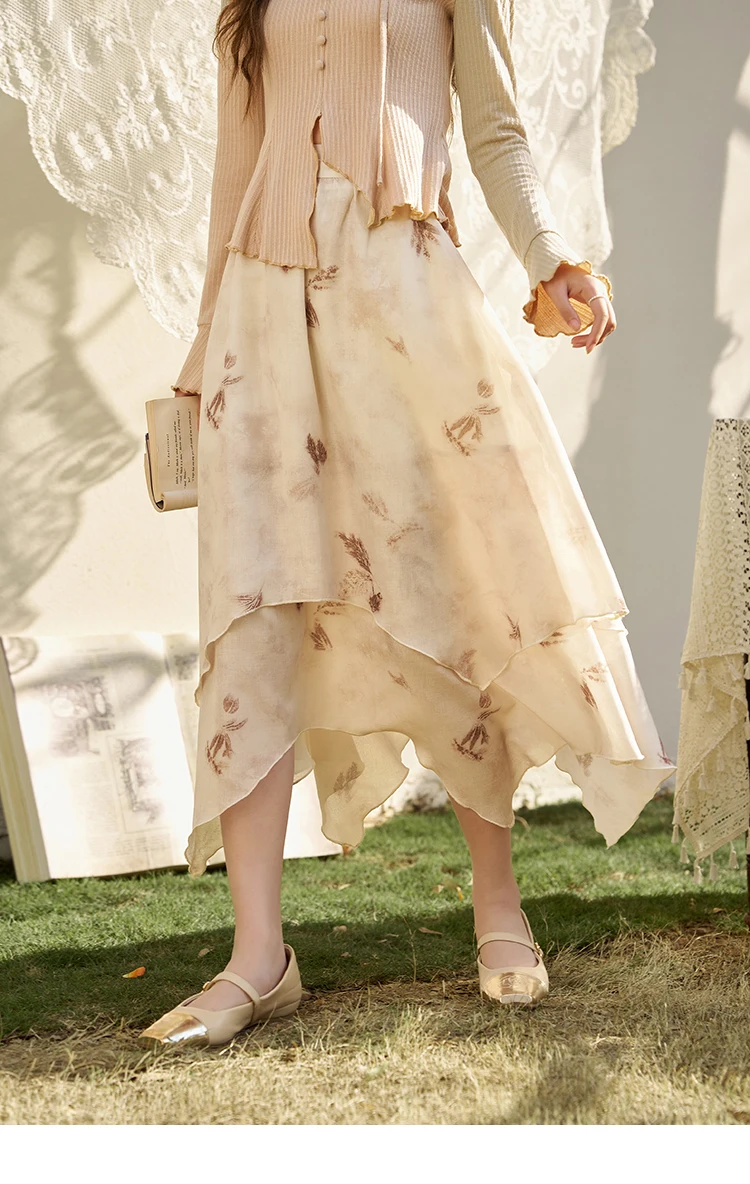 MISHOW Long Flowy Skirt for Women 2024 Spring Irregular High Waist A-Line Print Beach Zipper Skirts Woman Clothing MXD11B0215