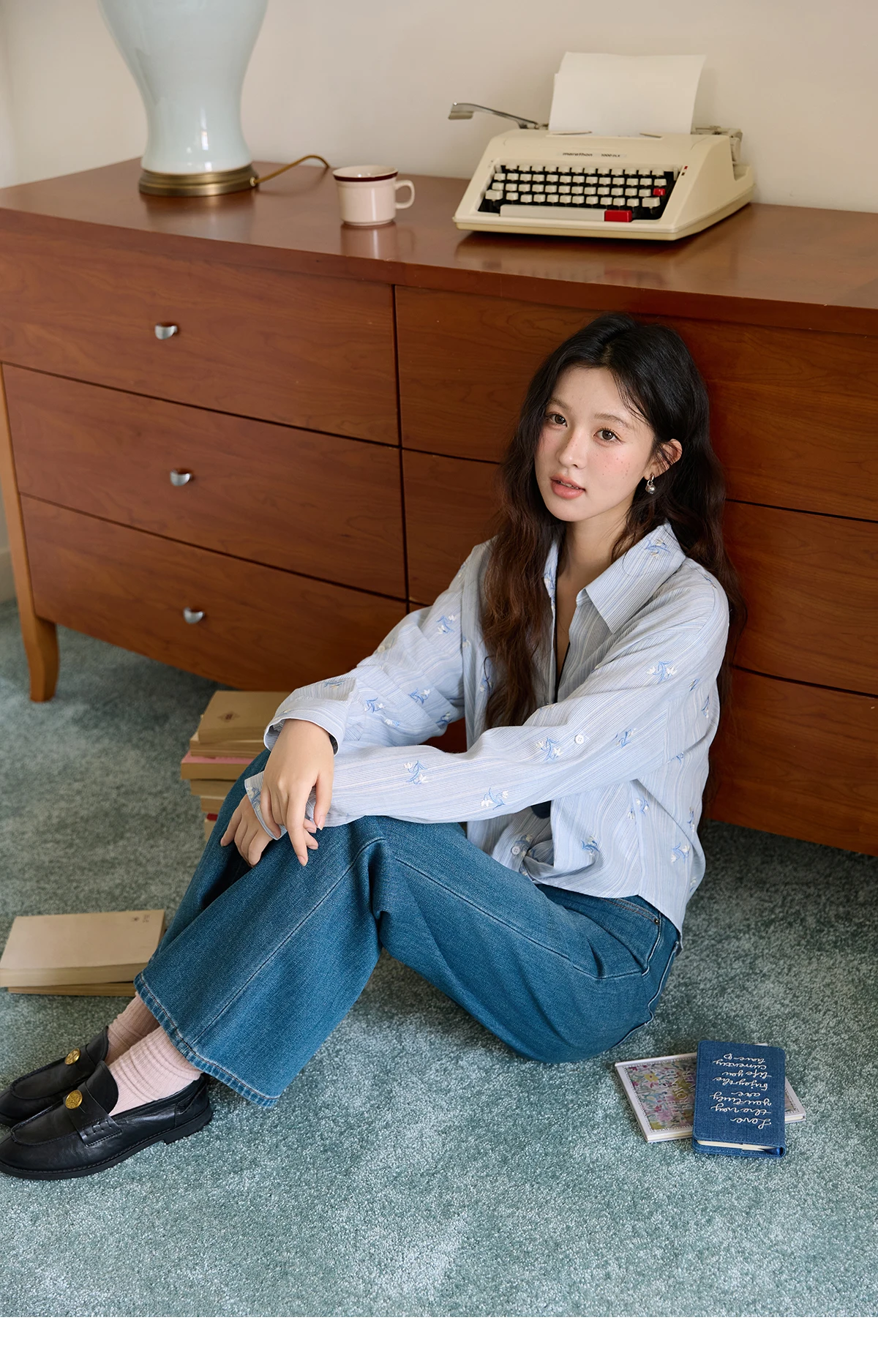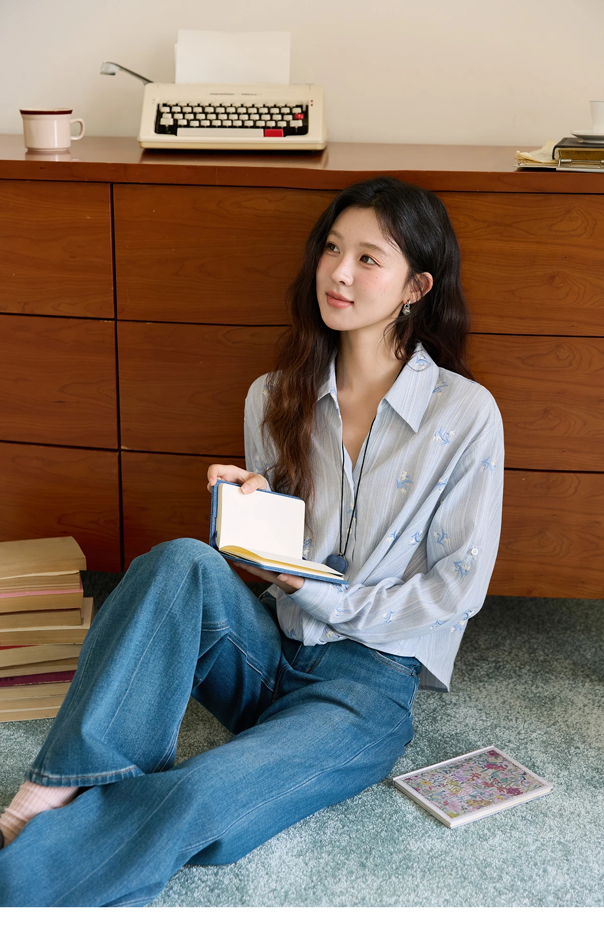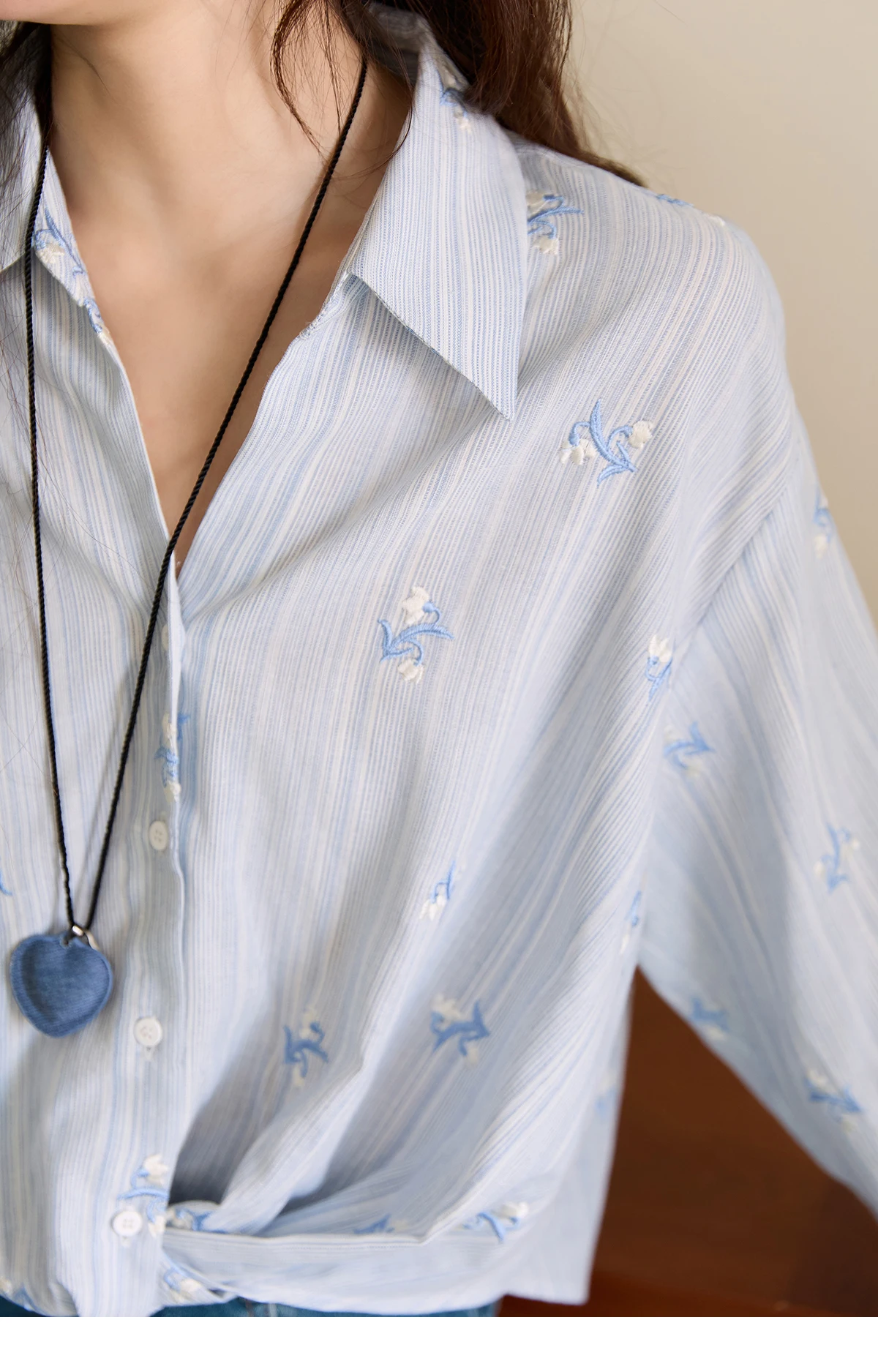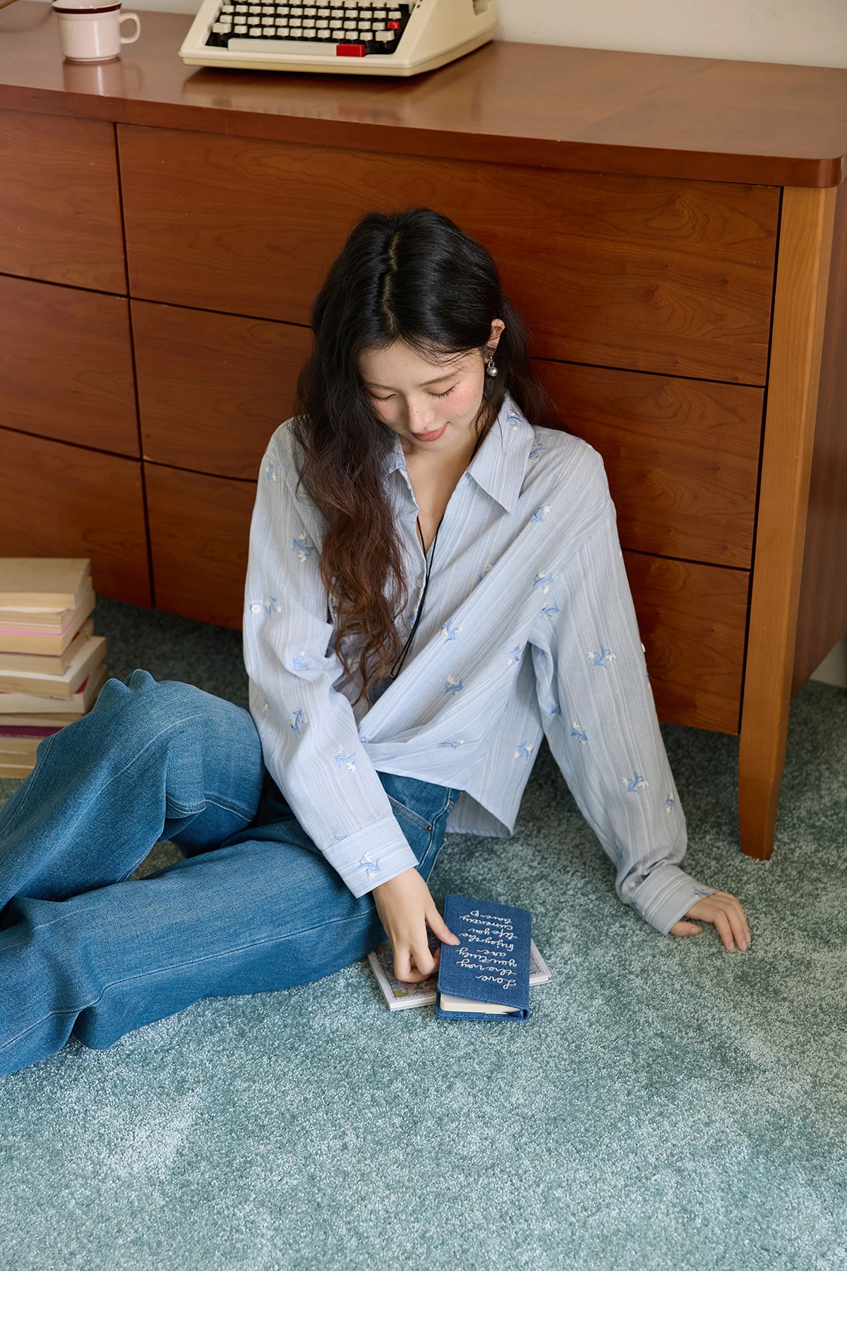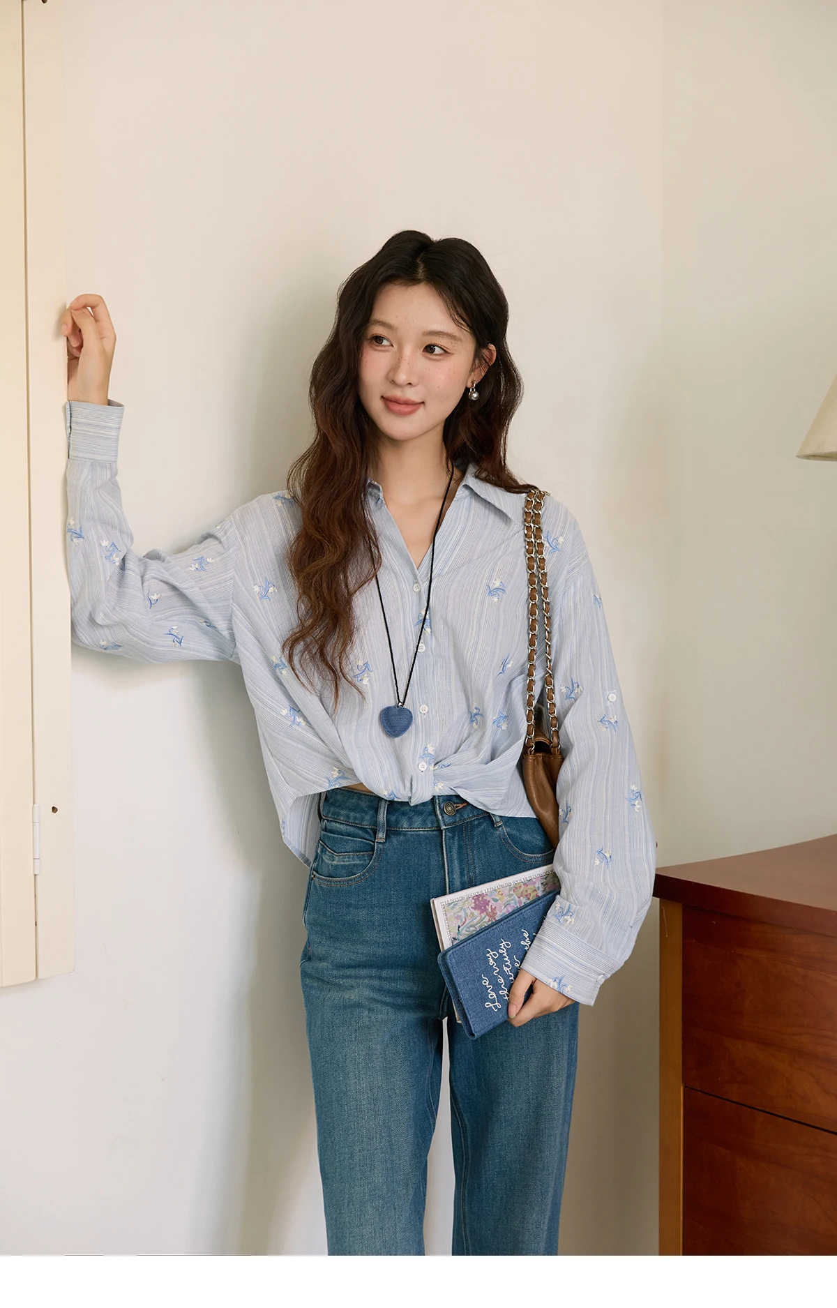 MISHOW Long Sleeve Shirts for Woman 2025 Autumn Retro Blue Single-breasted Blouse Floral Embroidery Casual Tops MXE45X2495