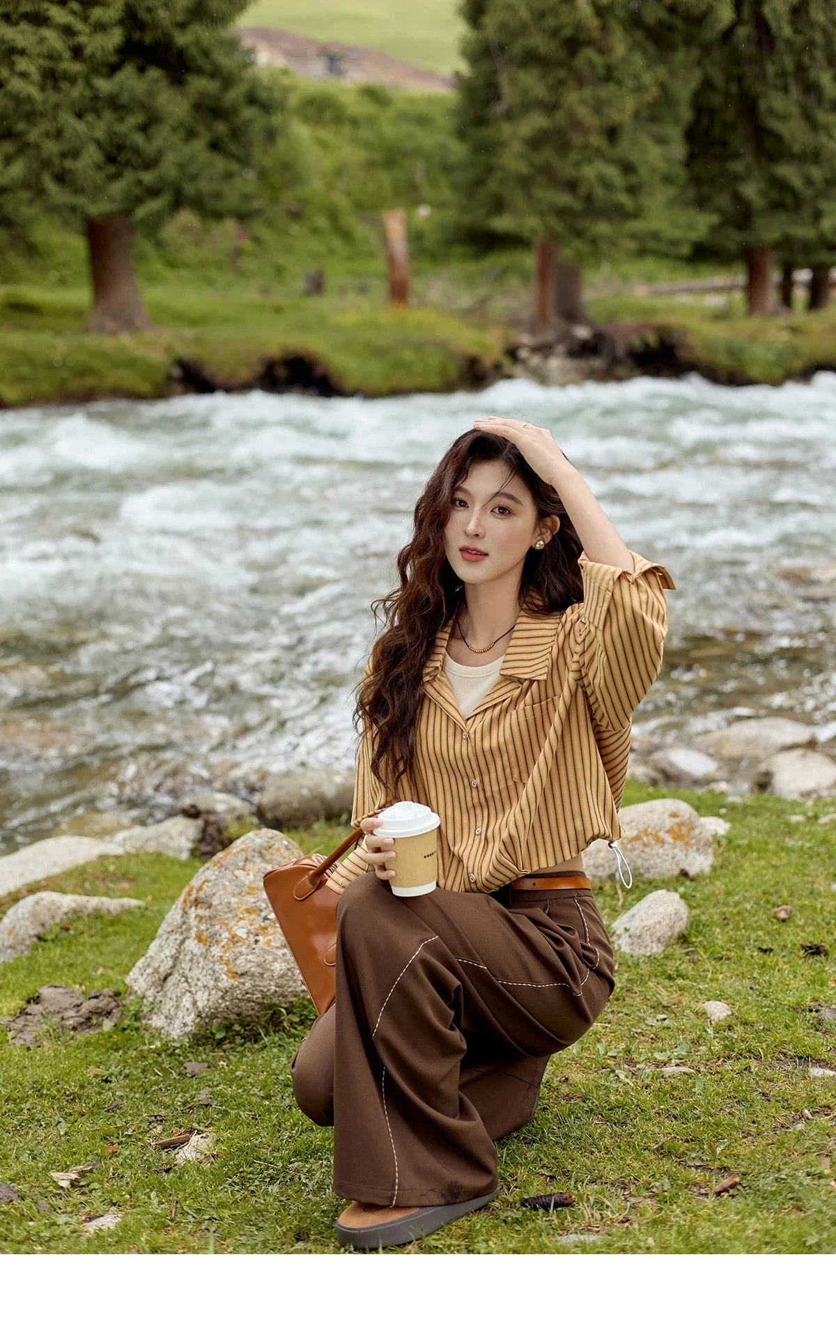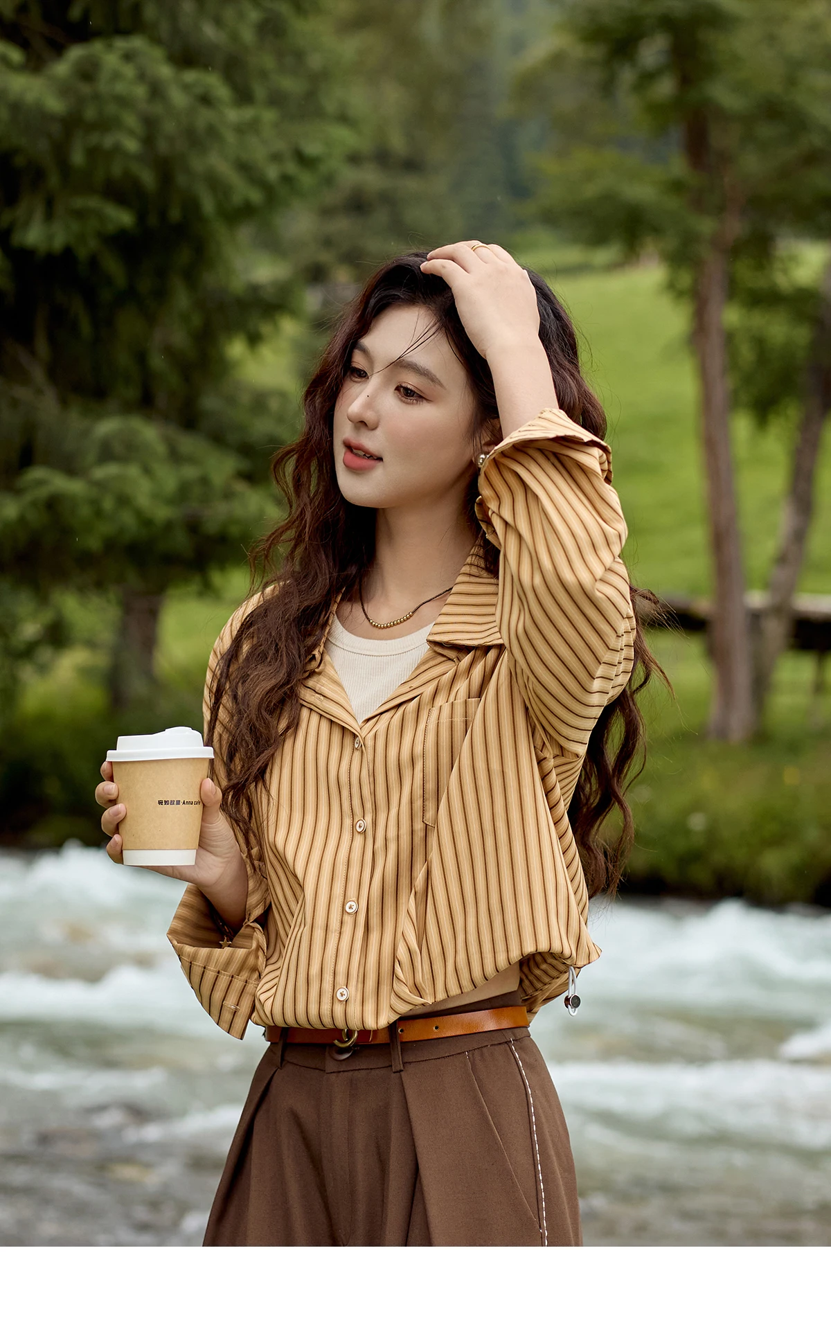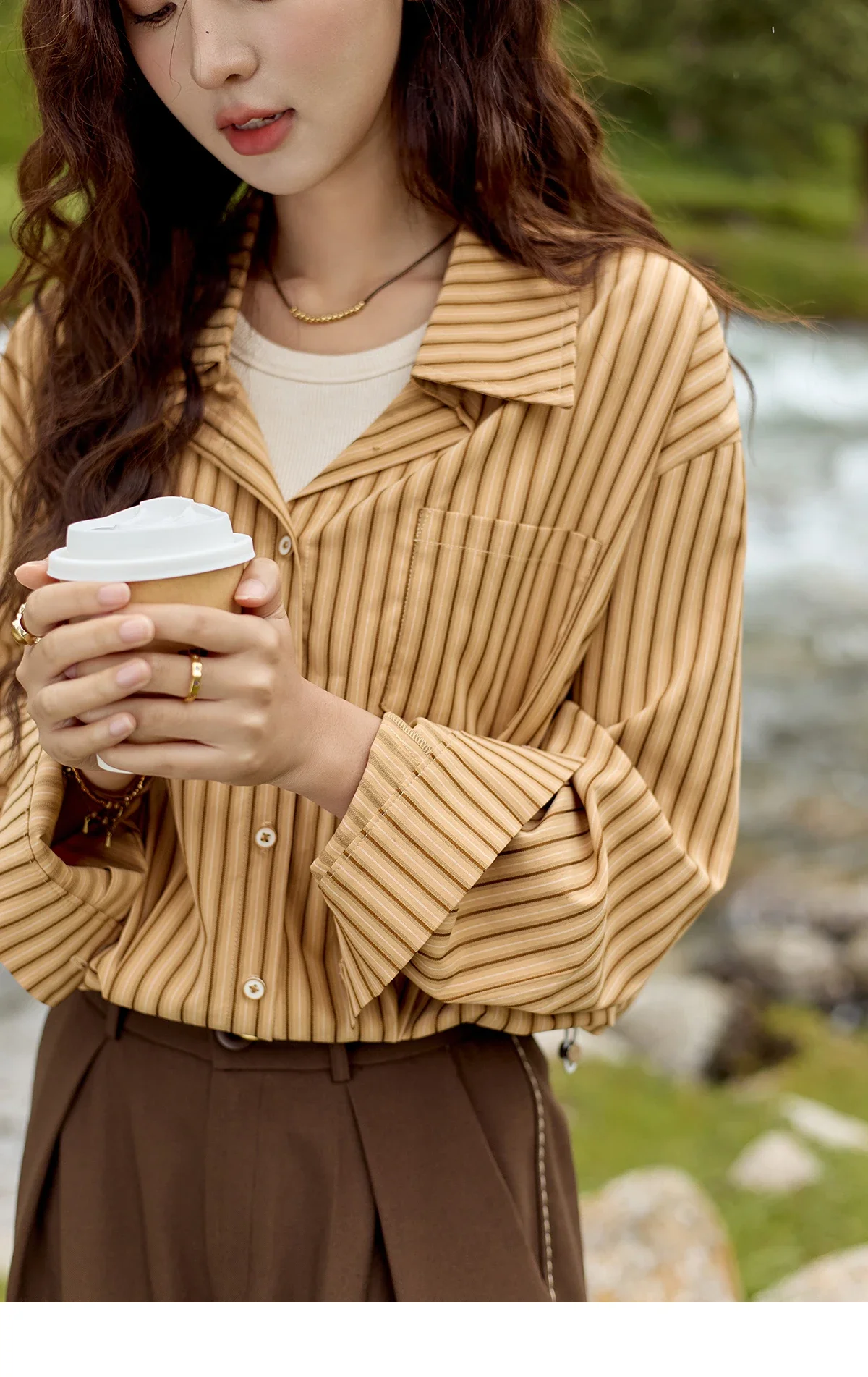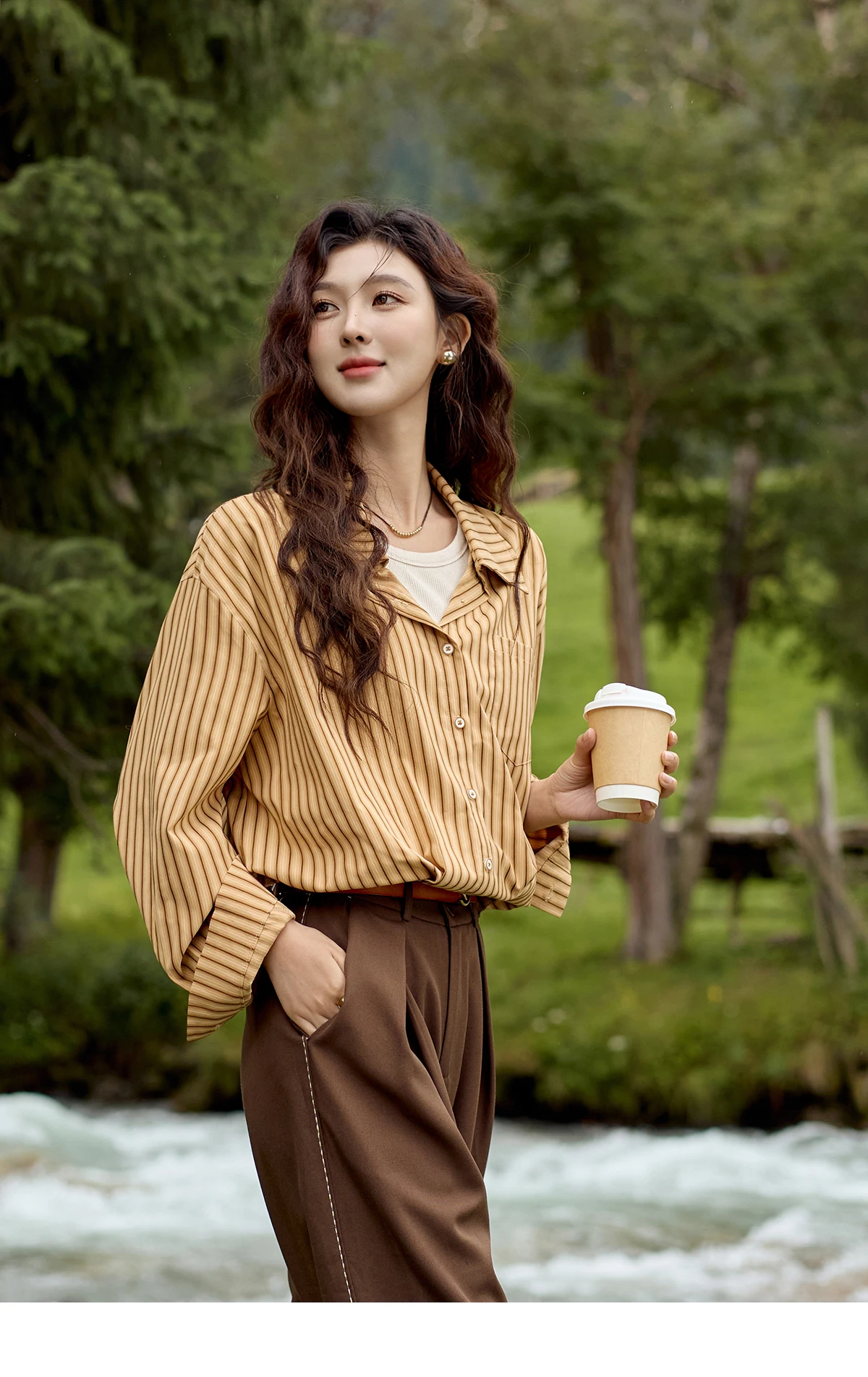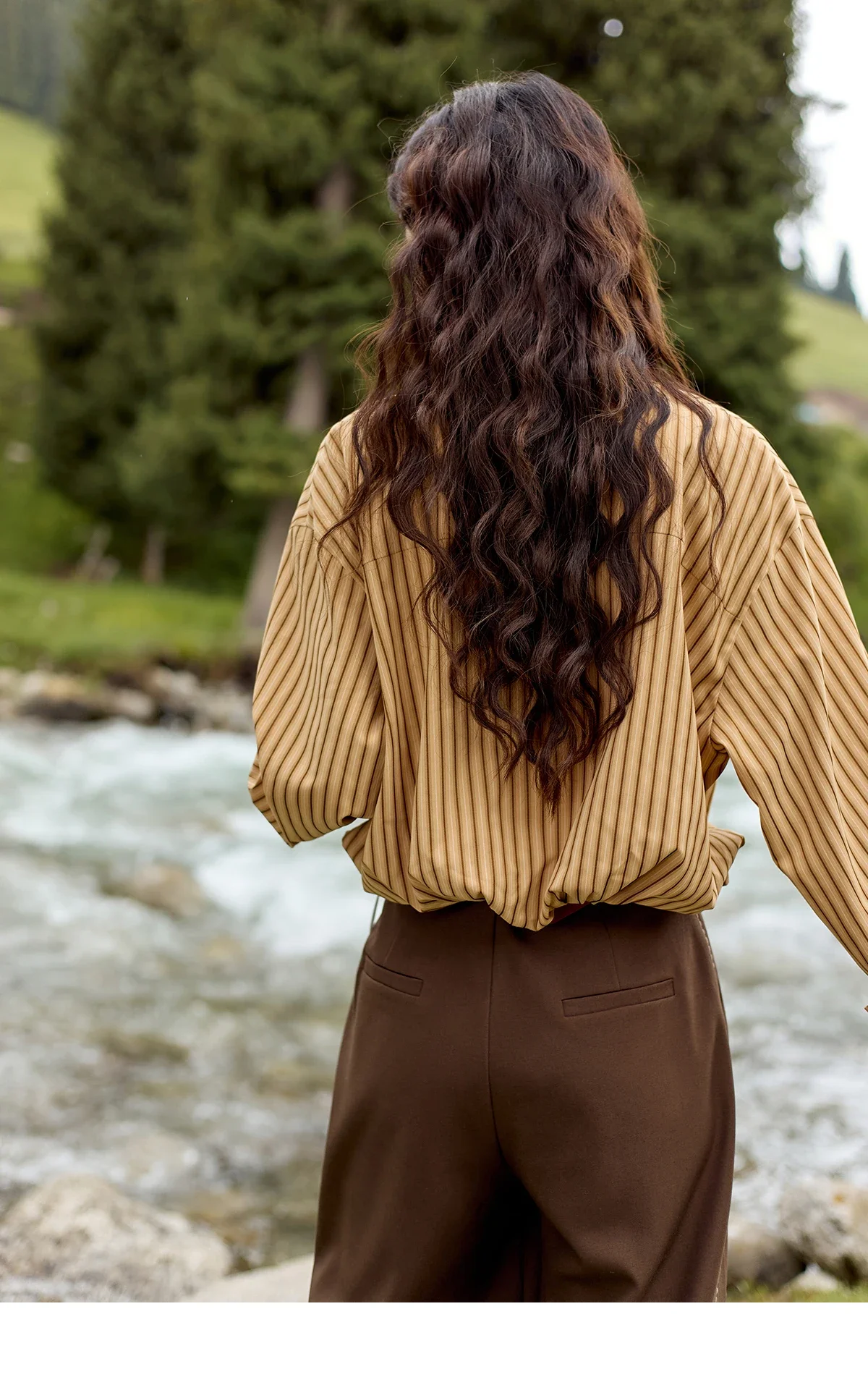 MISHOW Loose Lapel Collar Stripe Fake Two Piece Splicing Shirt for Women 2025 O-neck Asymmetric Square Pocket Shirts MXD43C0303