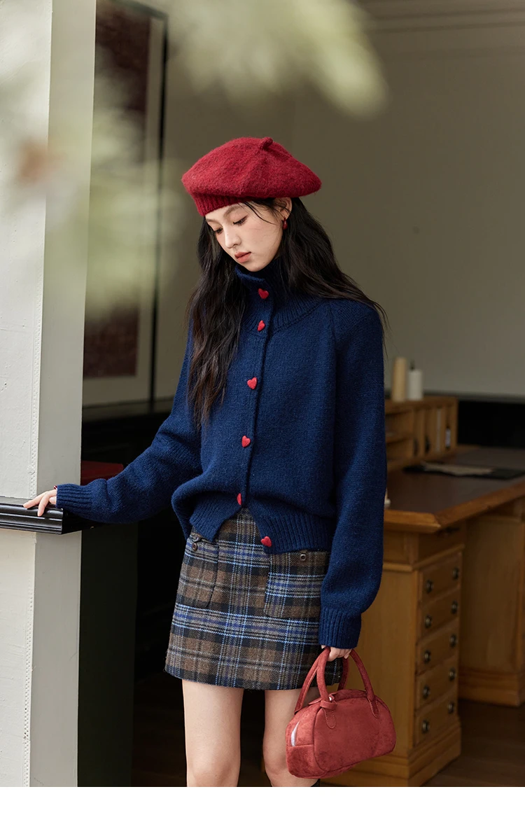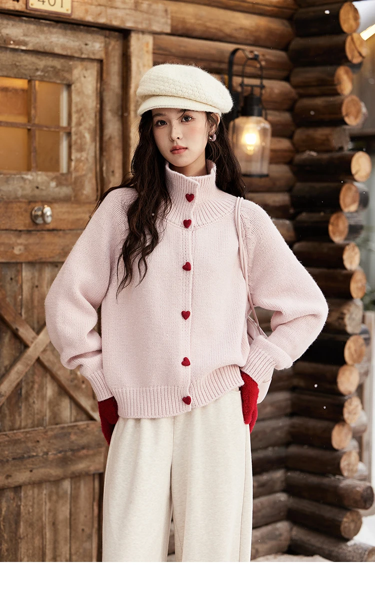 MISHOW Love Heart Button Sweater Color Clash Women Winter Clothing Knitted Cardigan Loose Versatile Thick Warm Tops MXD58Z1127