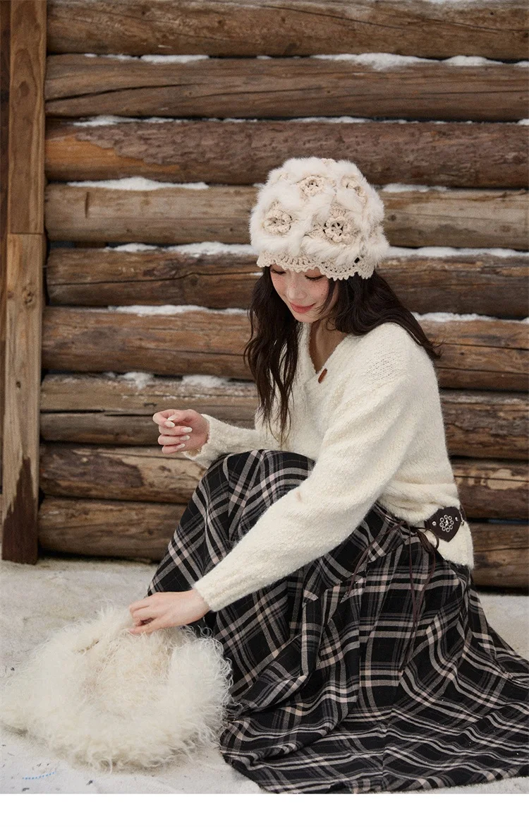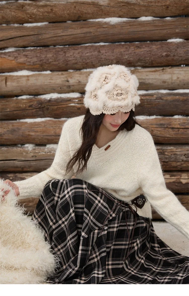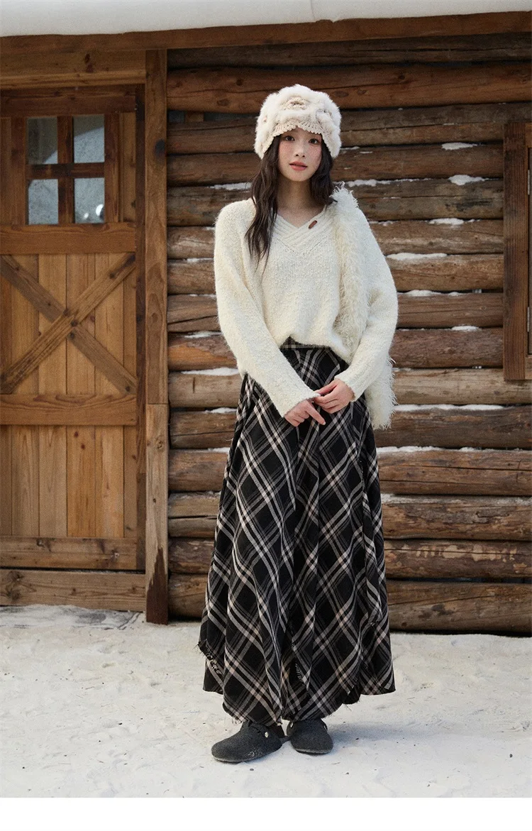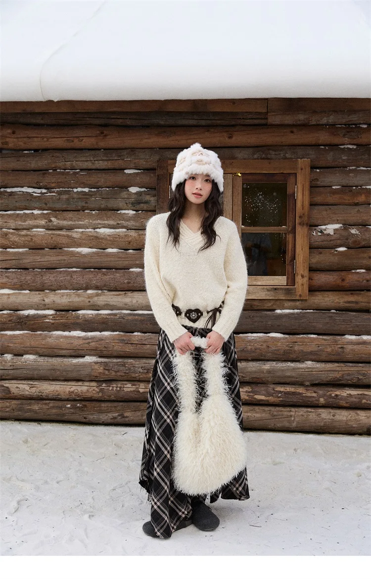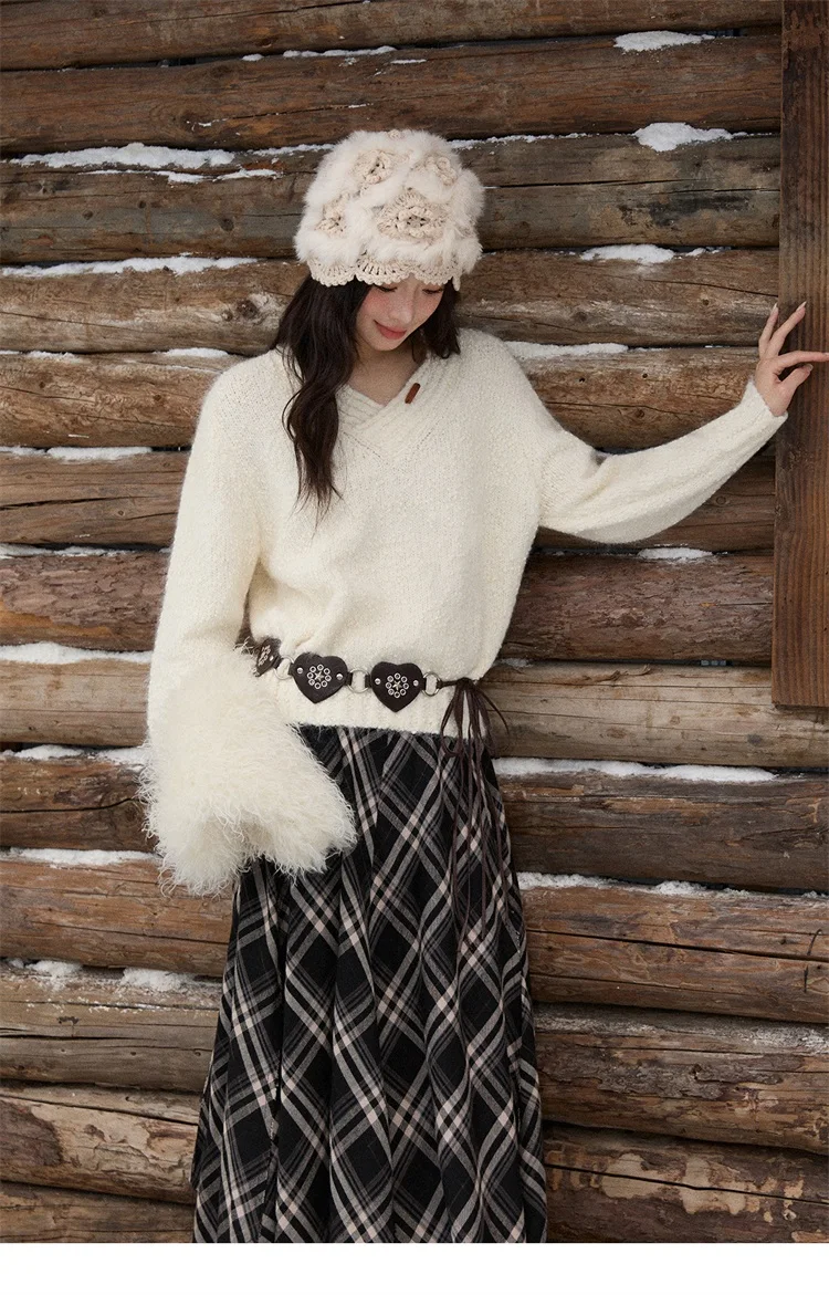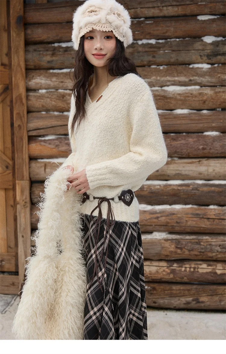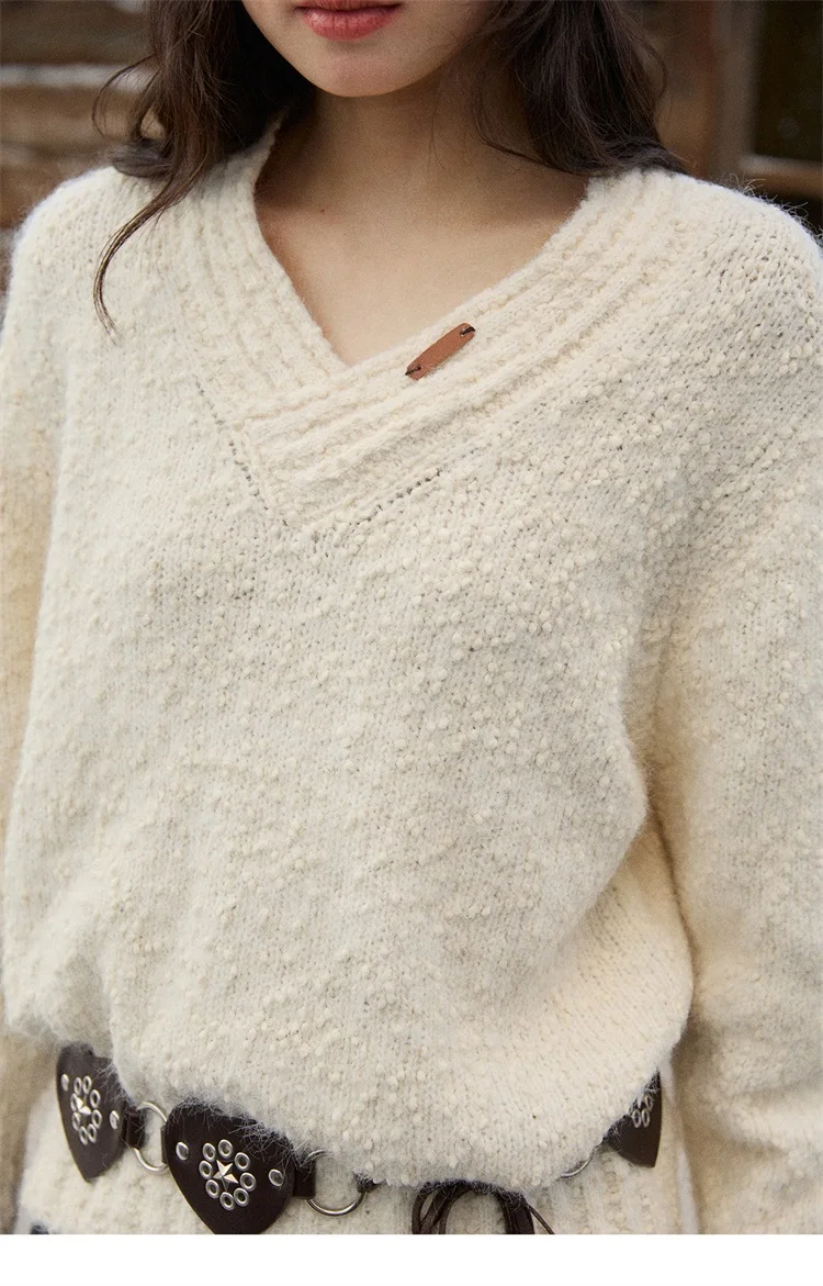 MISHOW Luxury Women Sweaters 2025 Winter Elegant V-neck Thick Pullovers Retro Ribbed Cuff Versatile Long-sleeved Top MXE87Z2755