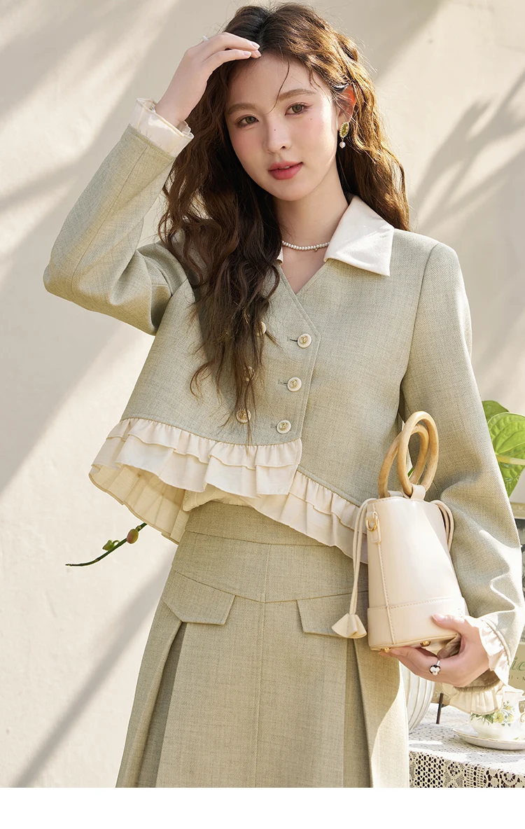 MISHOW Mini Skirt Jacket Separately Women Outfit 2024 Spring Autumn Fashion Crop Female Jacket Pleated A-line Skirts MXD11W0293