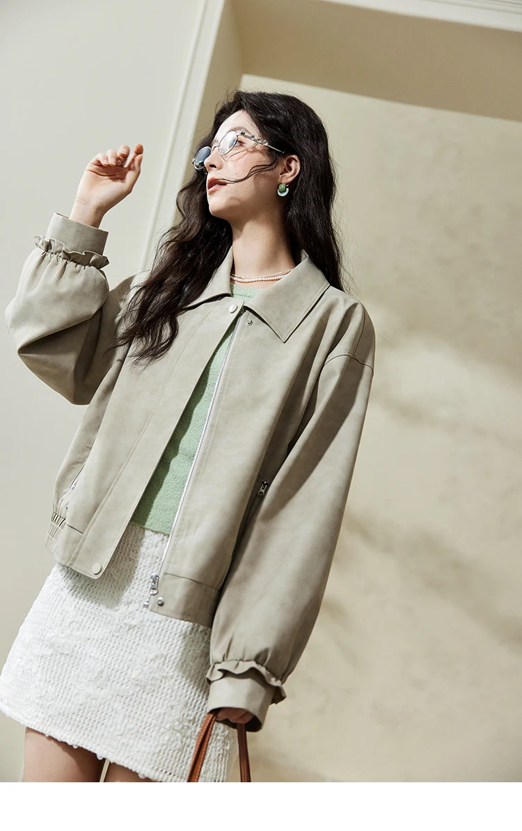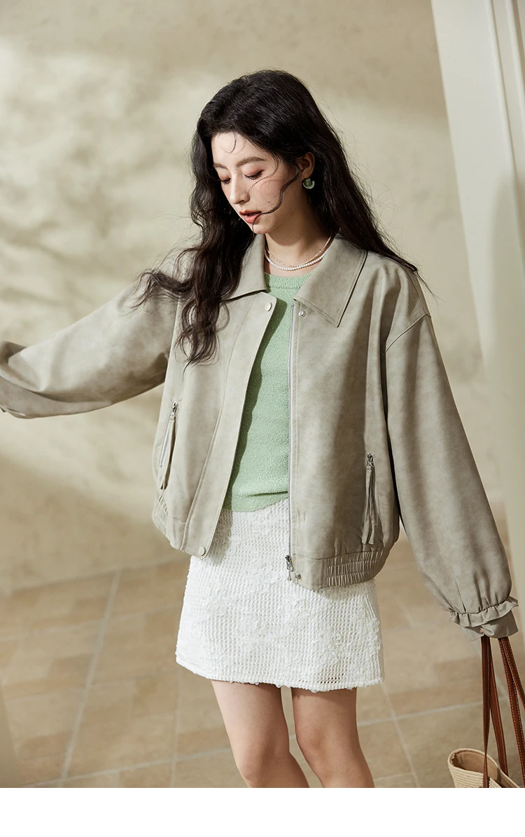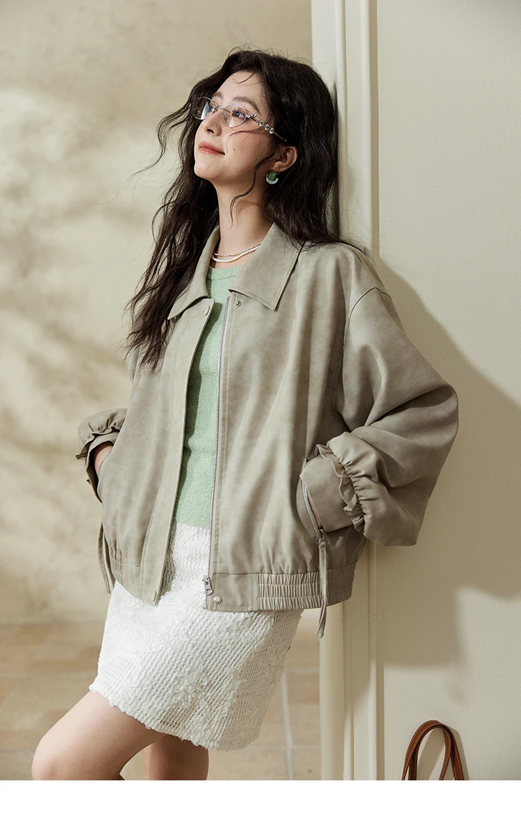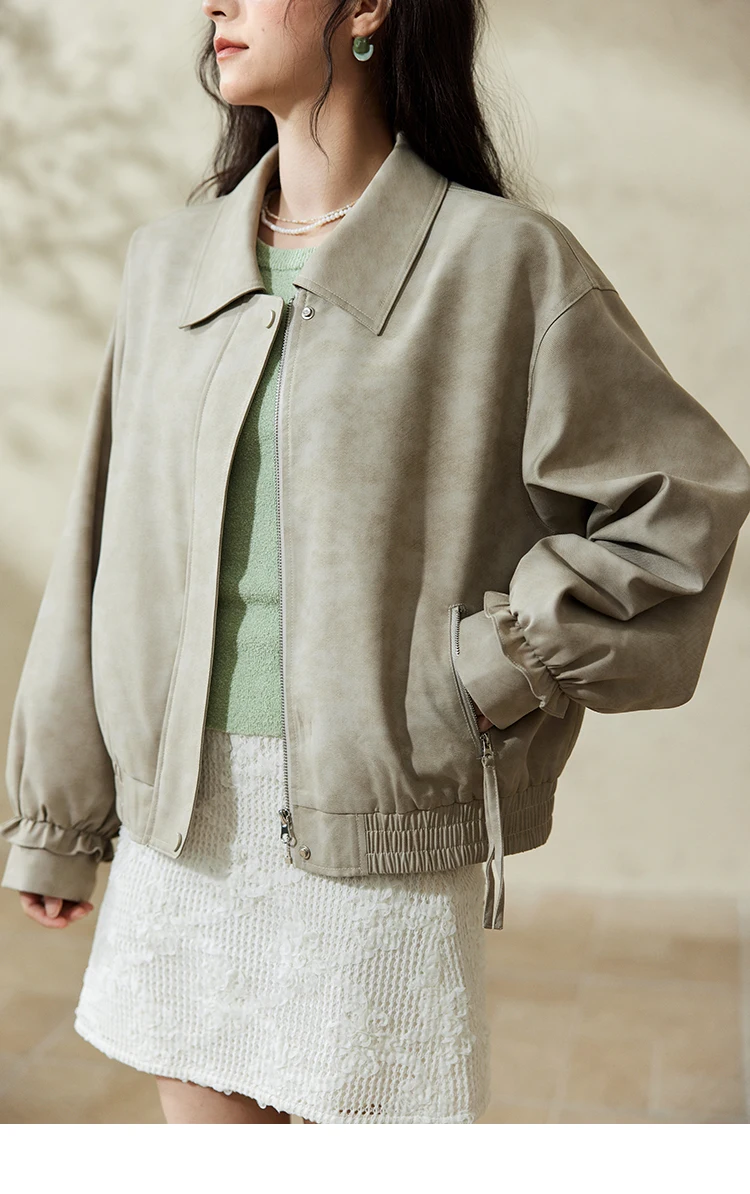 MISHOW Minimalist Short Jacket for Women Spring 2025 Casual Lapel Jacket Zipper Elastic Hem Solid Coats Streetwear MXE13W0715