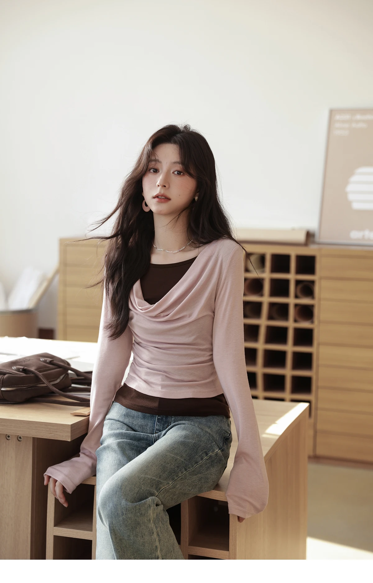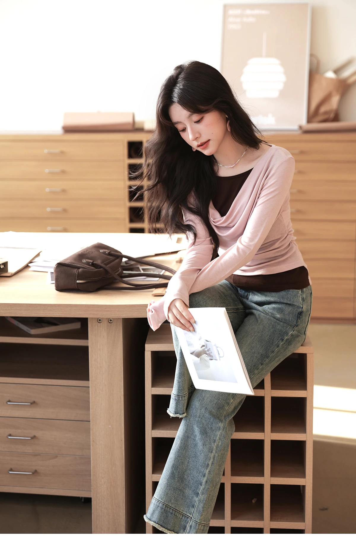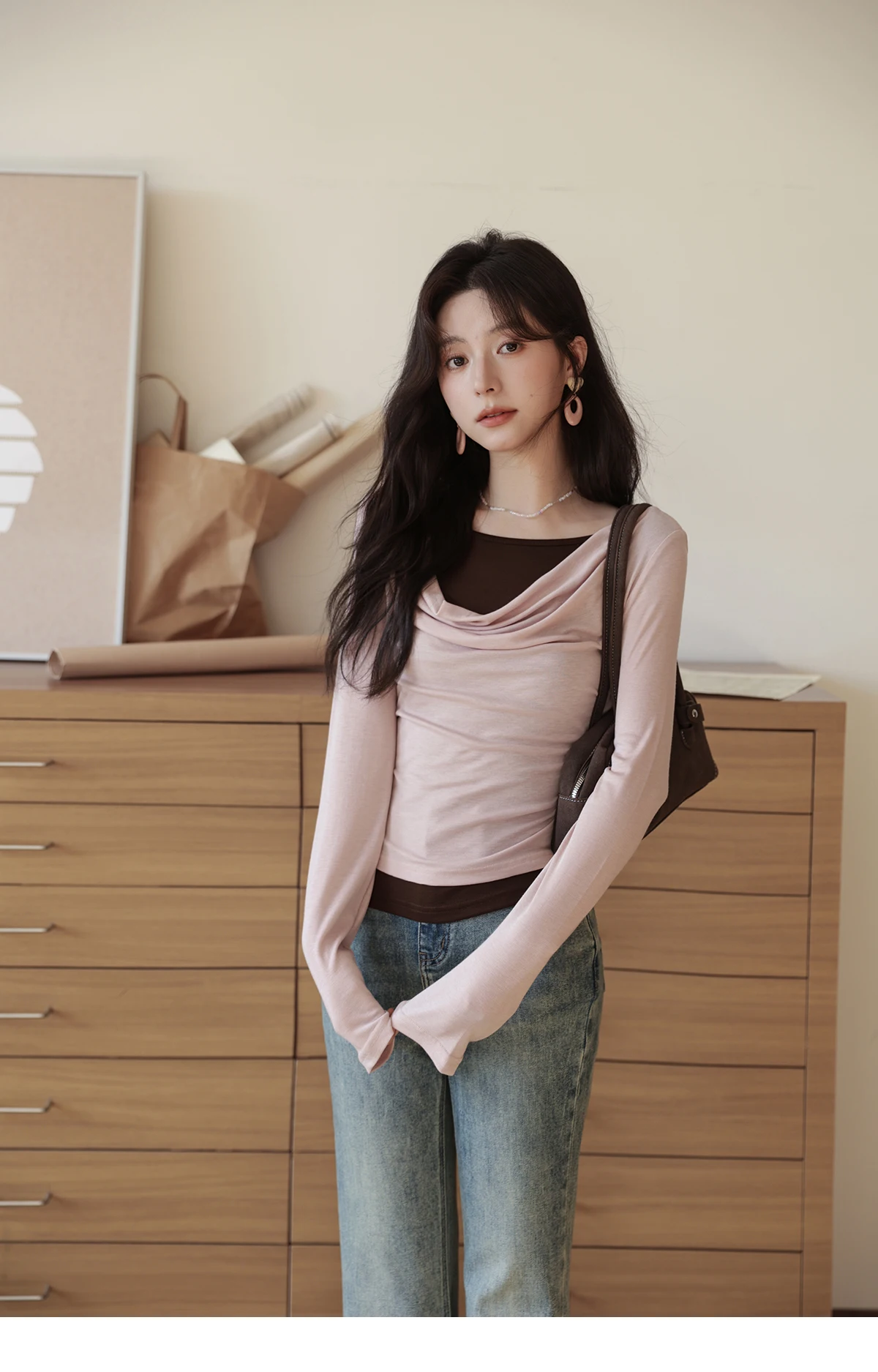 MISHOW Multi Colored Fake Two-piece Knitted Sweater 2025 Autumn Swinging Collar Casual Tops Contrasting Waist Top MXE42Z1341