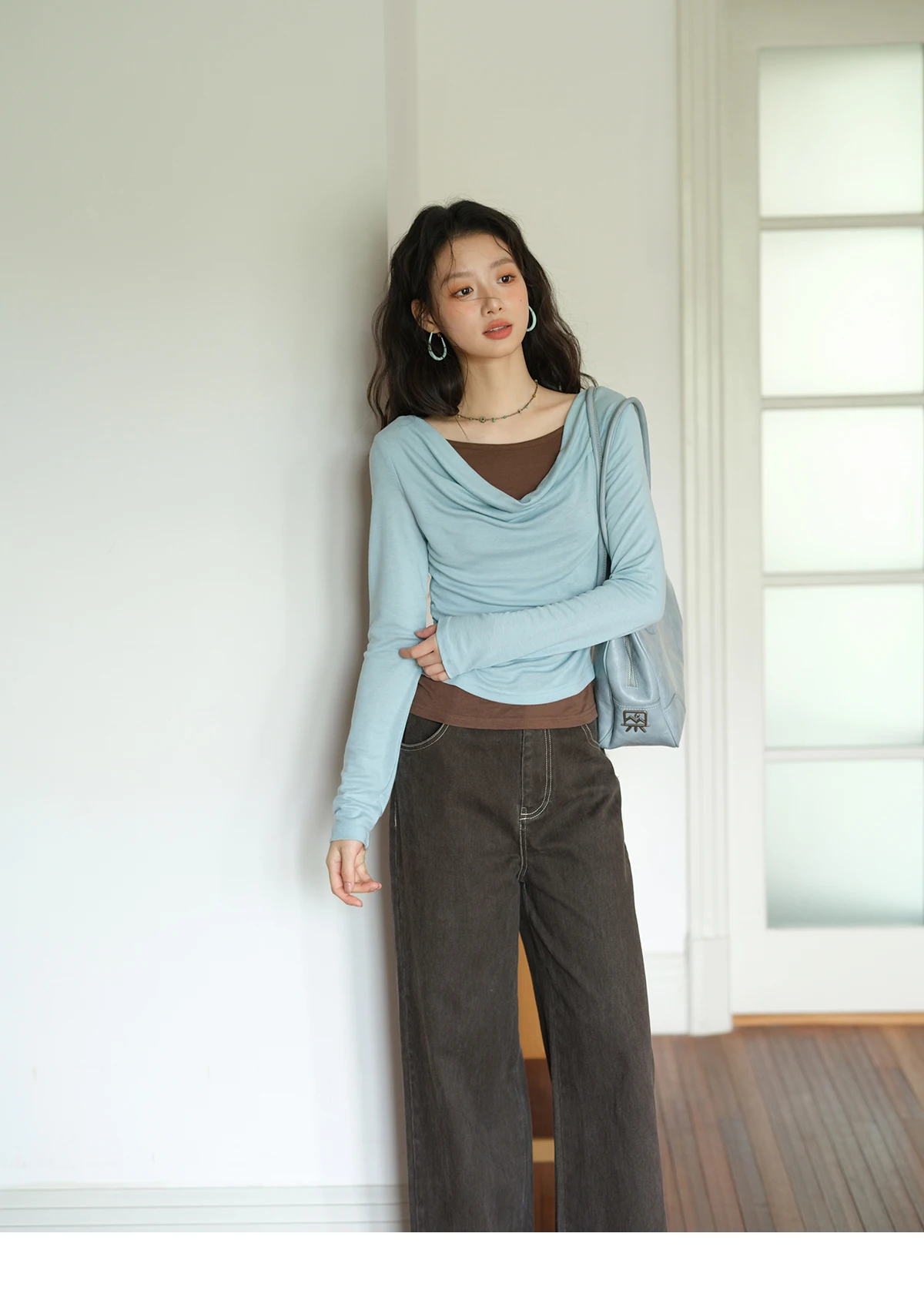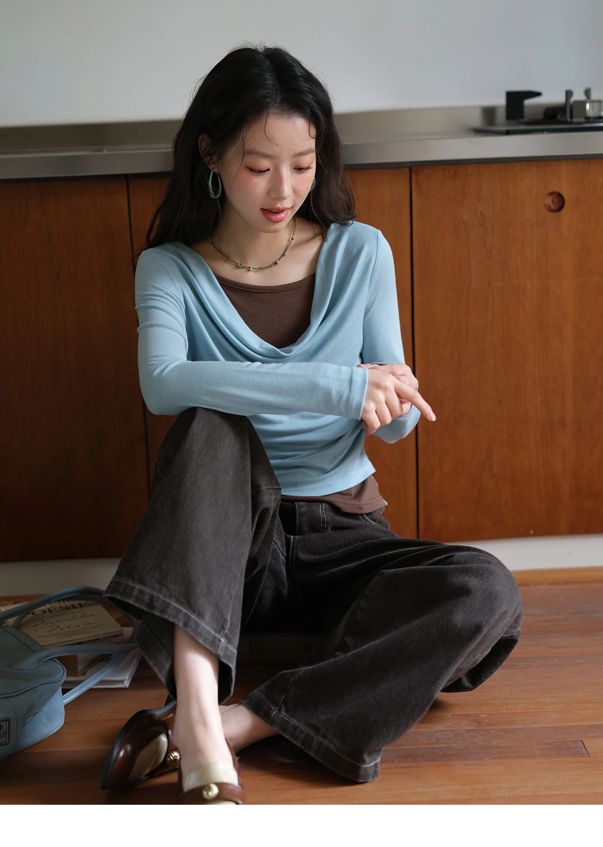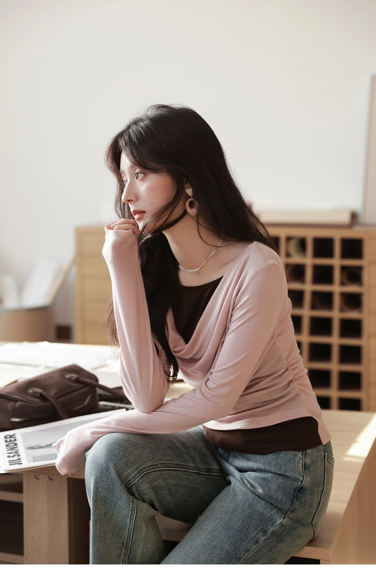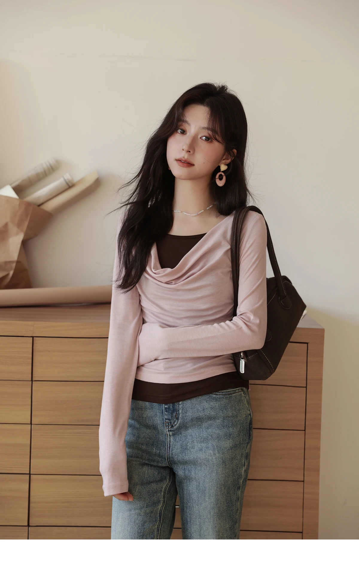MISHOW Multi Colored Fake Two-piece Knitted Sweater 2025 Autumn Swinging Collar Casual Tops Contrasting Waist Top MXE42Z1341