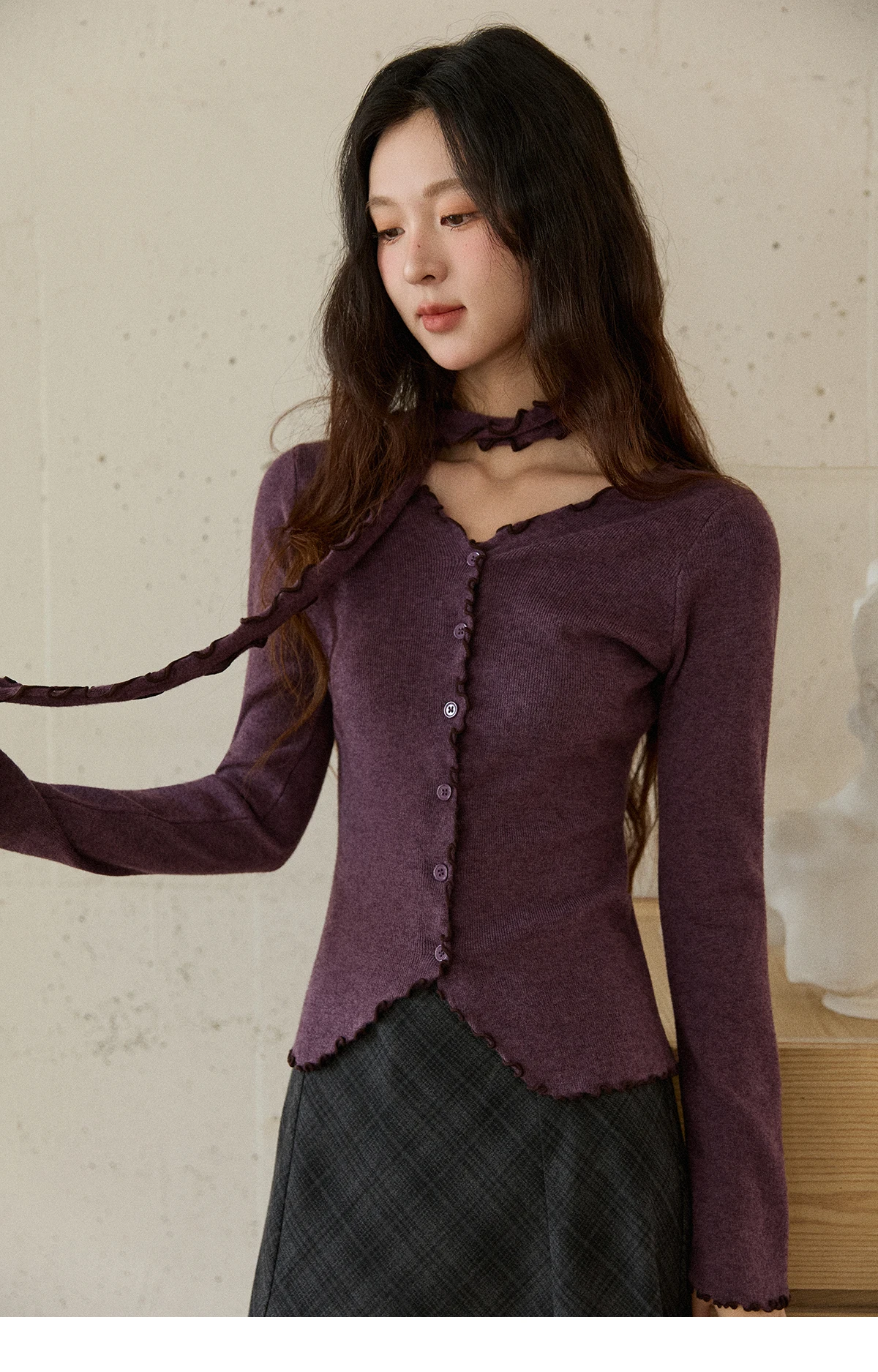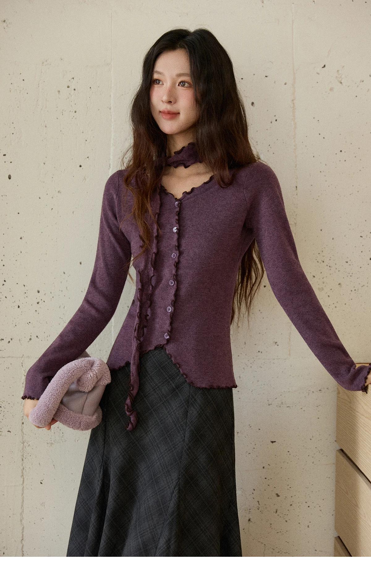 MISHOW New Ruffled Edge Knitted Pullovers for Woman 2025 Retro Slim V-neck Ribbon Knit Top Cmfortable Winter Clothes MXE86Z2728