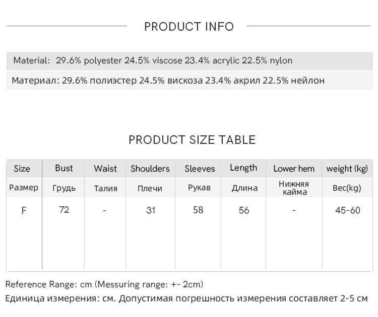 Material Composition: 29.6% polyester fiber 24.5% viscose fiber 23.4% acrylic 22.5% nylon