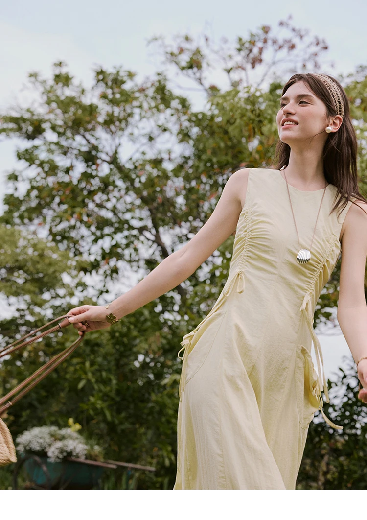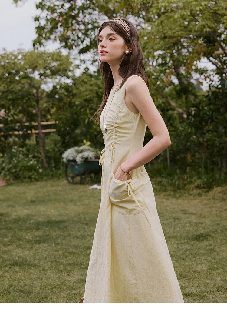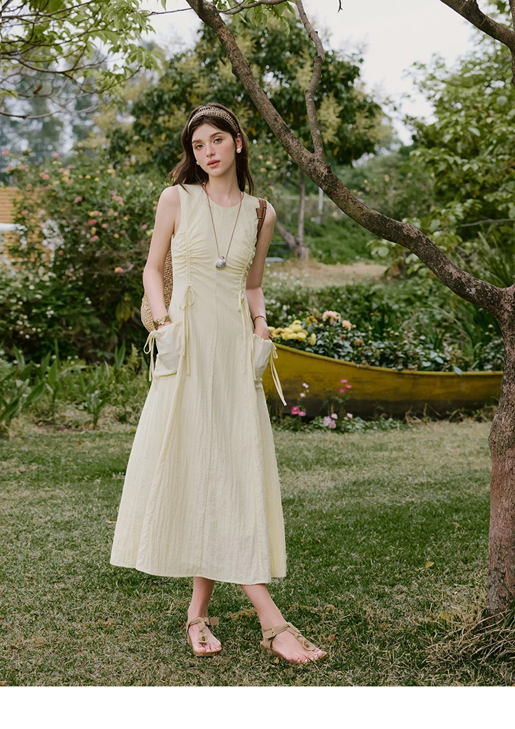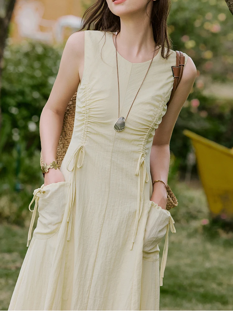 MISHOW Office Lady Summer Dress Women New 2025 Sleeveless Round Neck Drawstring Waist with Pockets Slim Dresses Woman MXE34L2228