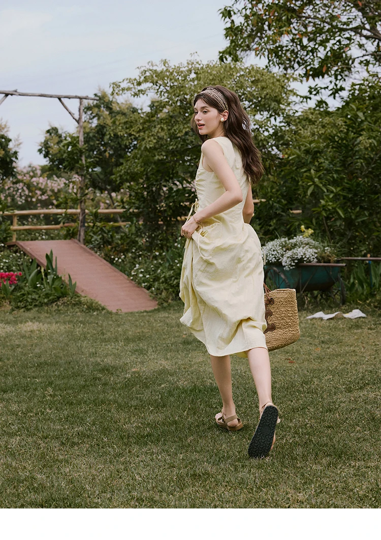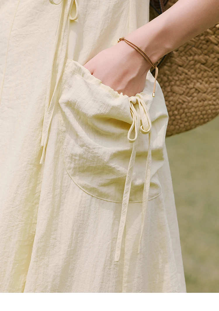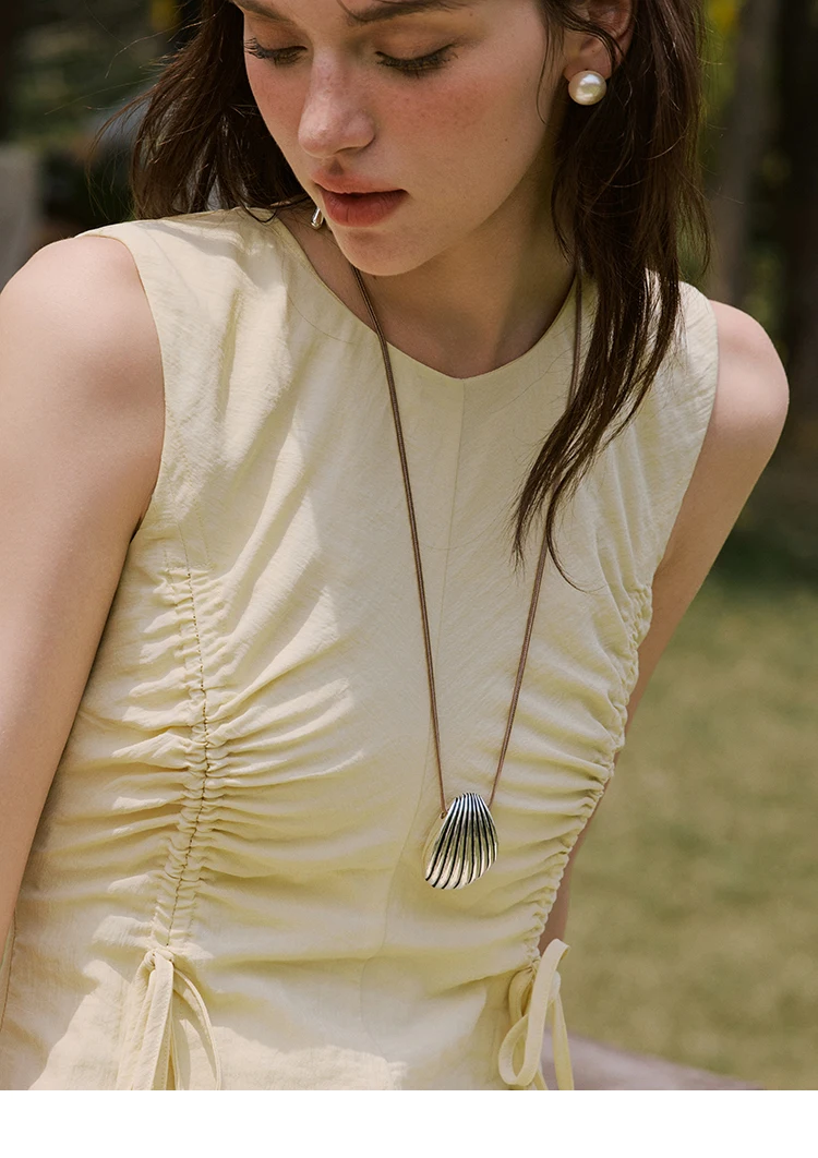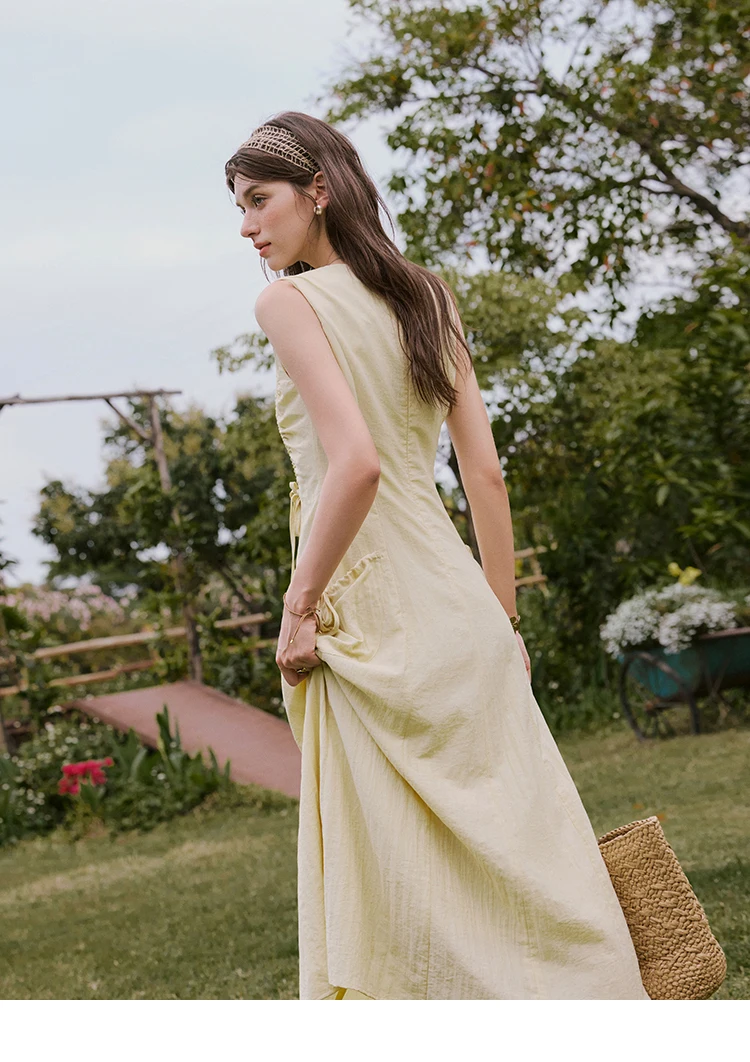 MISHOW Office Lady Summer Dress Women New 2025 Sleeveless Round Neck Drawstring Waist with Pockets Slim Dresses Woman MXE34L2228