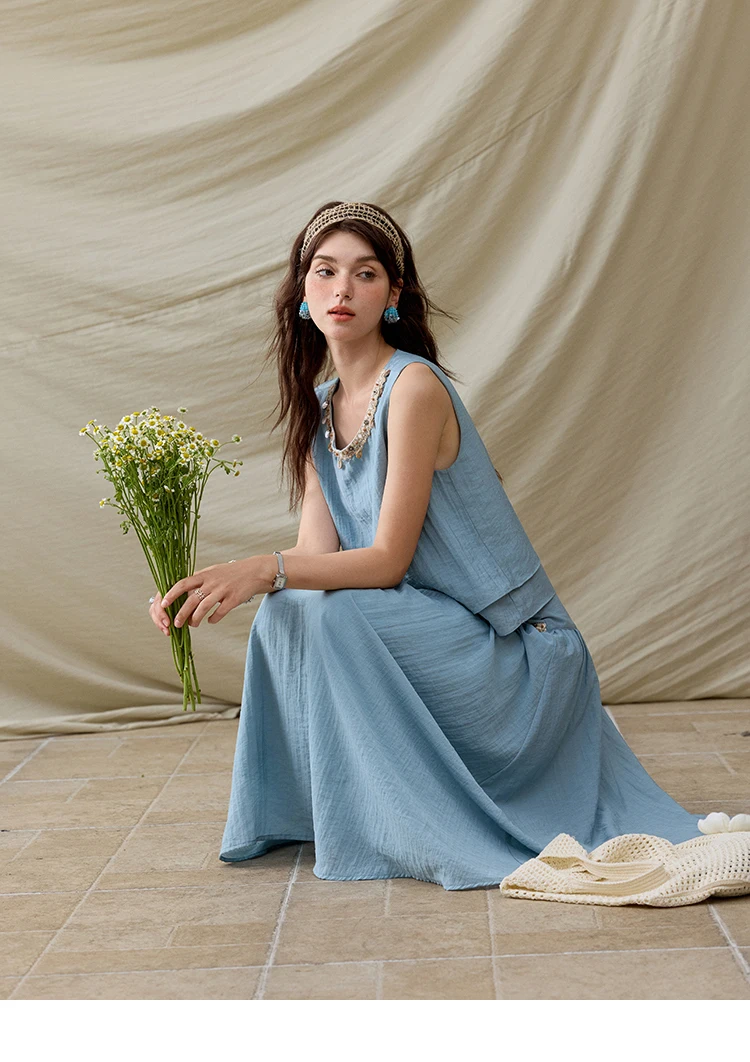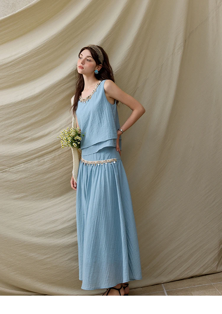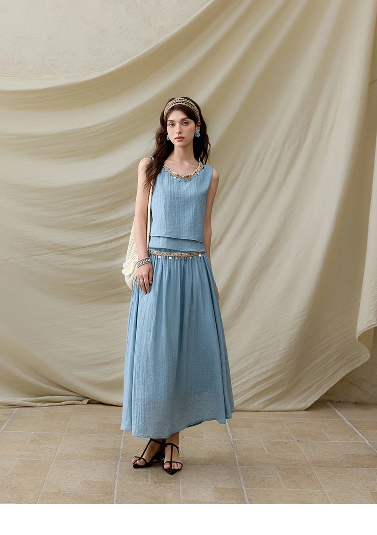 MISHOW Office Lady Summer Vest Skirt Sets Women 2025 Sheel Ribbon Solid Round Neck Tops Loose High Waist Skirt Female MXE32T0556