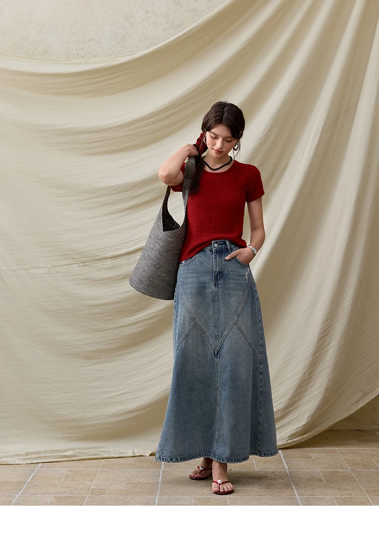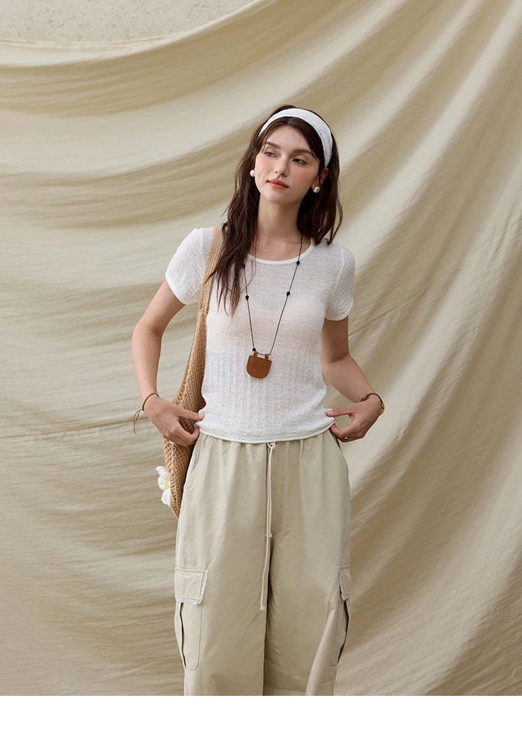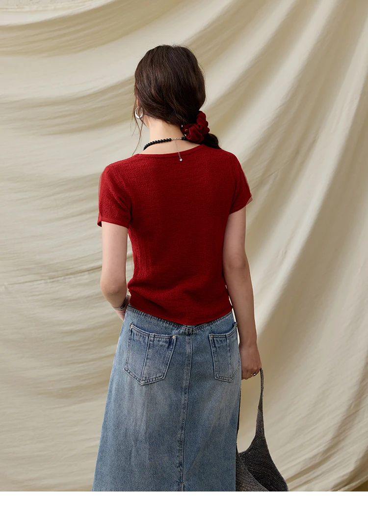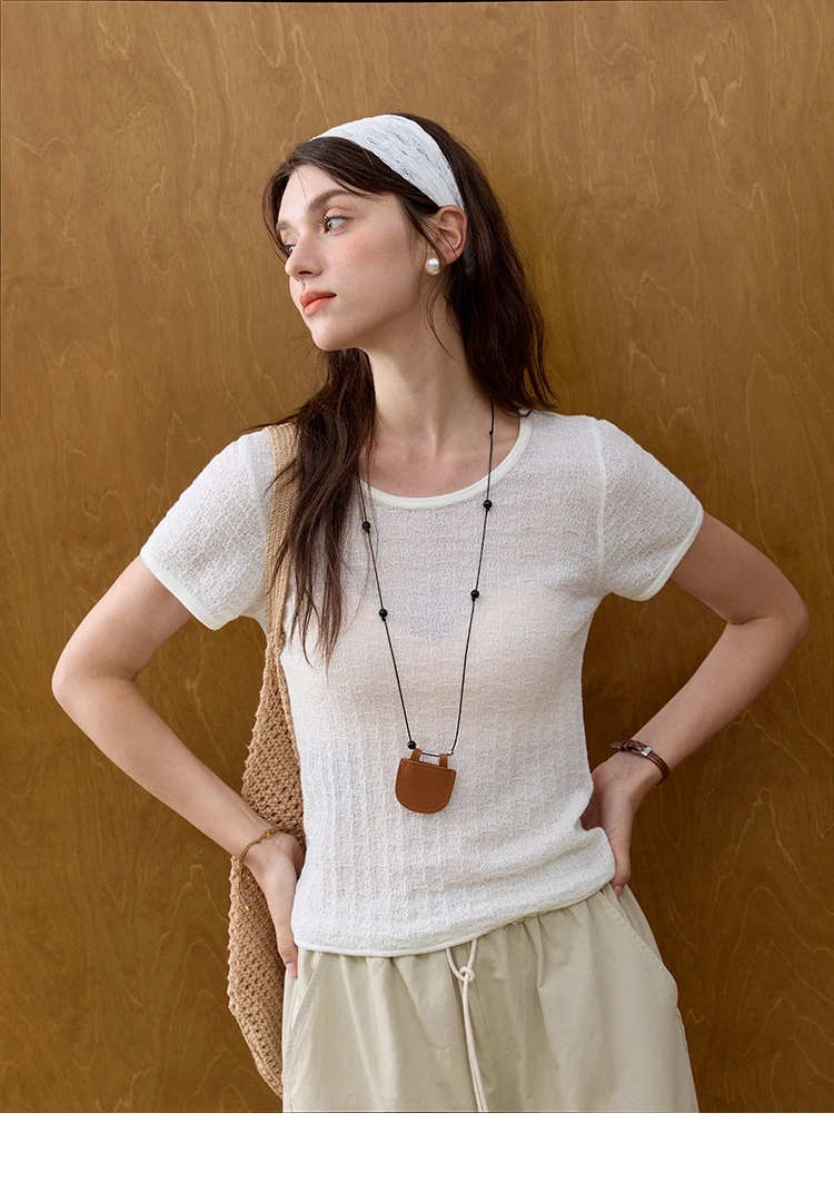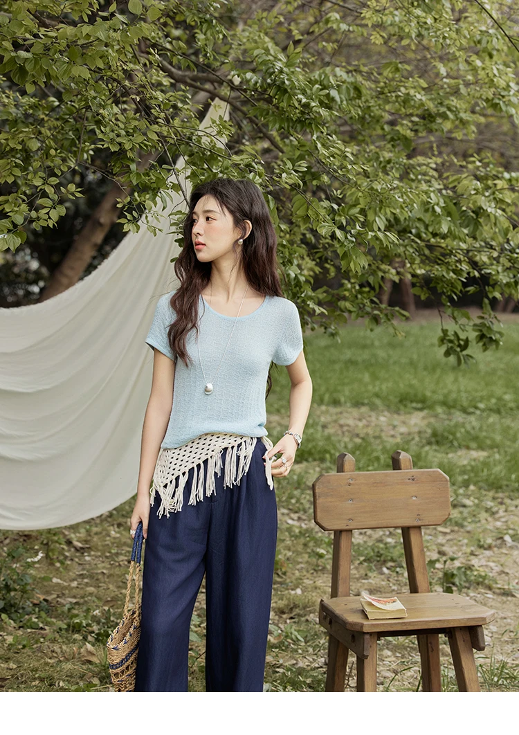 MISHOW Office Lady Women’s T-shirts Summer 2025 Short Sleeve Round Neck Solid Slimming Knitted Shirt Female Fashion MXE34Z1257