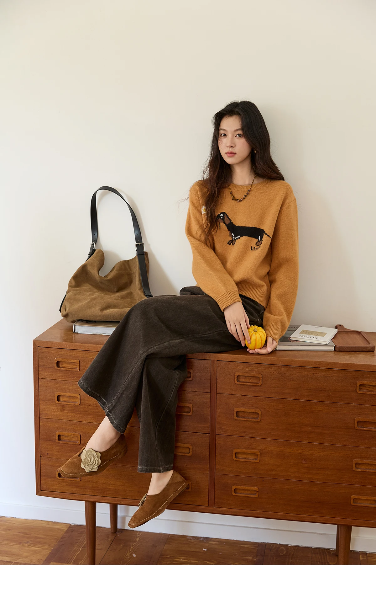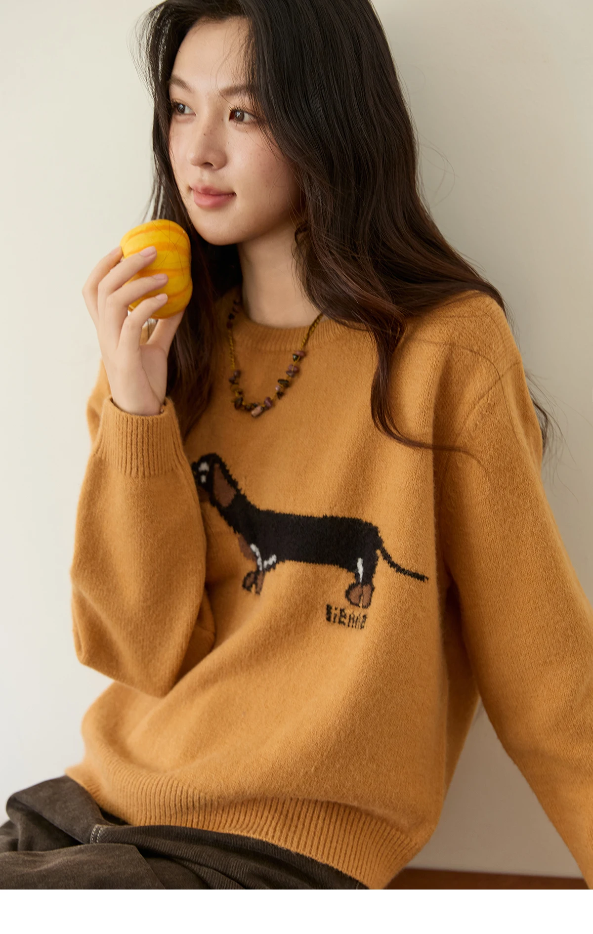 Mishow Orange Sausage Dog Jacquard Pullover MXE48Z2578