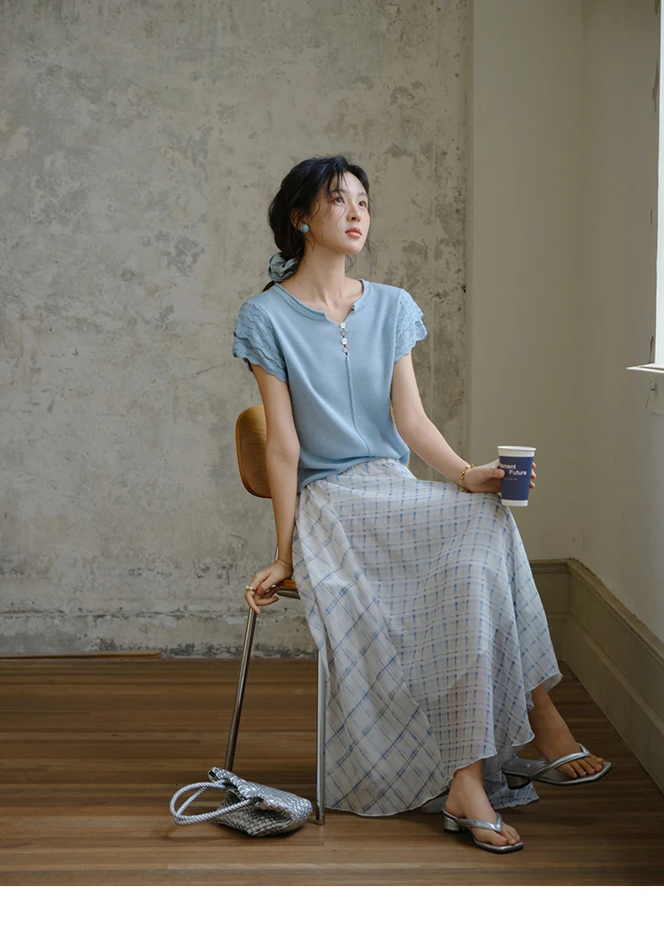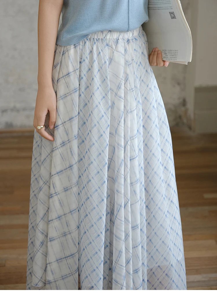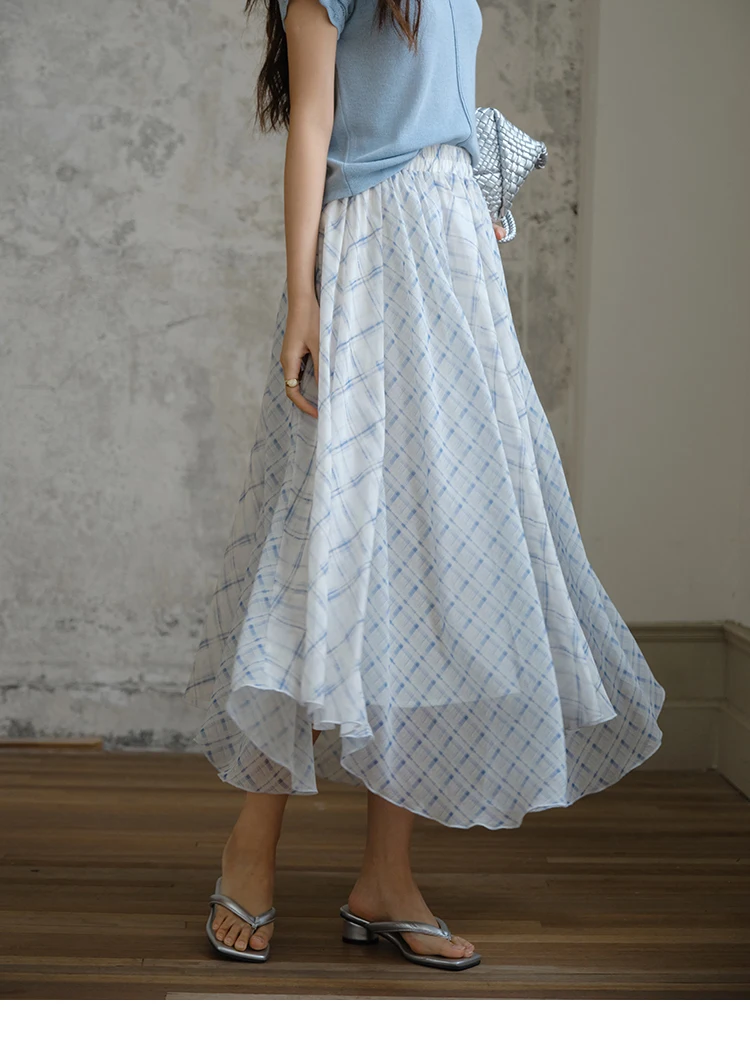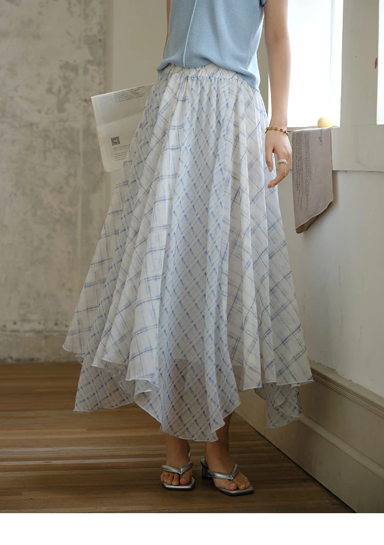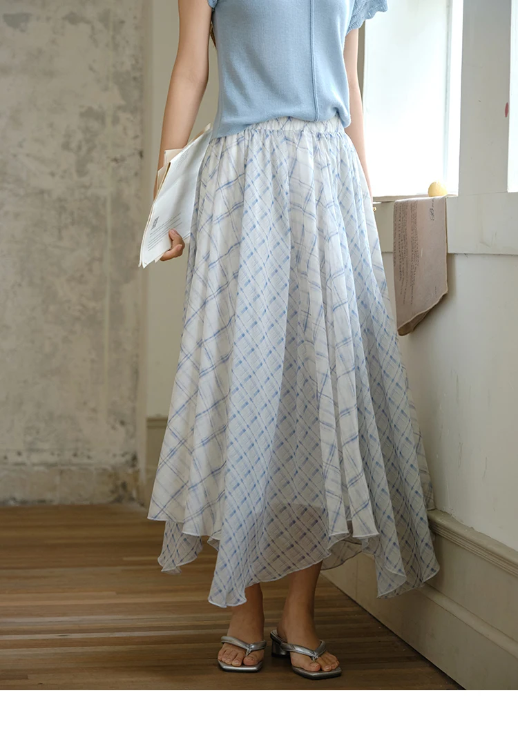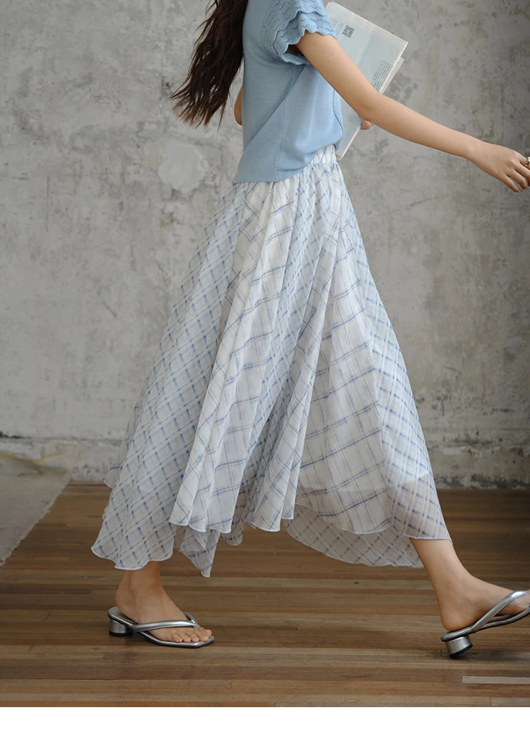 MISHOW Patchwork Plaid Chiffon Half Skirt for Women 2025 Summer Fashion Irregular Wave Edge High Waist A-line Skirt MXE34B0739