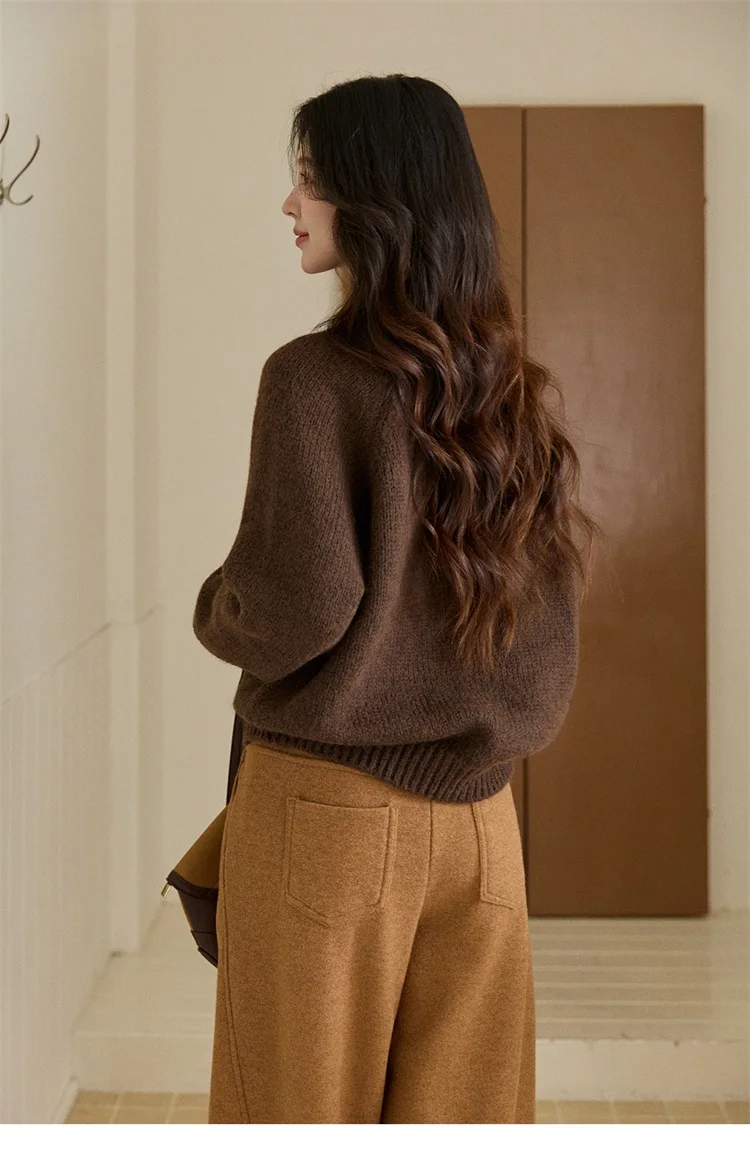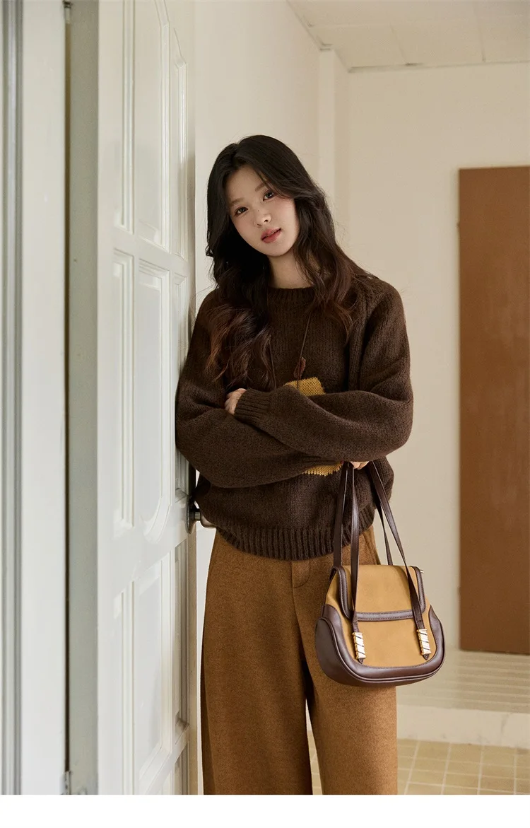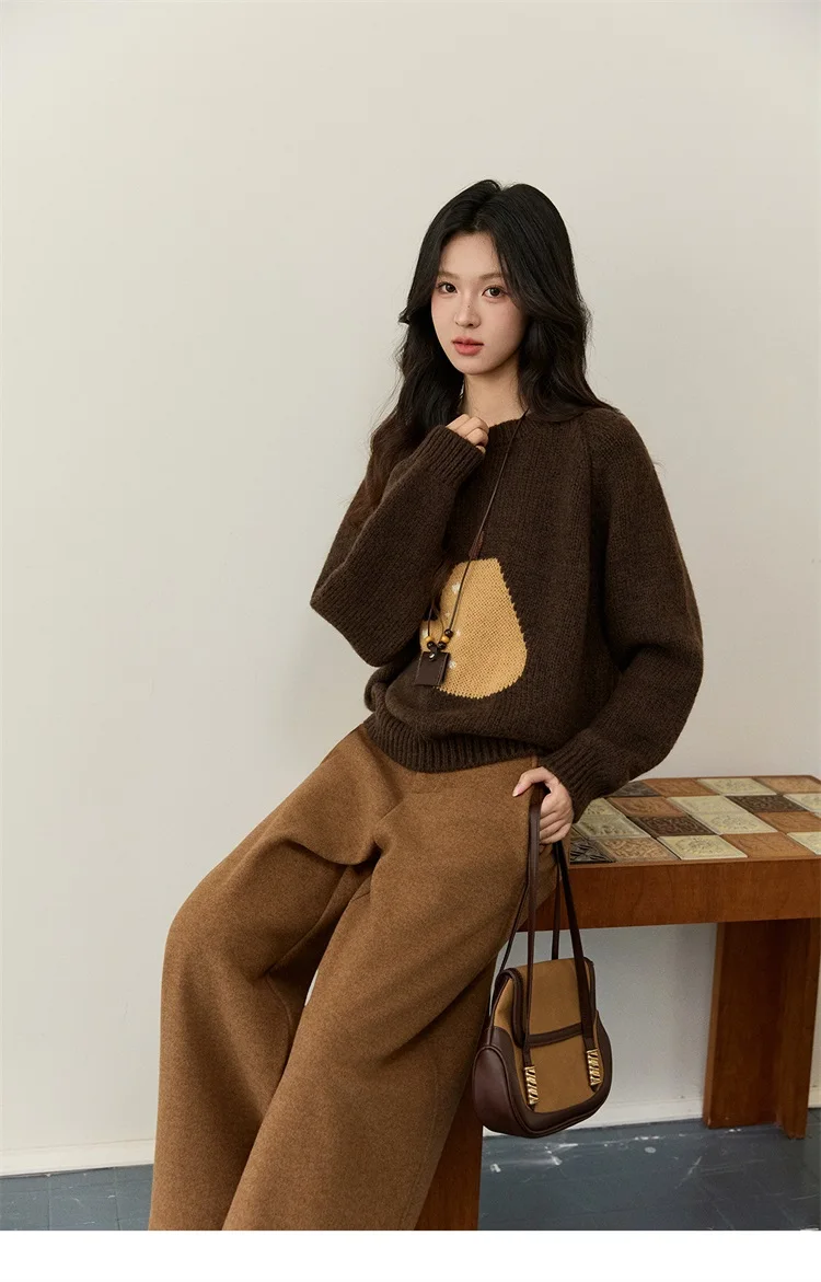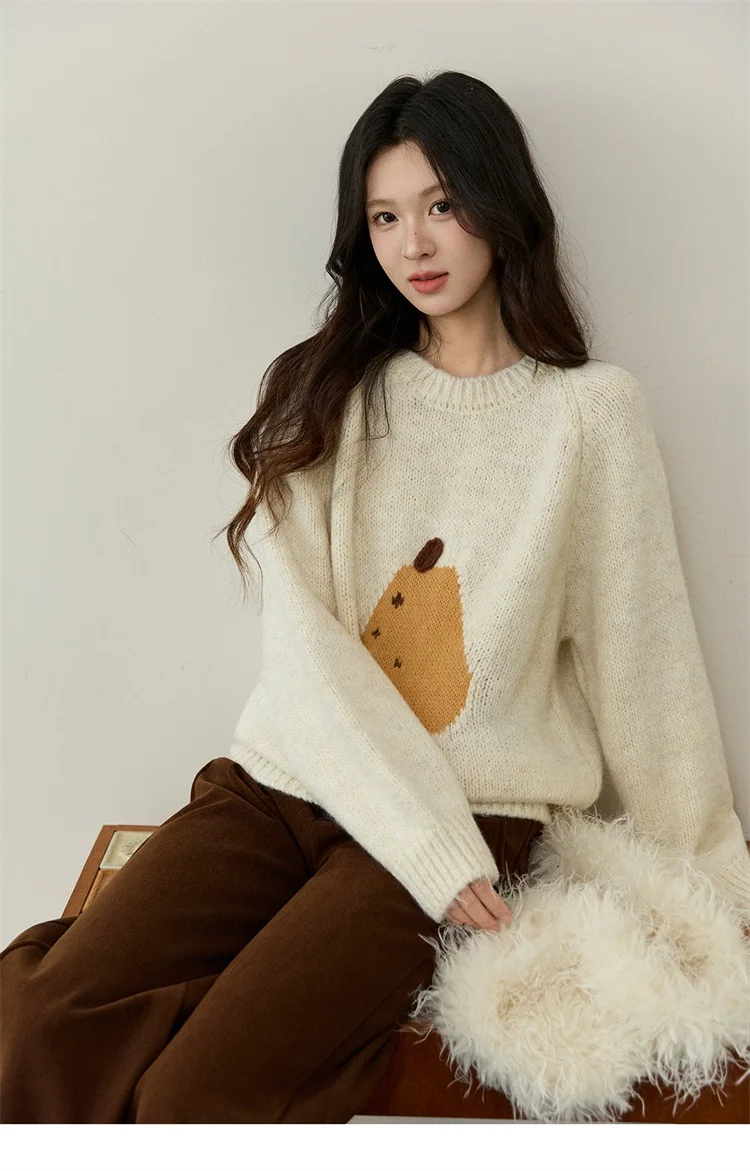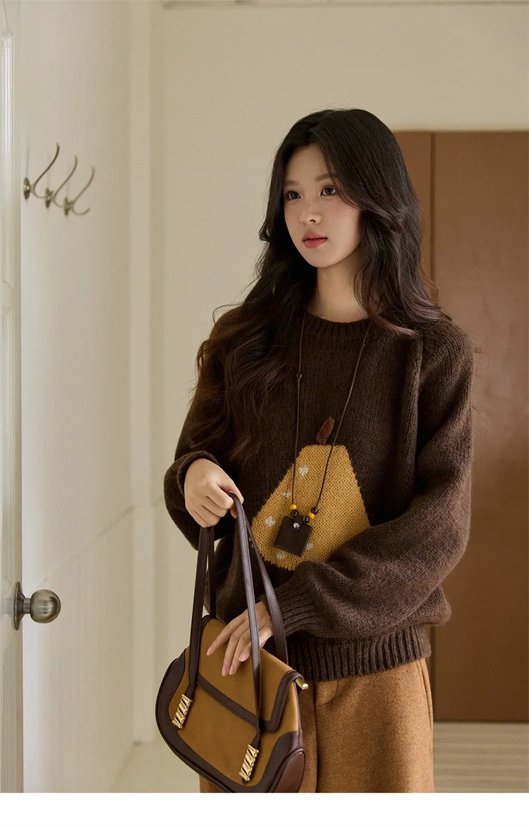 MISHOW Pear Pattern Jacquard Knitted Sweater Autumn Winter Crew Neck Loose Sweaters Wool Blend Warm Pullover Tops MXE94Z2959
