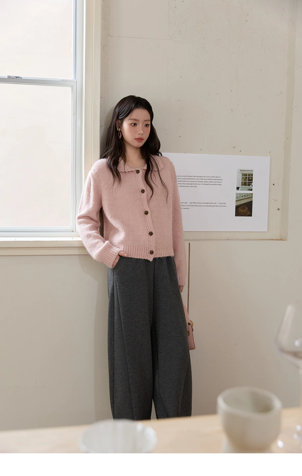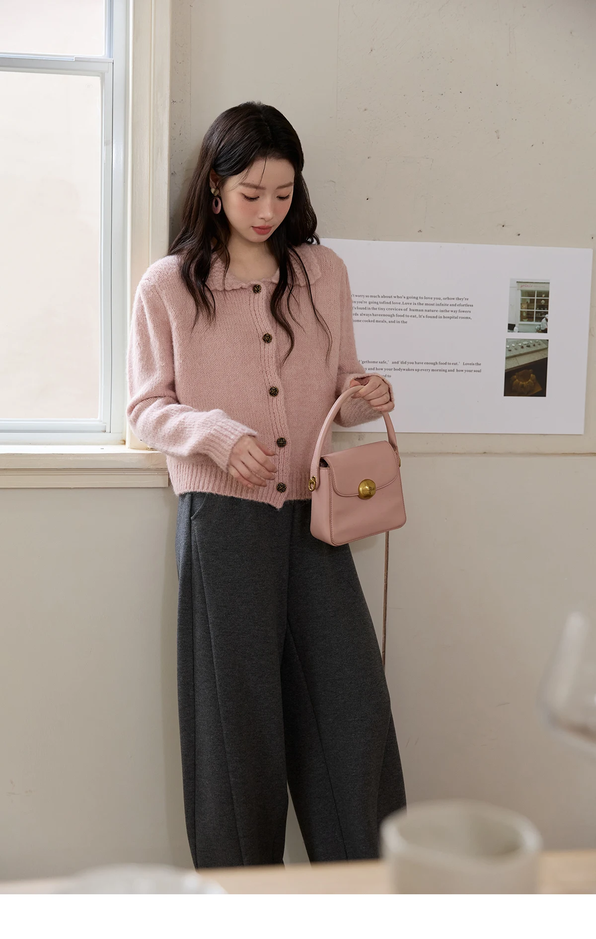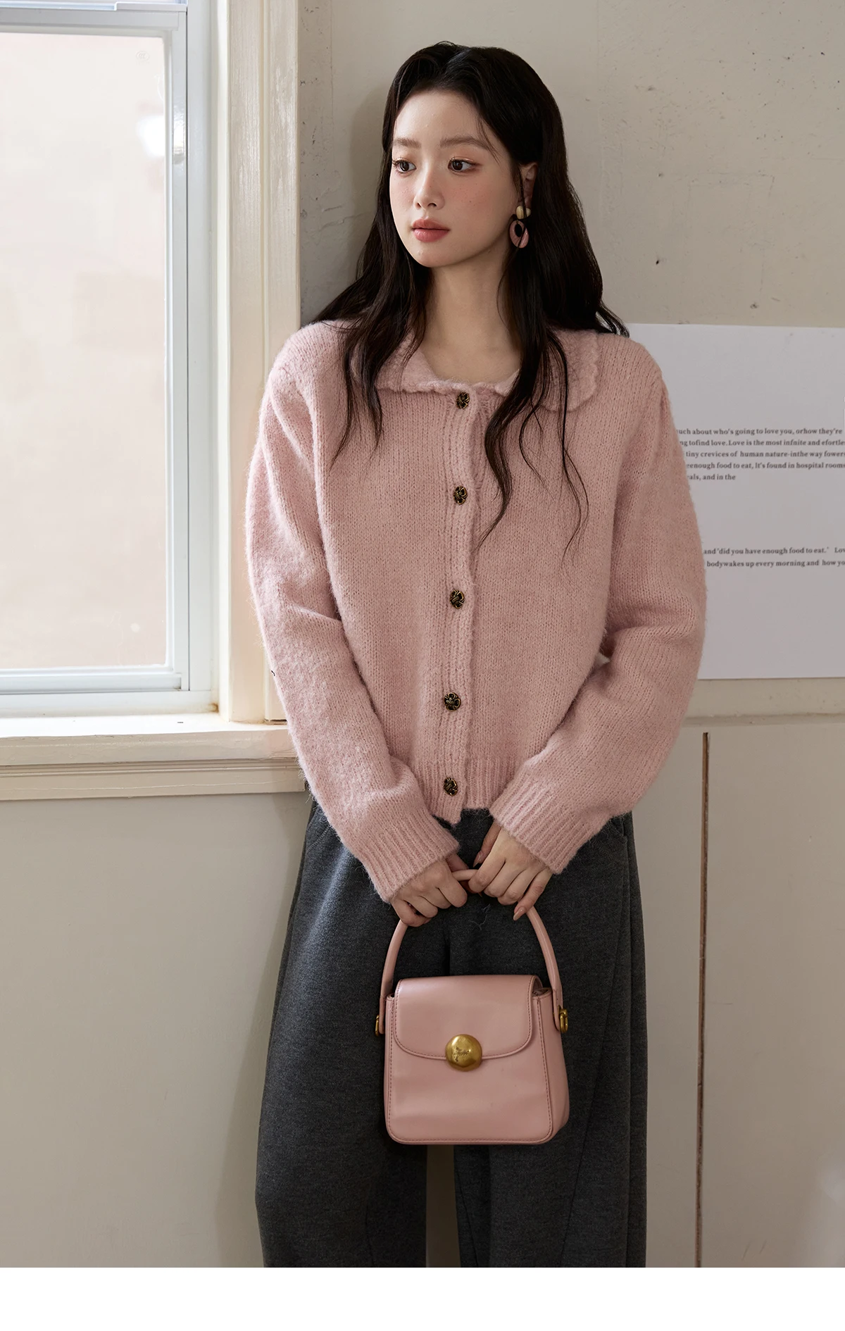 MISHOW Pink French Cardigan Women 2025 Autumn Winter New Sweet Turn-down Collar Single-breasted Loose Knit Sweater MXE48Z2569