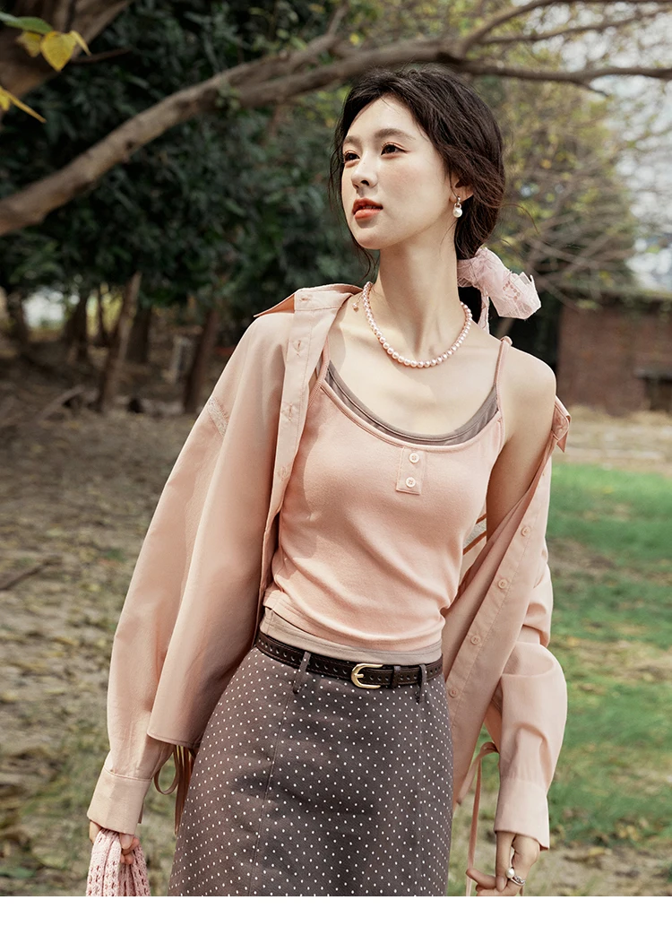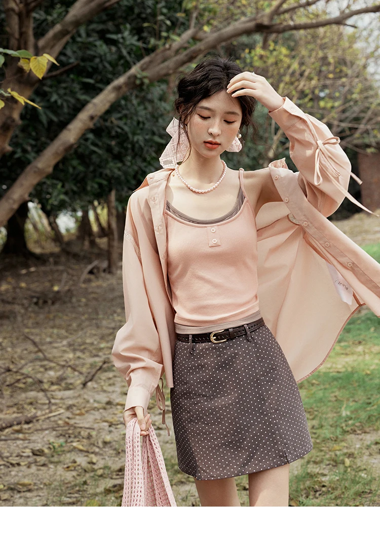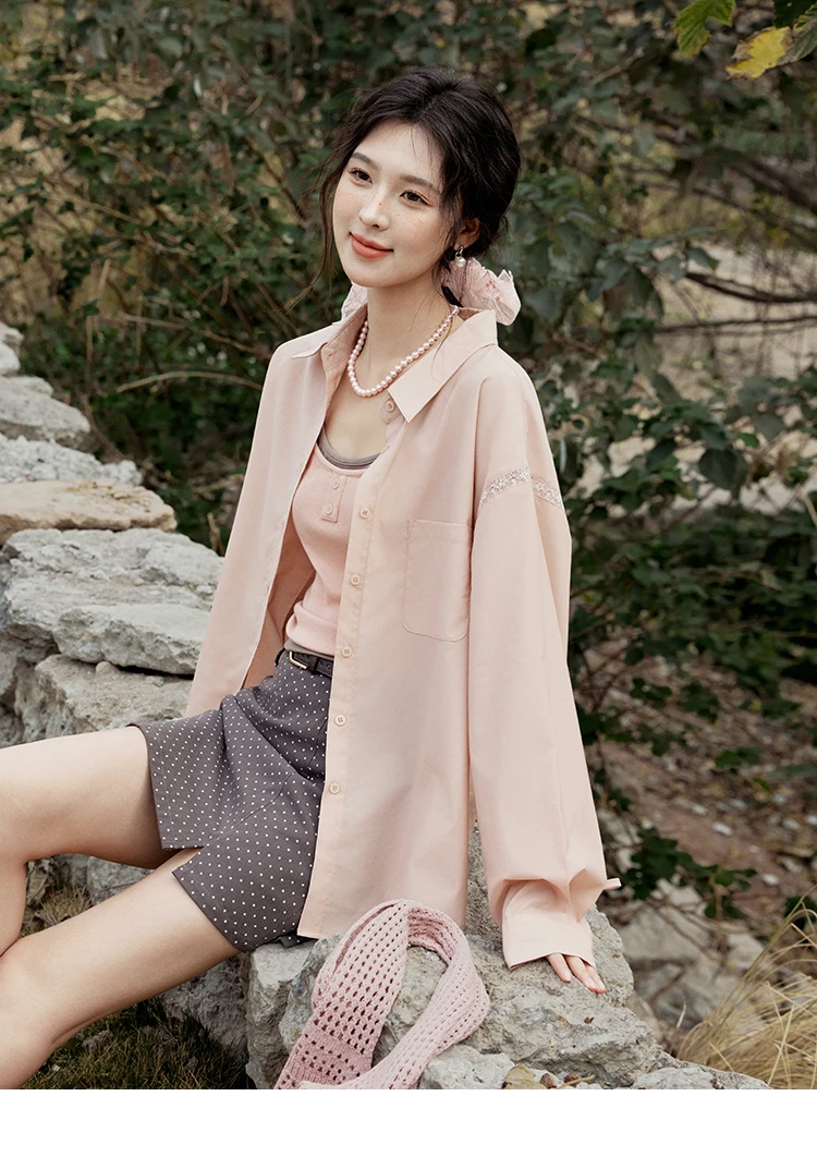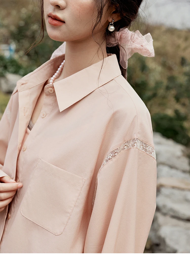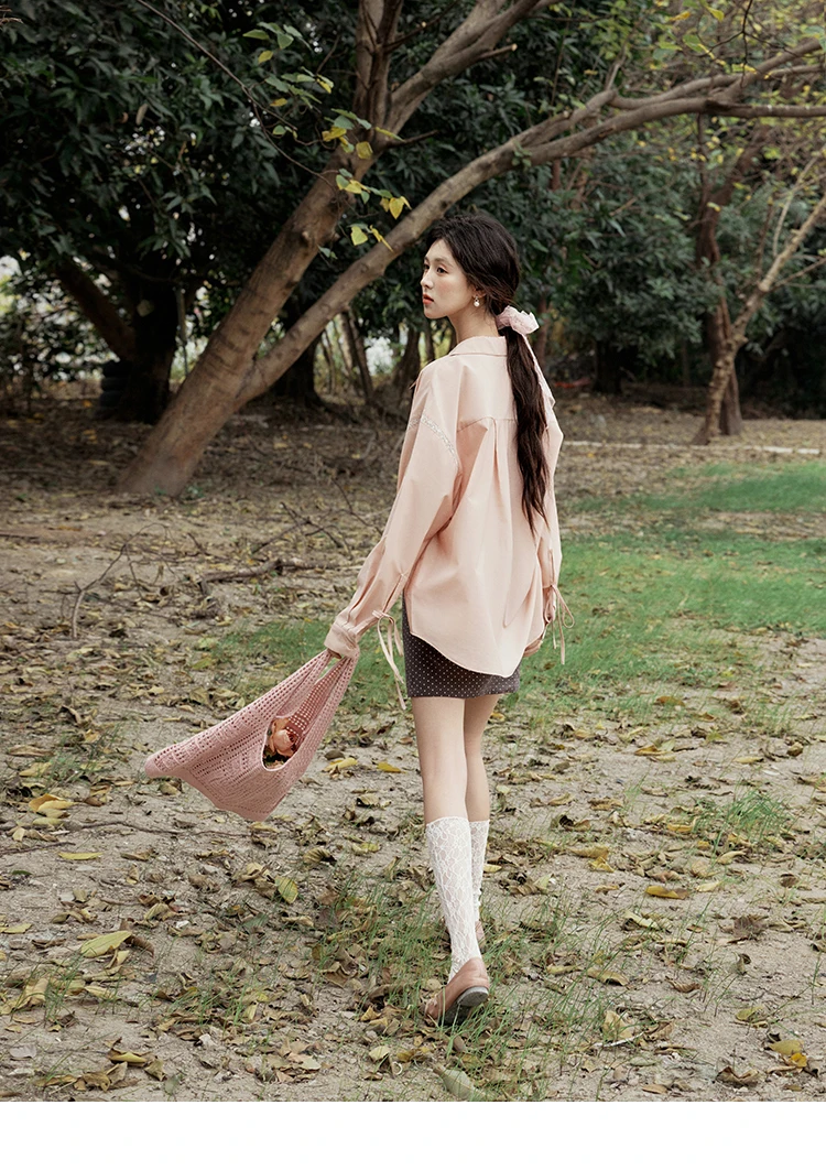 MISHOW Pink Long Sleeve Shirt for Women Spring 2025 Korean Splicing Lace Bow Tie Shirt Polo-neck Solid Versatile Tops MXE16C0767