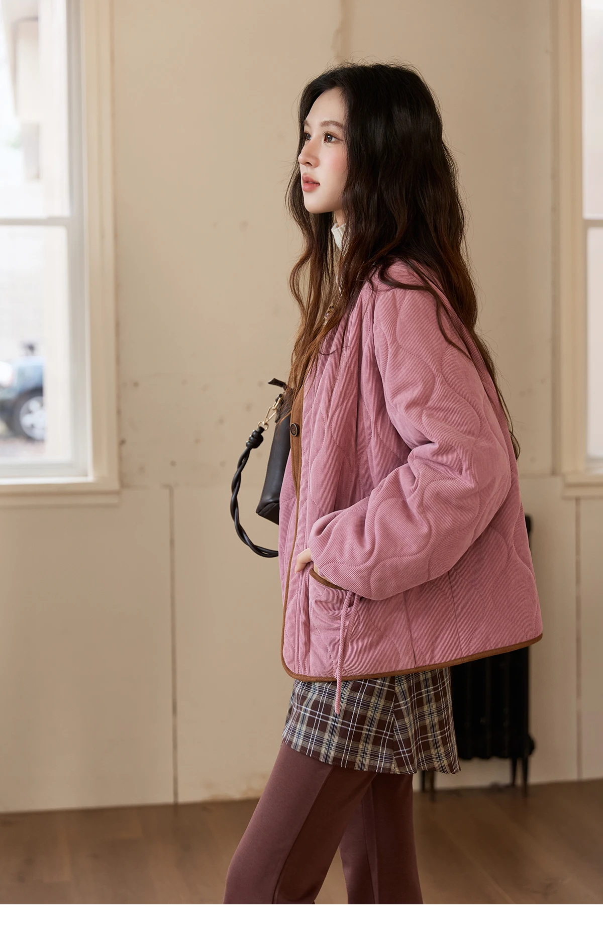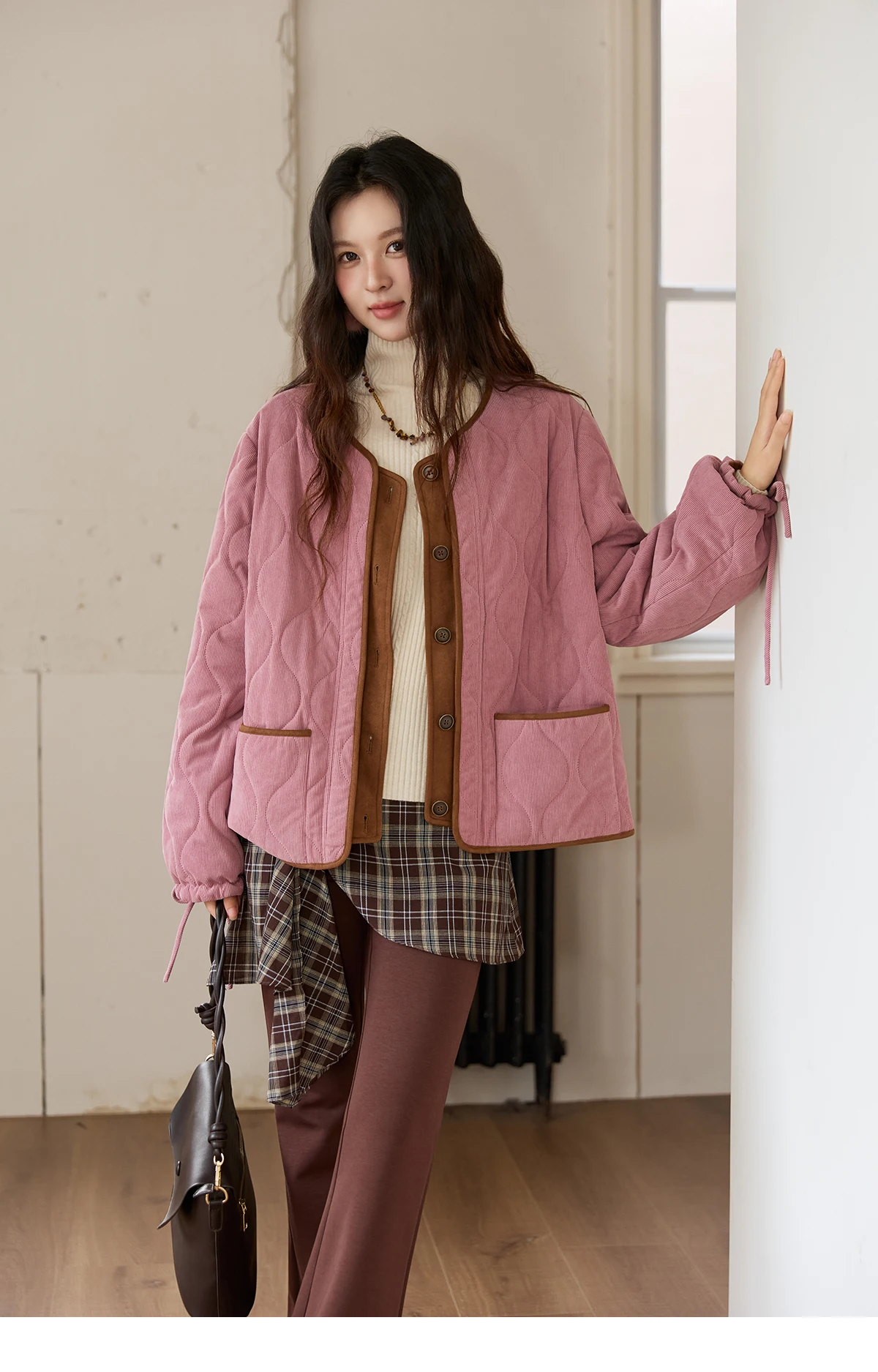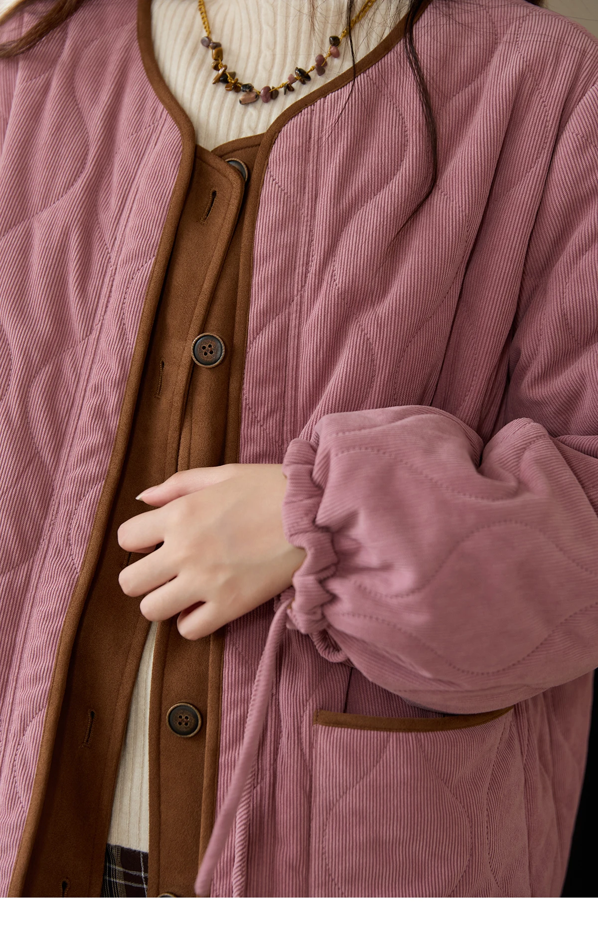MISHOW Pink Purple Corduroy Jacket Women 2025 Winter Retro Gourd Pattern Pleated Cotton Splicing Suede Jacket Top MXE88W0882