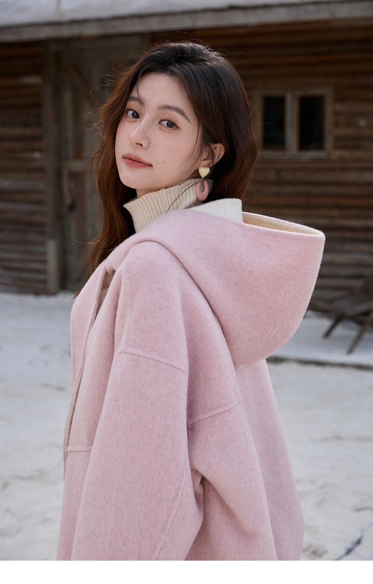 MISHOW Pink Wool Double-sided Woolen Coat Winter Hooded Bow Tie Strap Coats Loose Dropped Sleeves Coat Office Lady MXE91W1010