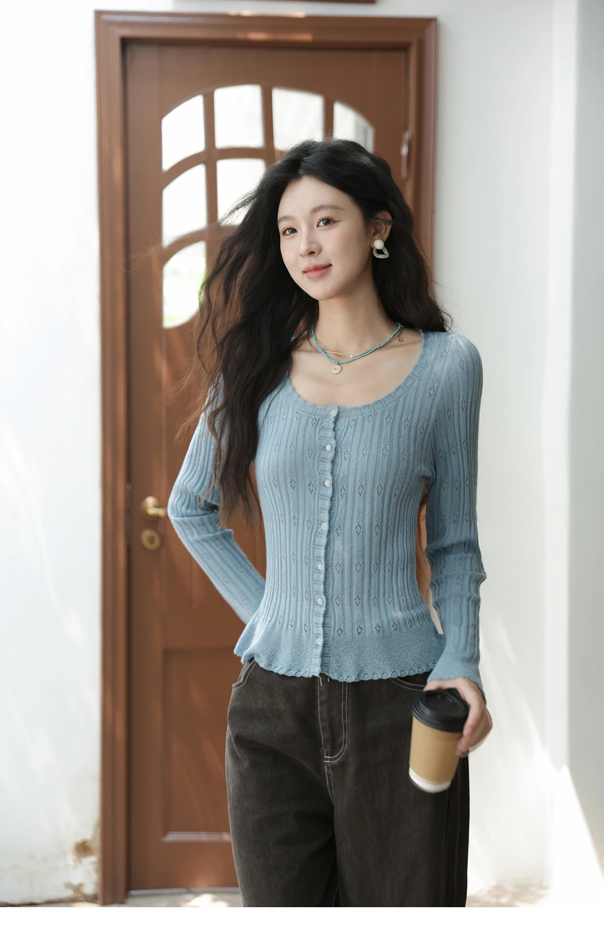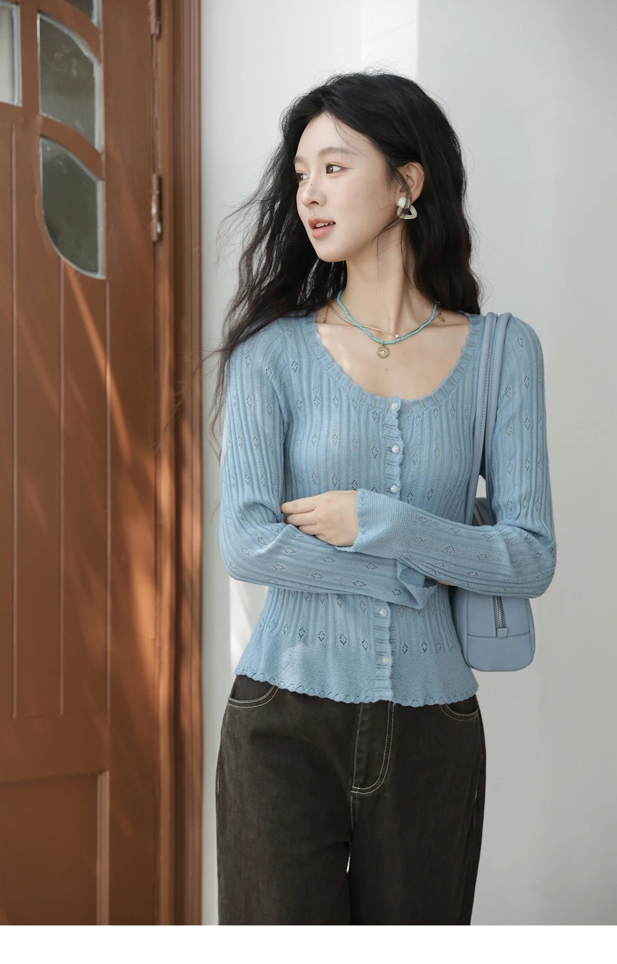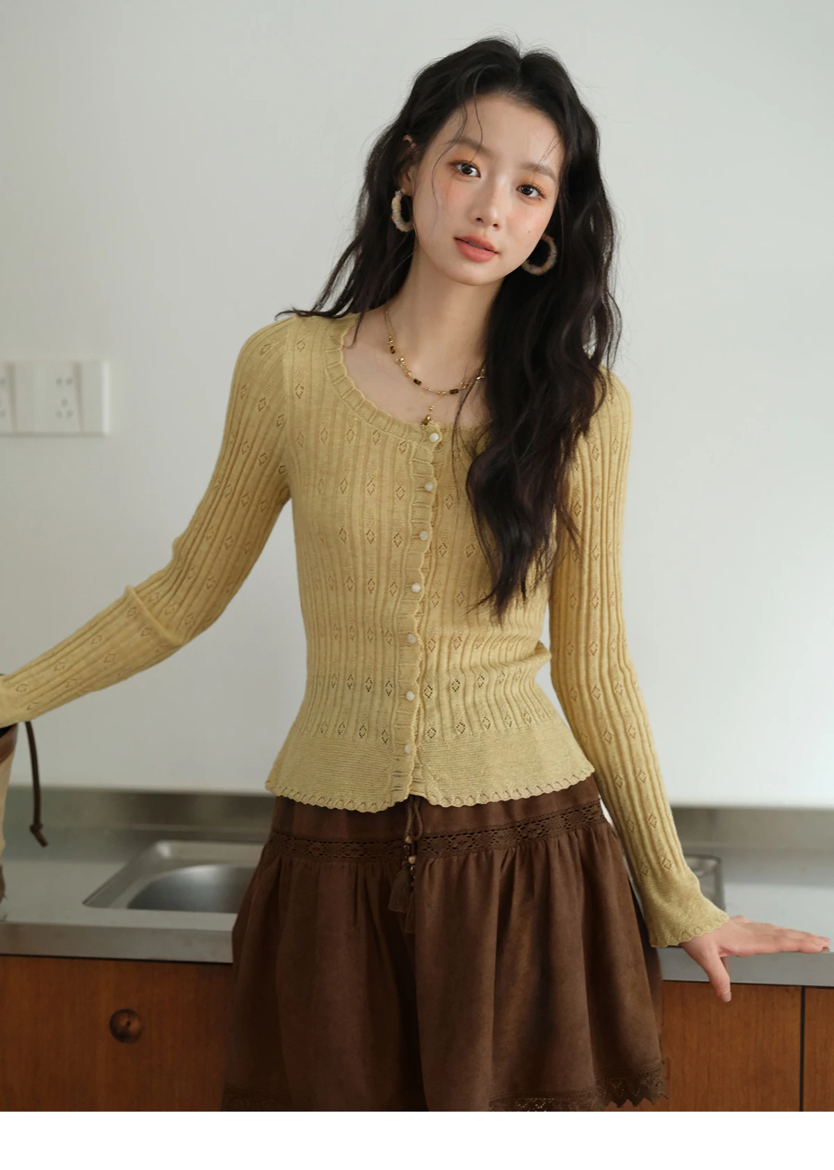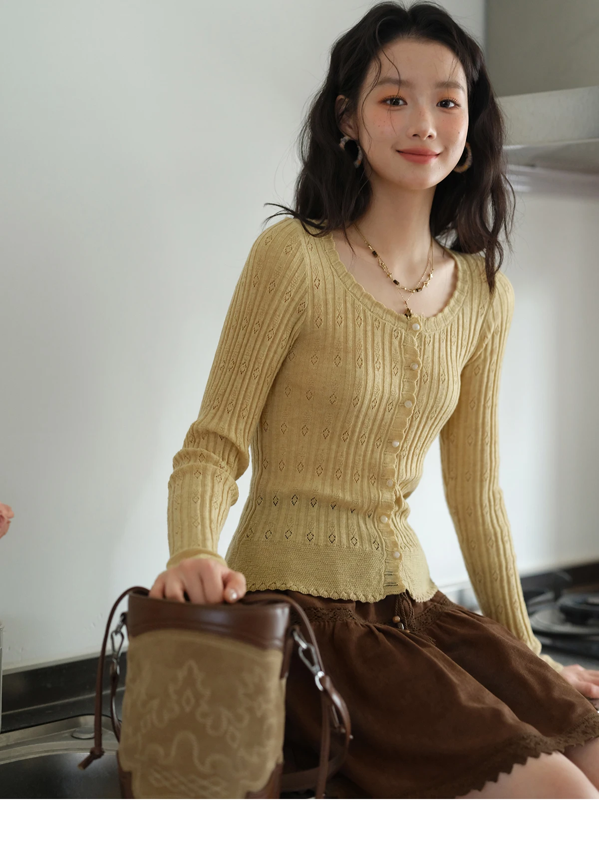 MISHOW Pit Stripe Thin Knitted Sweater for Women Autumn 2025 French Retro Round Neck Cardigan Temperament Casual Top MXE42Z1374
