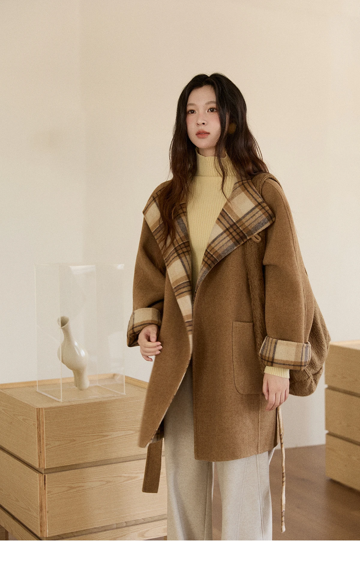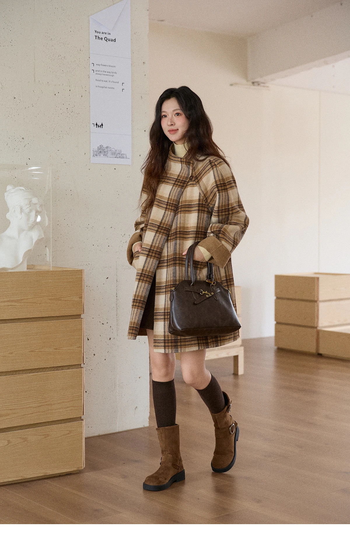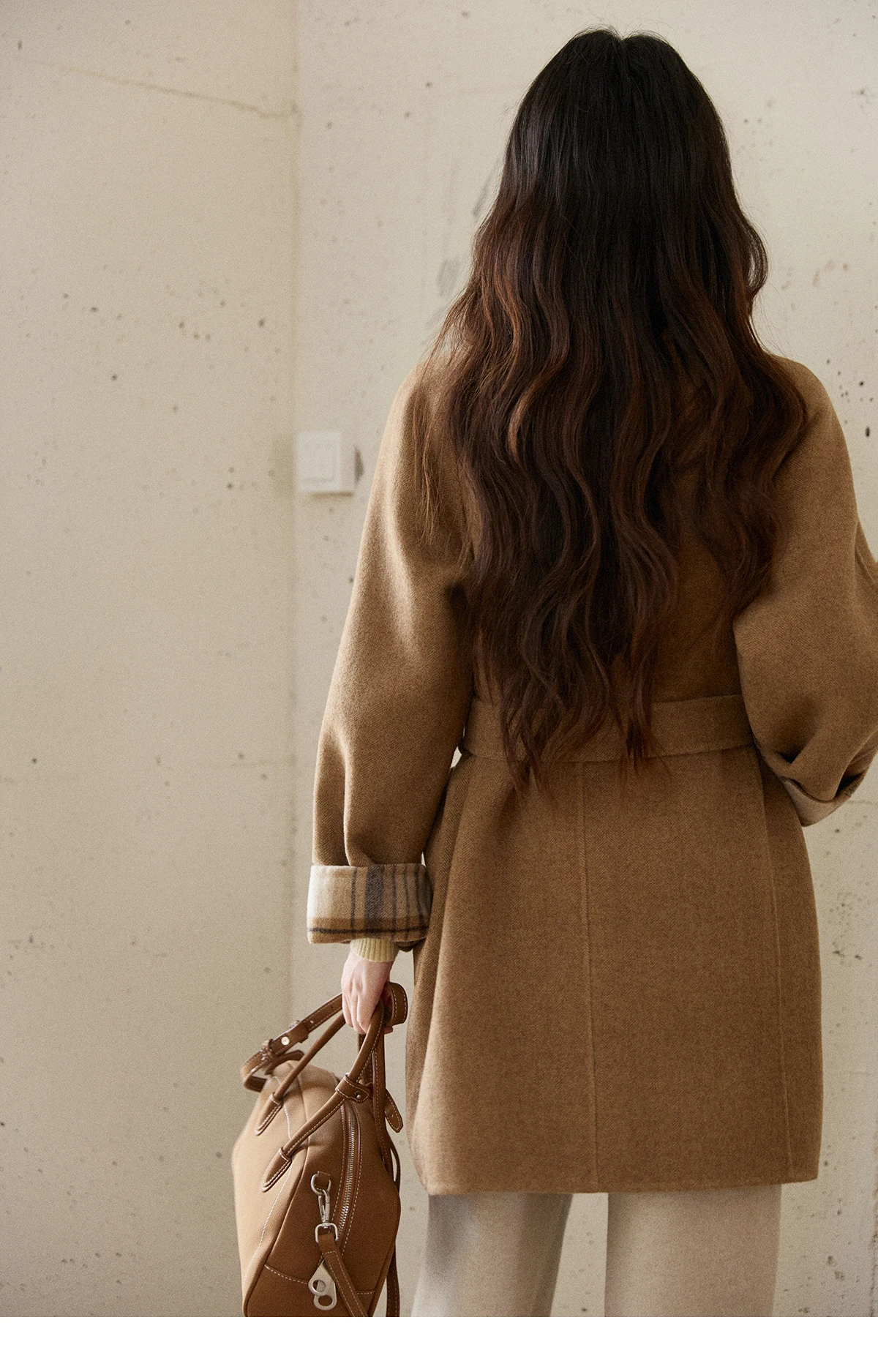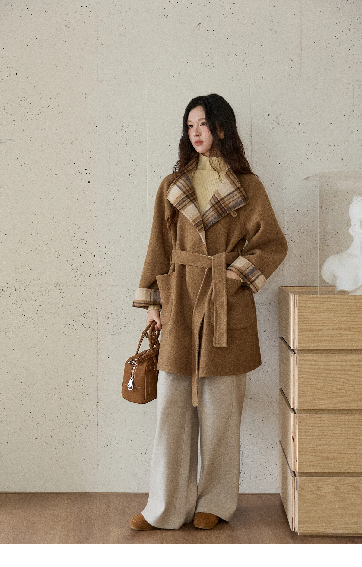 MISHOW Plaid Double-faced Wool Coat Women 2025 Winter Retro Lapel Single Buckle Loose Mid-length Coat Woman Clothes MXE89W0898