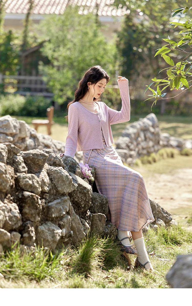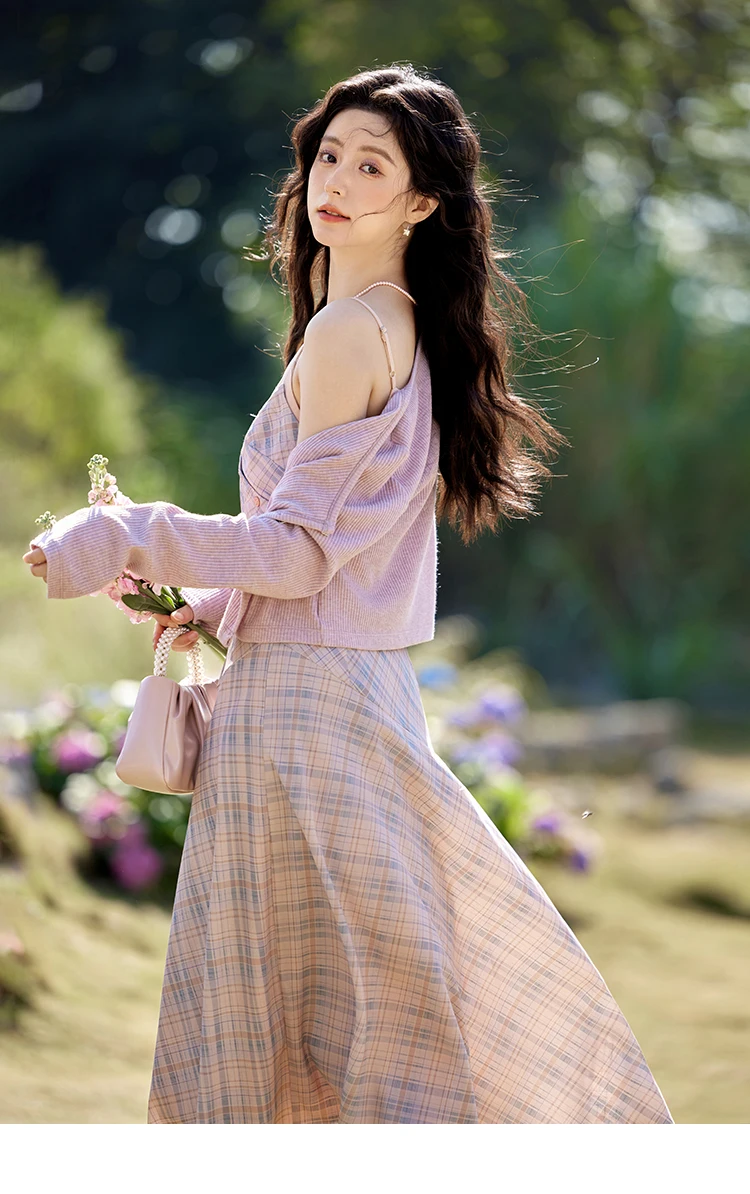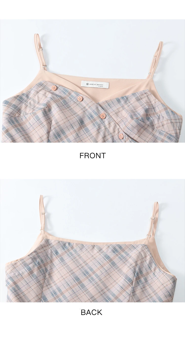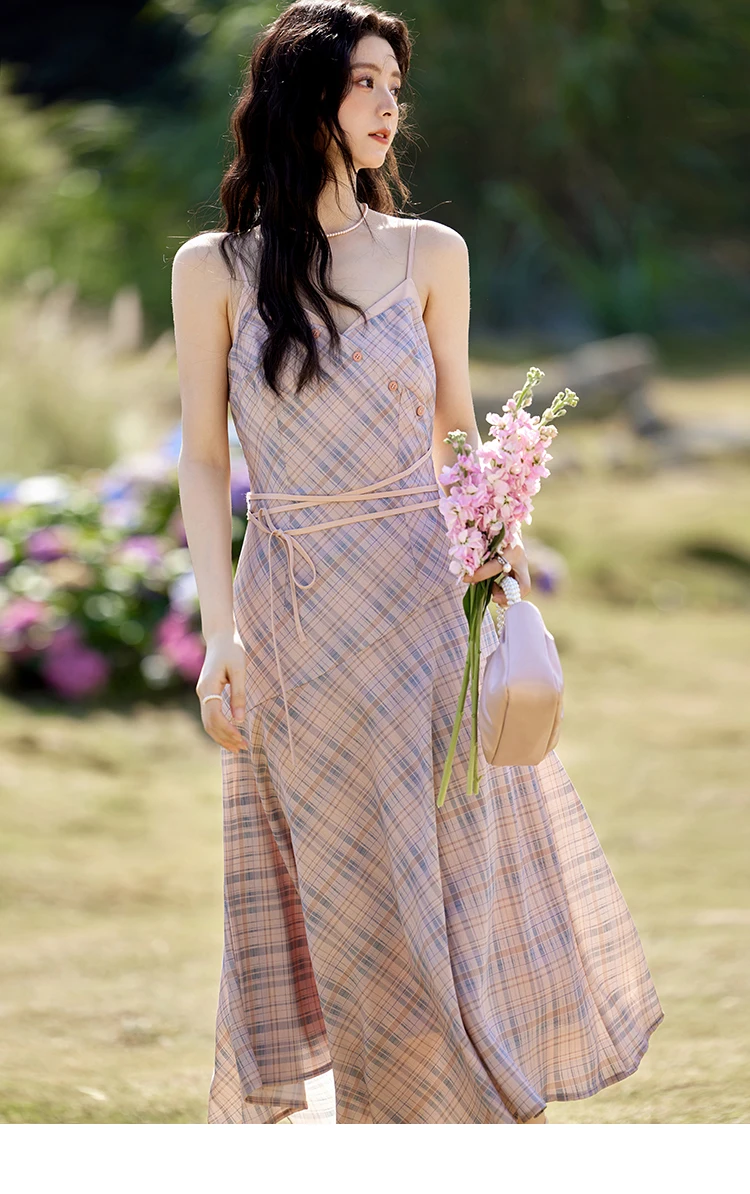 MISHOW Plaid Strap Dress for Women Spring 2025 French V-neck Sleeveless Dress Slim Lace-up Waist Camisole Dresses MXE11L2088