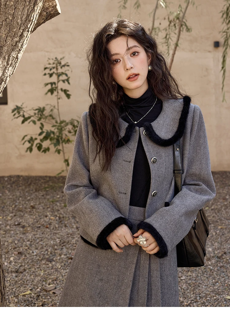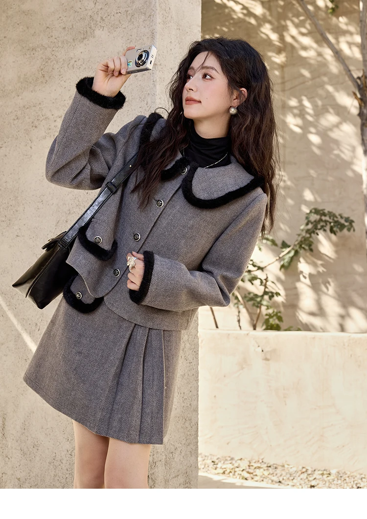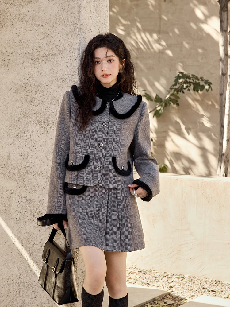MISHOW Plaid Tweed Jacket Short Skirt Separately Women 2024 Winter Fashion Korean Collar Jacket Half Pleated Skirt MXD43W0442