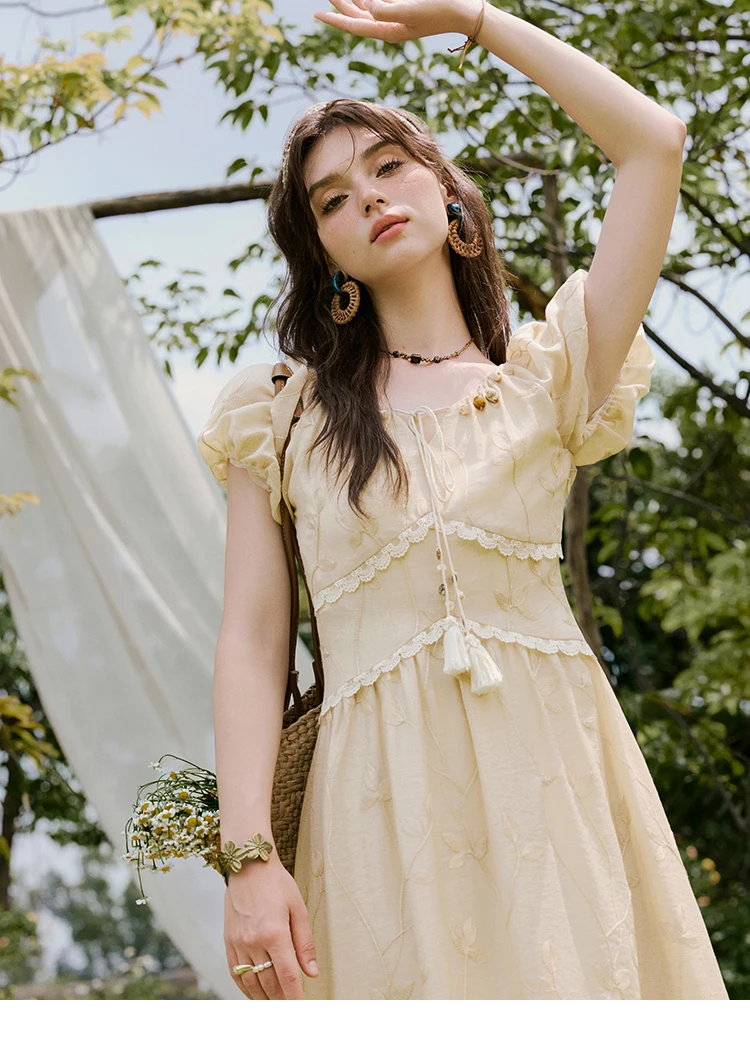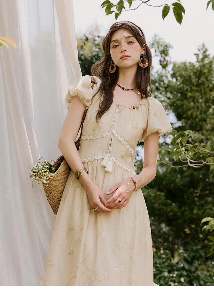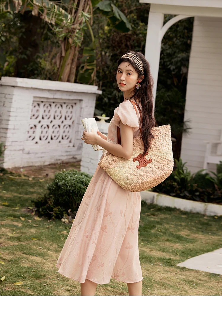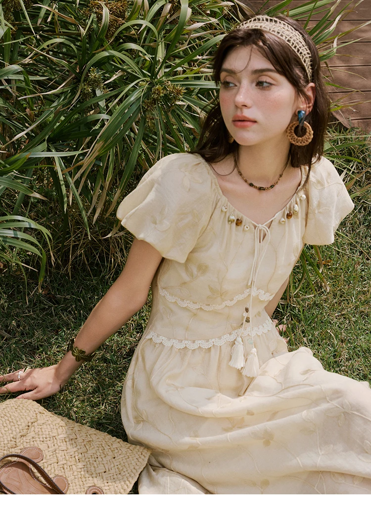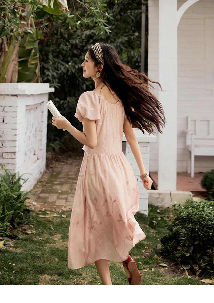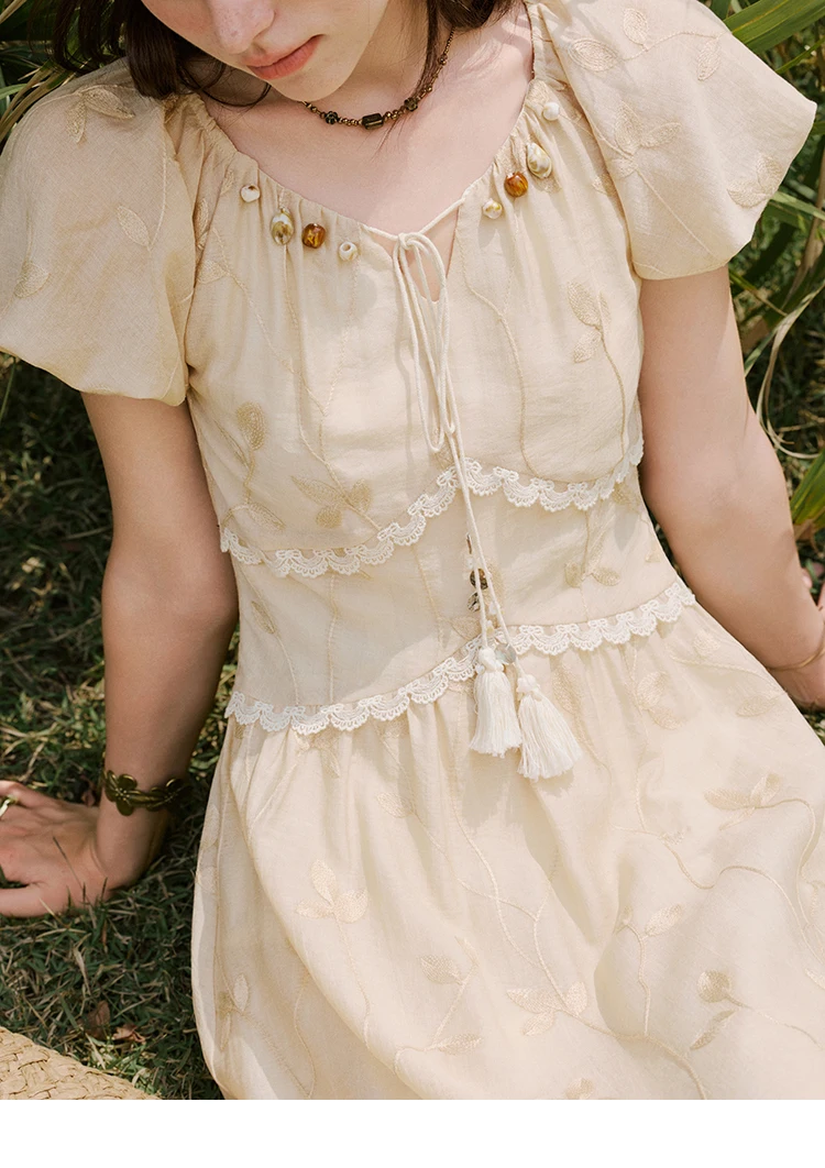 MISHOW Print Office Lady Dress Women Summer 2025 Short Sleeve Round Neck Beaded Neckline Slim Waist Dresses Female MXE33L2208