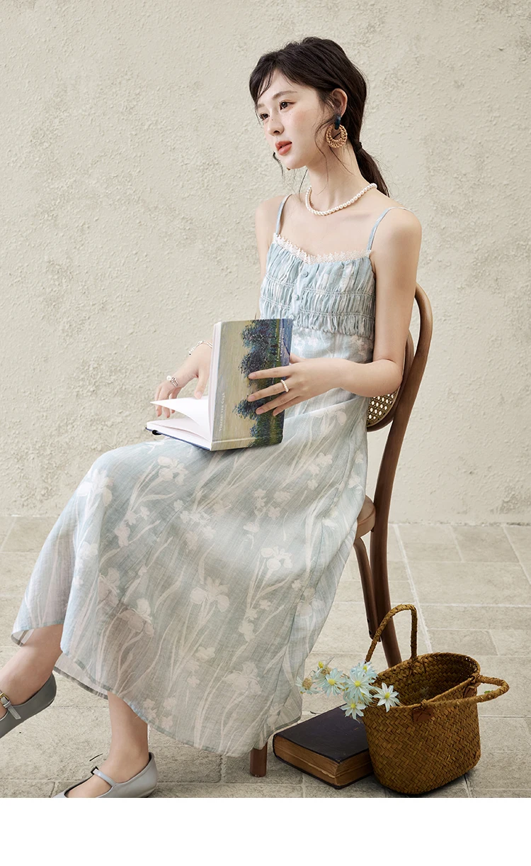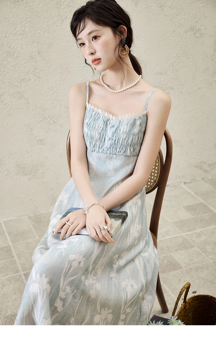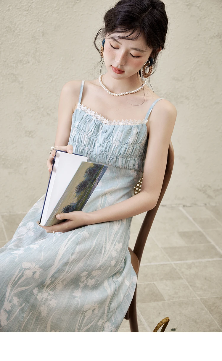 MISHOW Print Spring Summer Suspender Dress Women 2025 Square Collar Sleeveless Korean Dresses Lady New Fashion Slim MXE16L2127