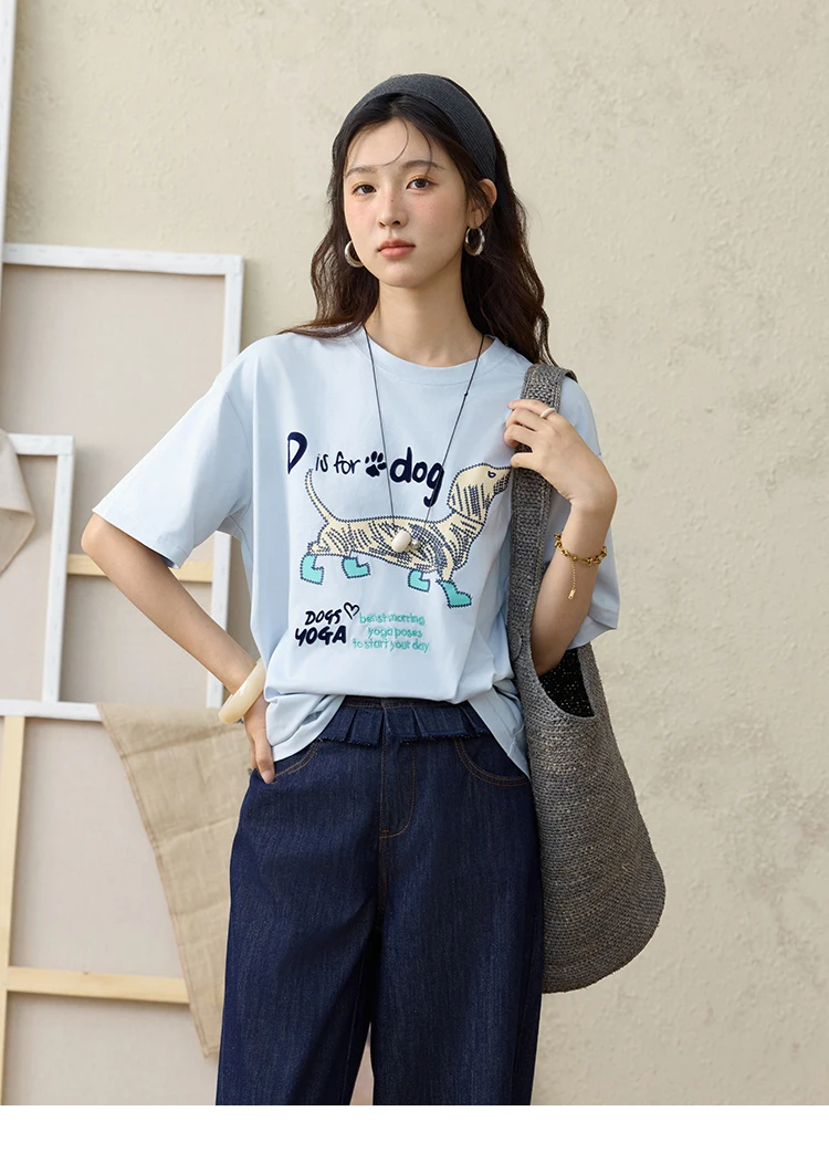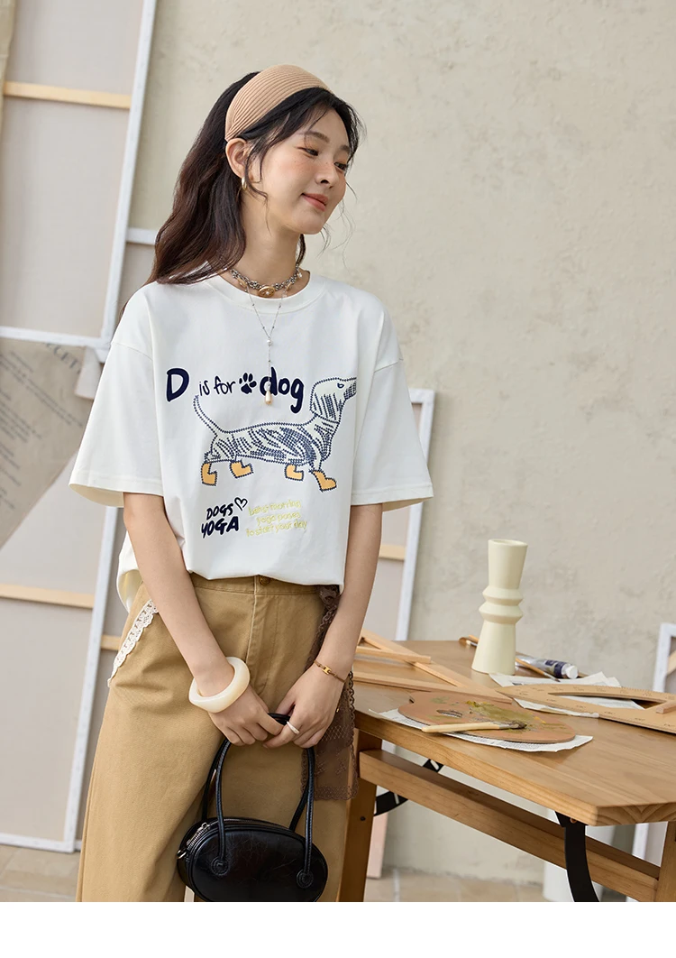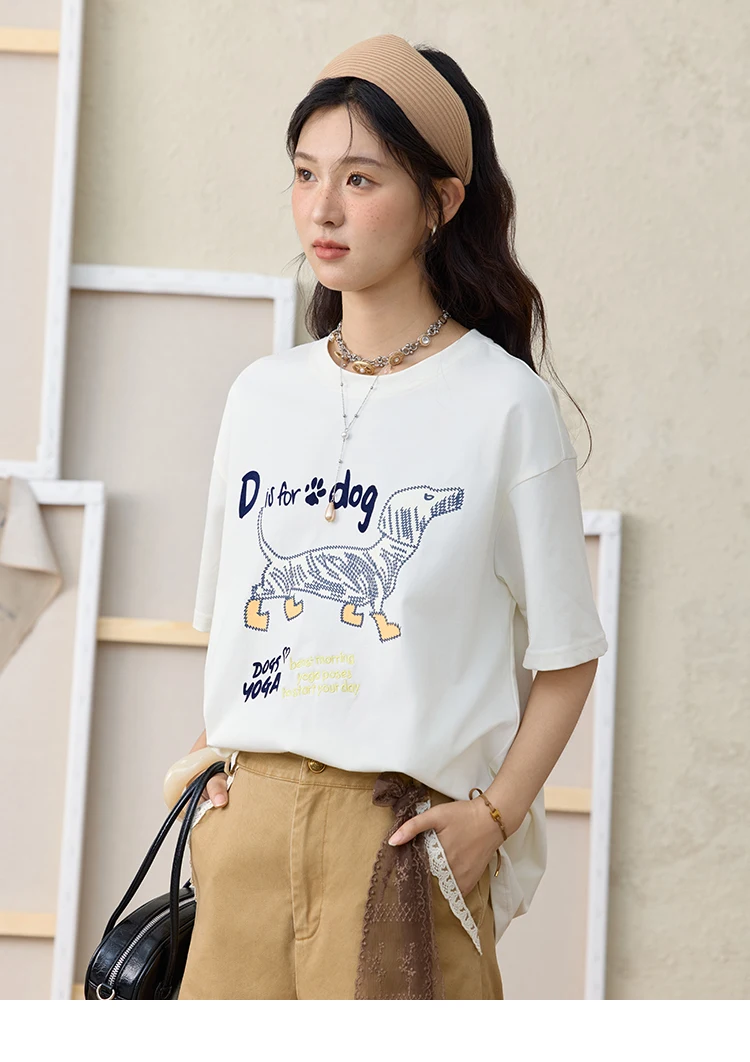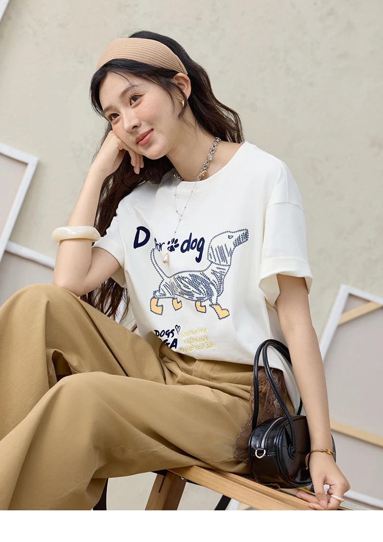 MISHOW Print Summer T-shirts Women 2025 Short Sleeve Round Neck Flocked Puppy Loose Shirt Female Casual Versatile Top MXE33T0542