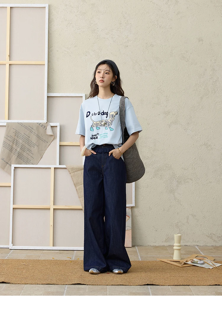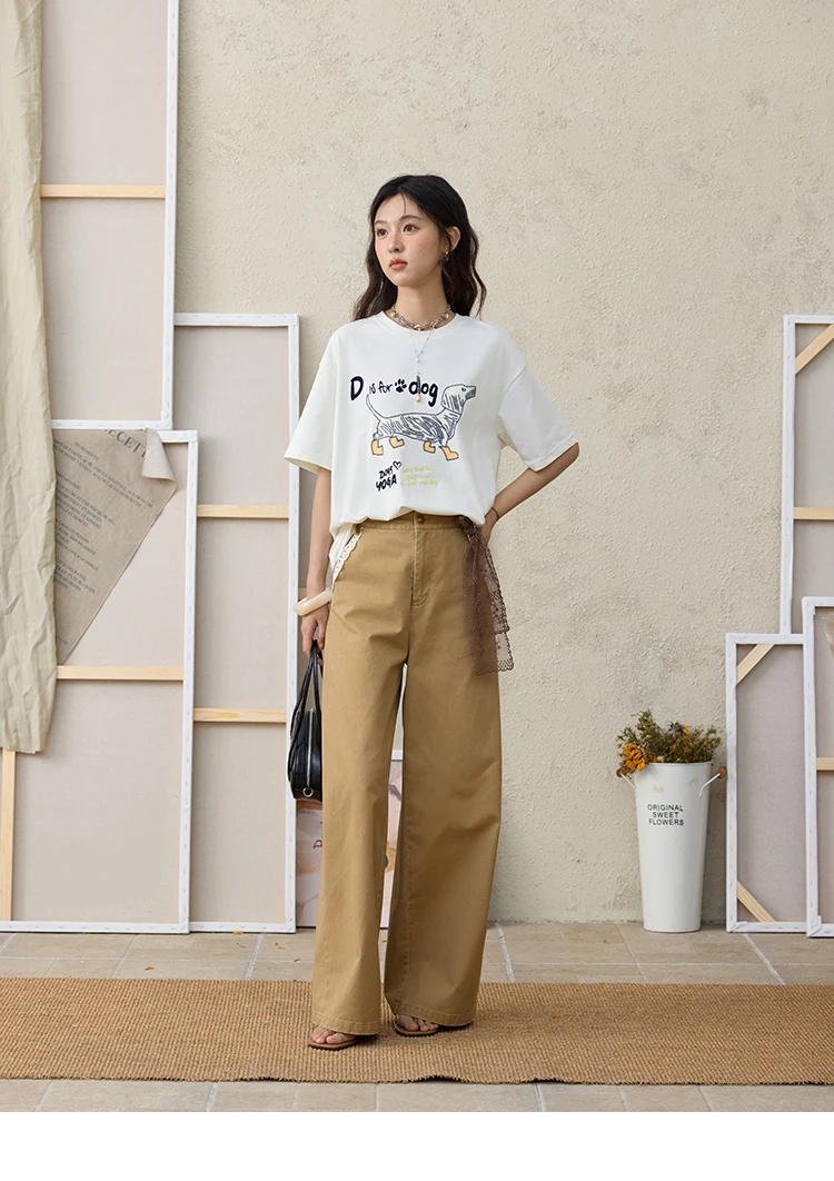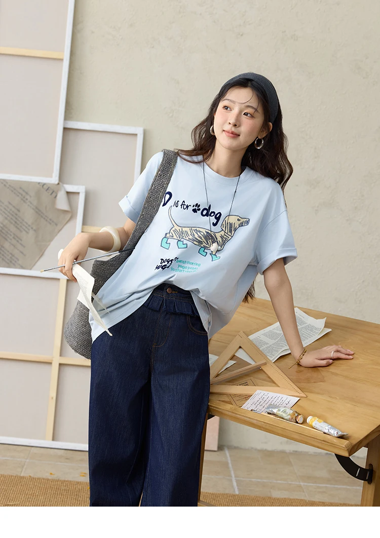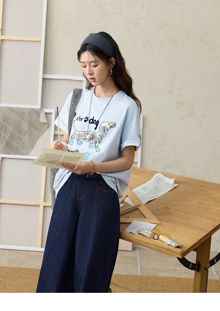 MISHOW Print Summer T-shirts Women 2025 Short Sleeve Round Neck Flocked Puppy Loose Shirt Female Casual Versatile Top MXE33T0542