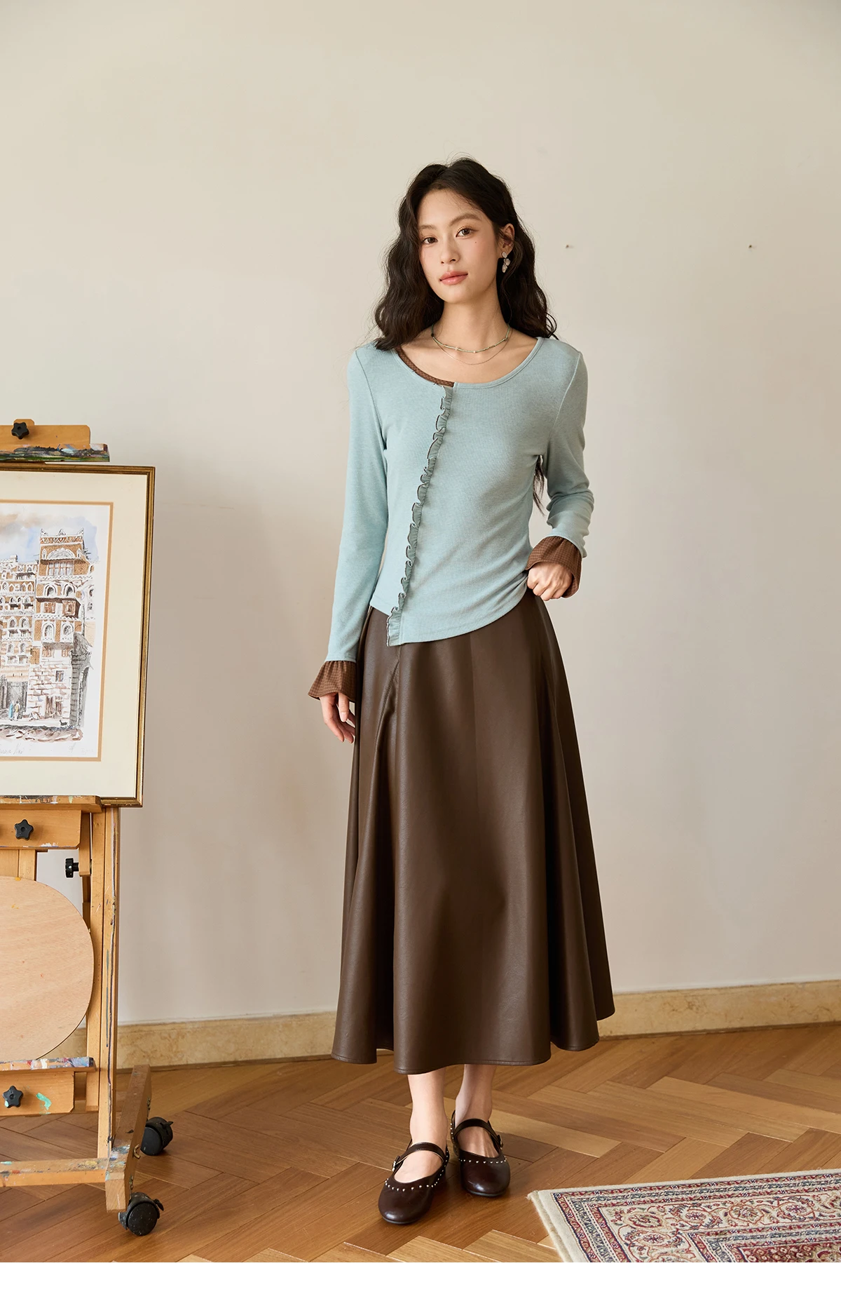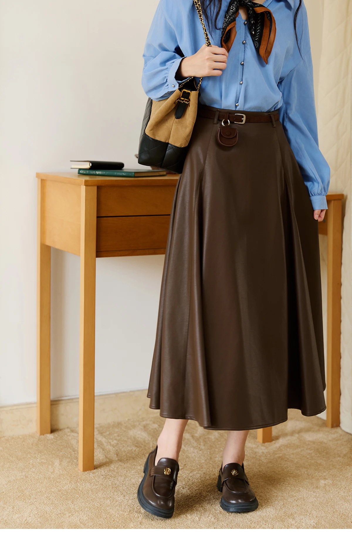 MISHOW PU Leather Skirt for Women 2025 Autumn High Waist A-line Skirt Retro Coffee Versatile Skirts Excluding Belt MXE45B2412
