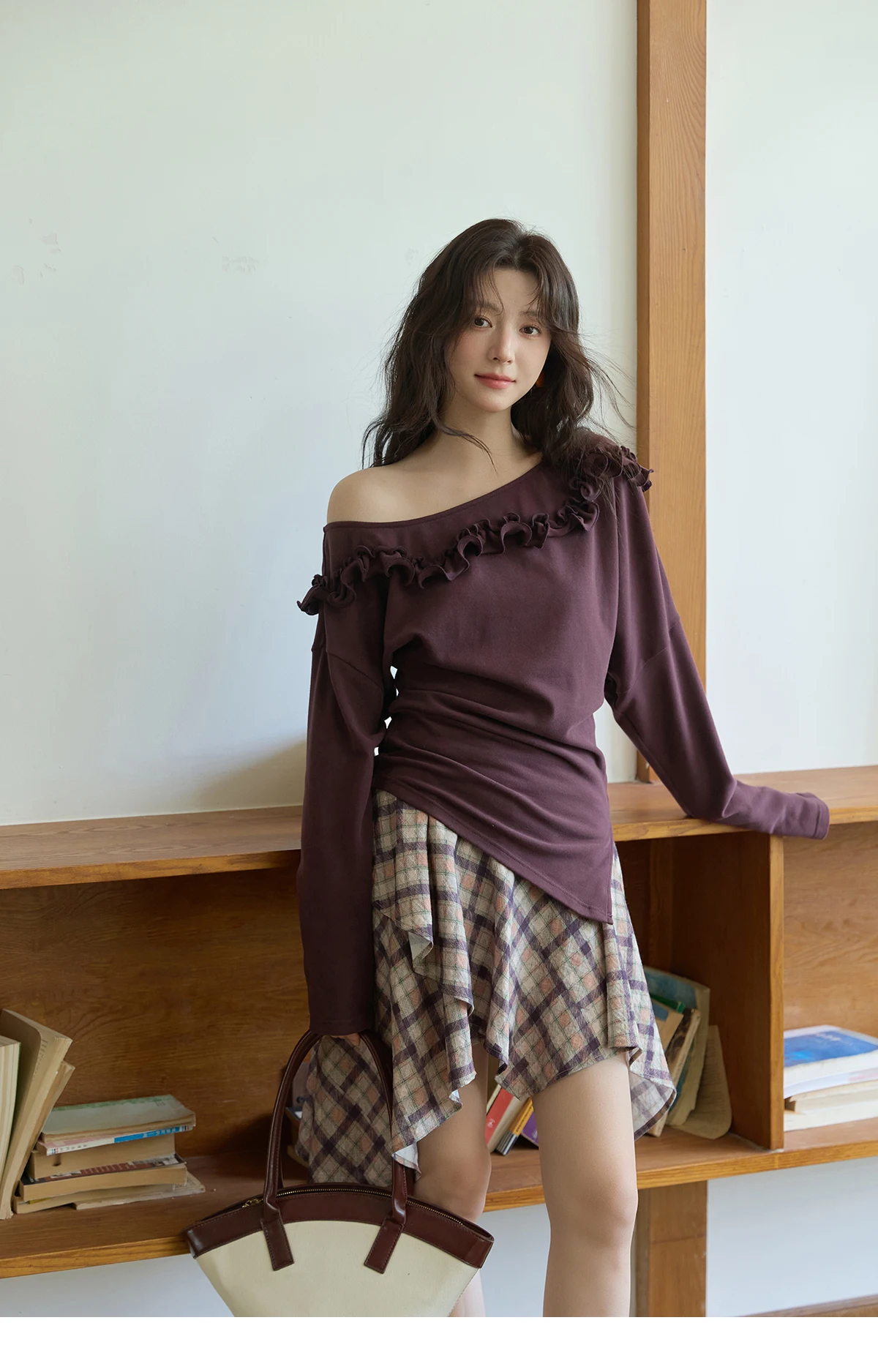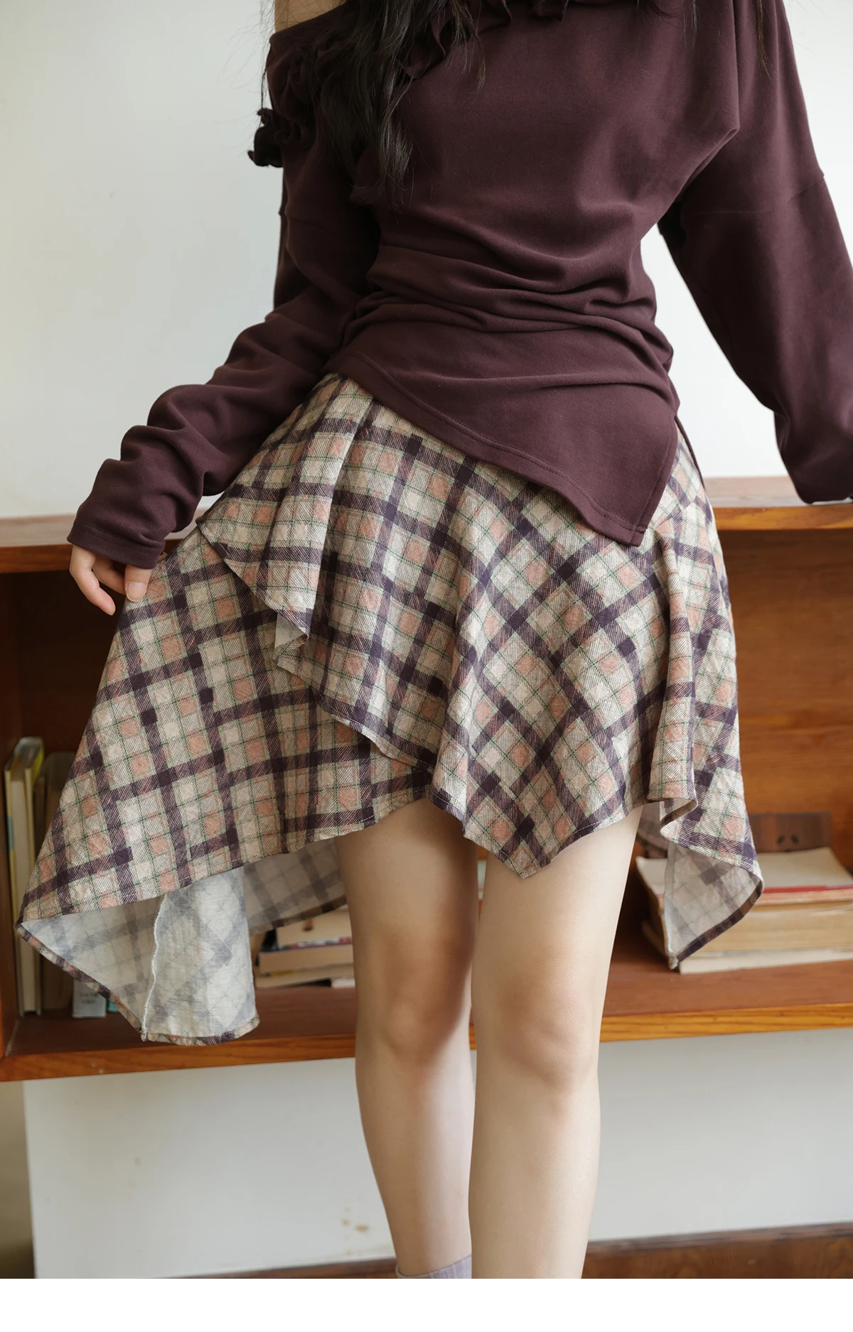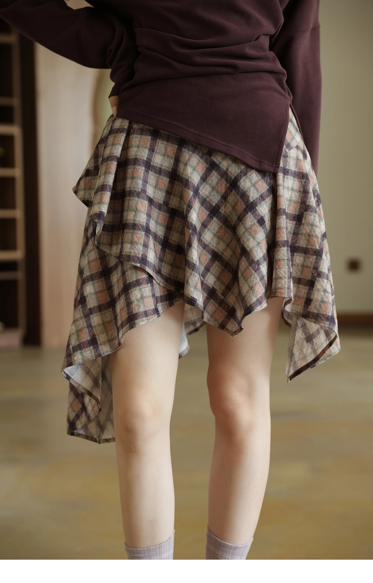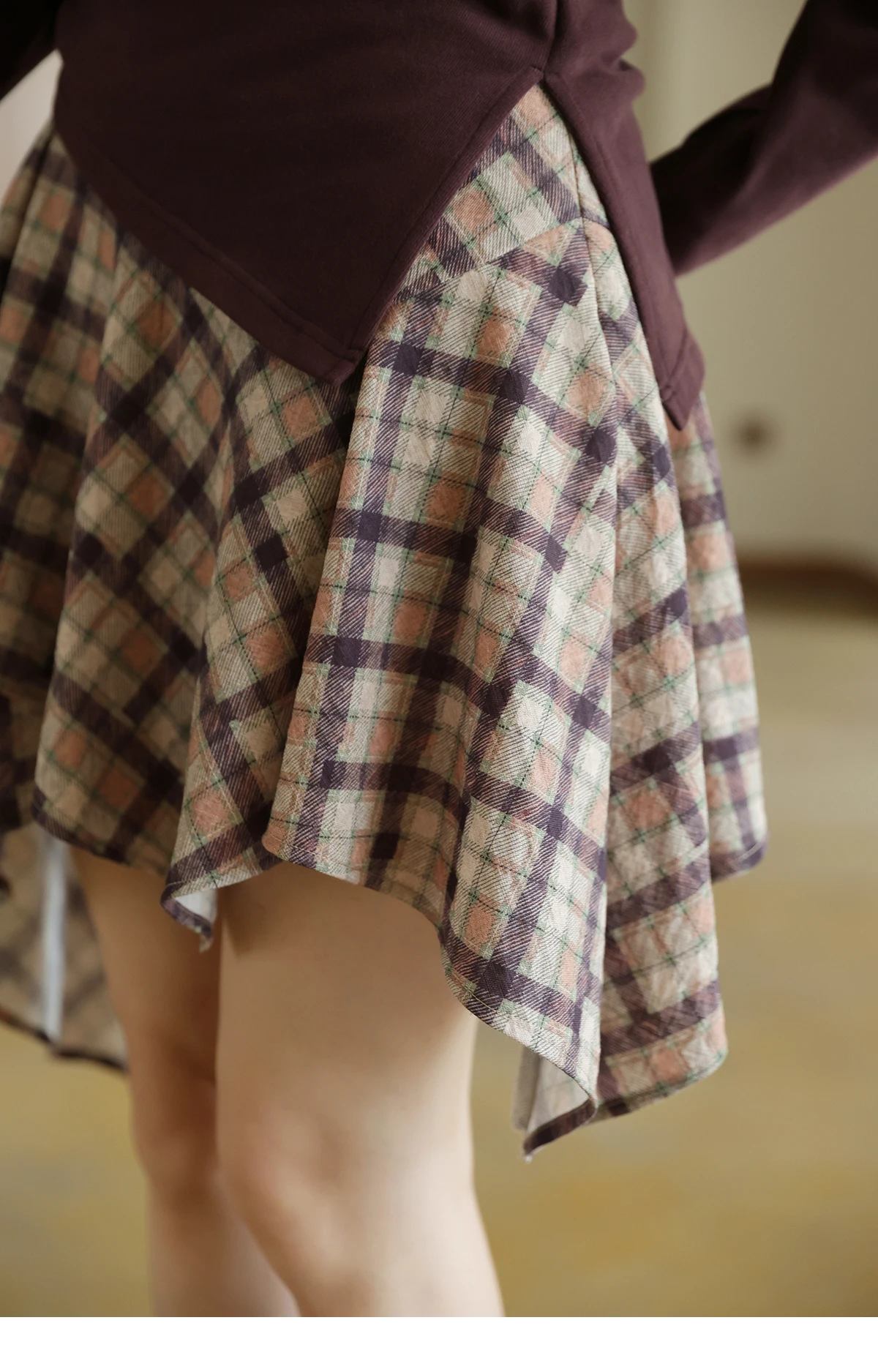 MISHOW Purple Plaid Irregular Skirt for Women Autumn 2025 Linen Blend Invisible Zipper Short Skirt Ruffle Hem Skirts MXE42B2395