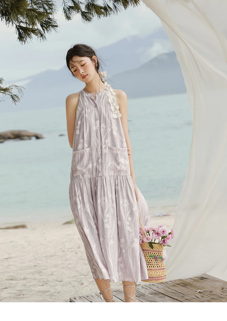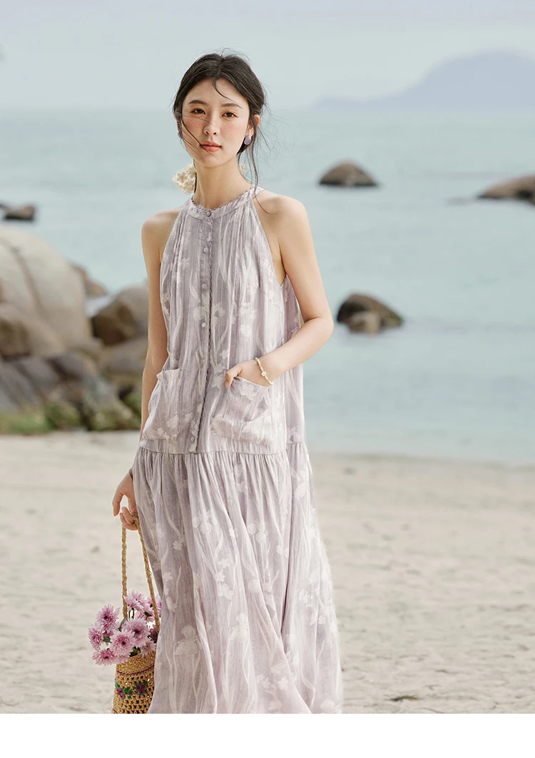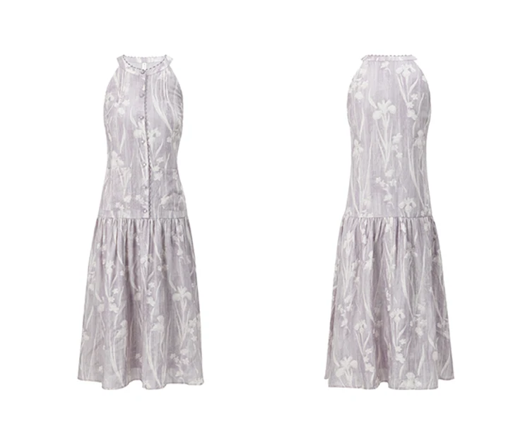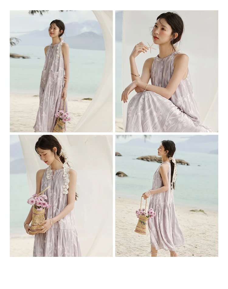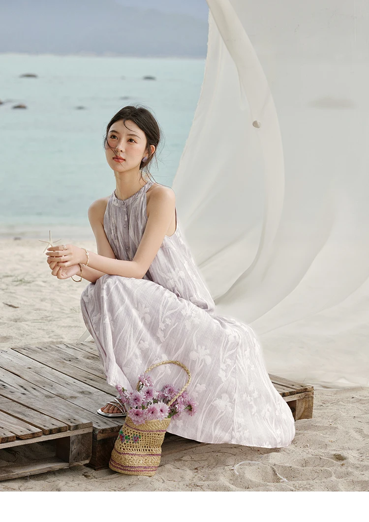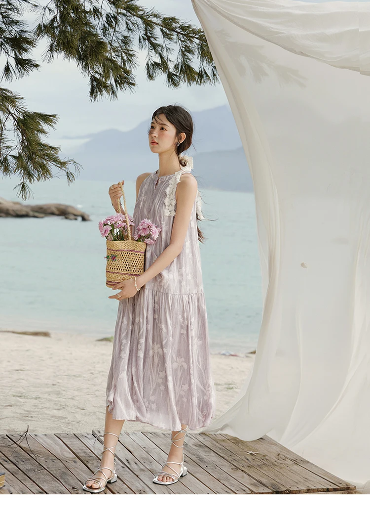 MISHOW Purple Print Chiffon Holiday Dress Women 2025 Summer Sleeveless Stand Collar Slim Dresses Woman New Fashion MXE32L2163