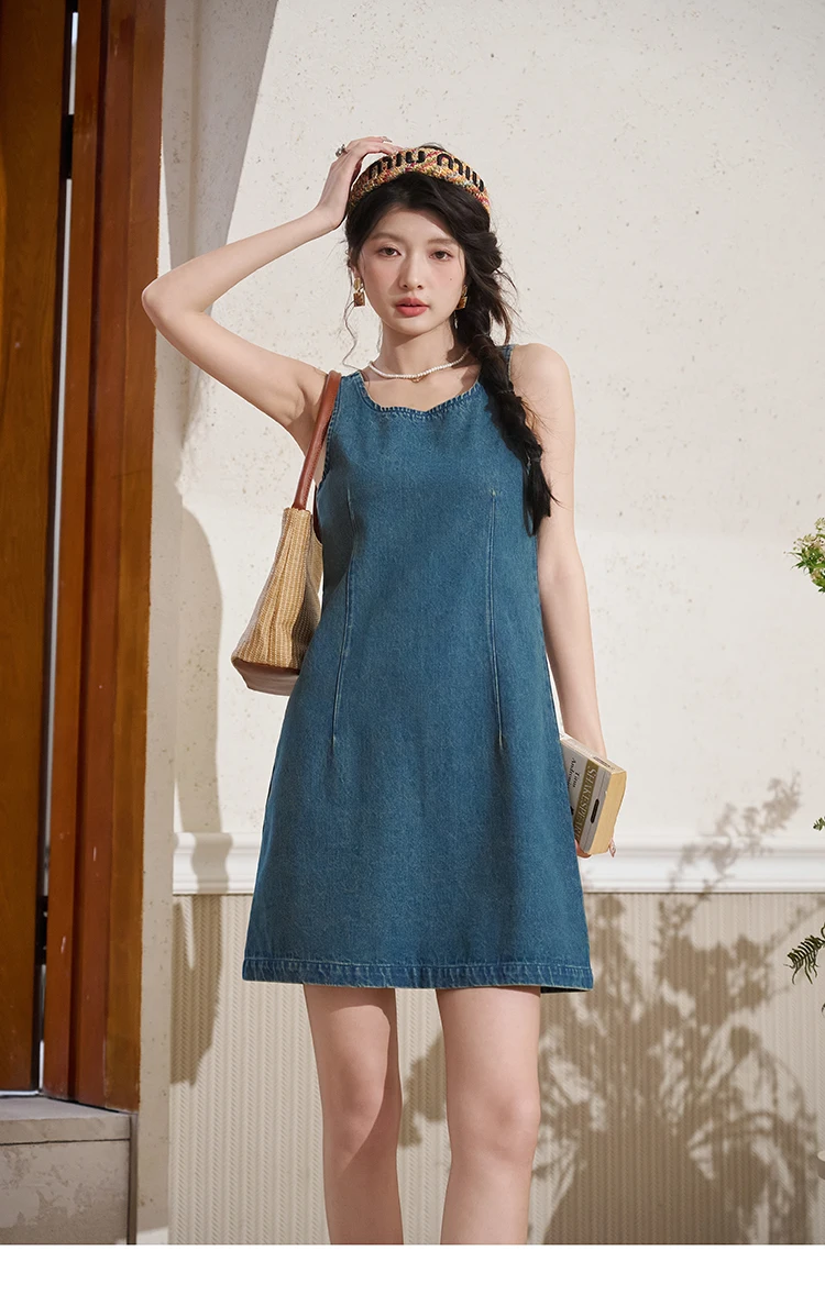MISHOW Retro Chinese Buckle Denim Short Jacket U-neck Vest Dress Separately 2025 Autumn Casual Coat Knee-Length Dress MXD14L1771