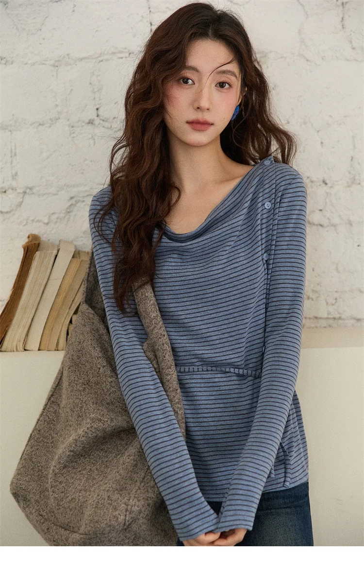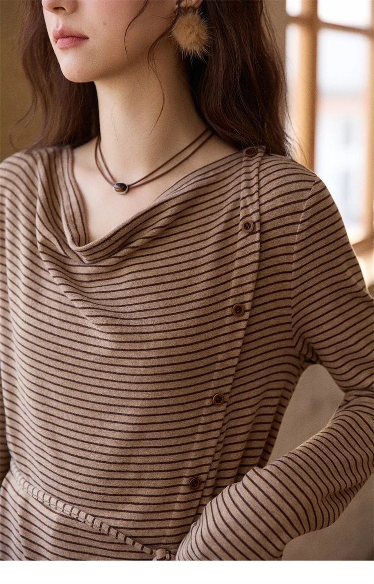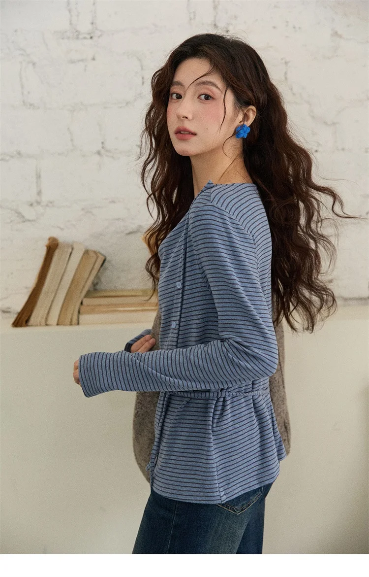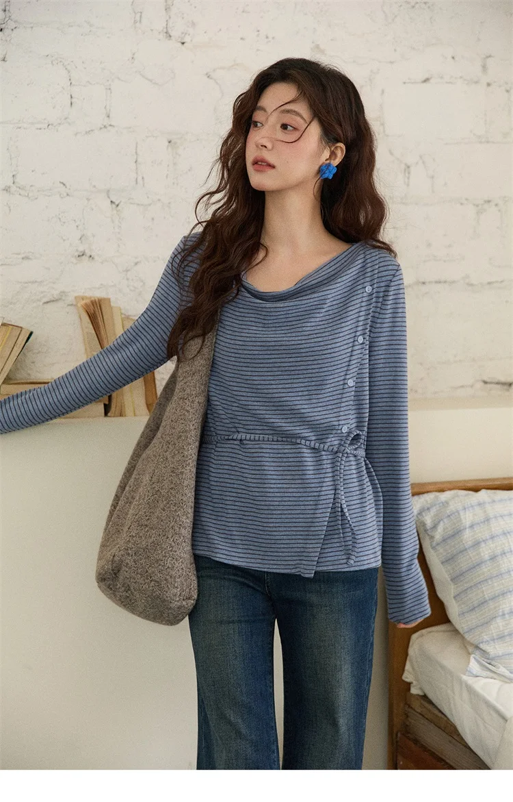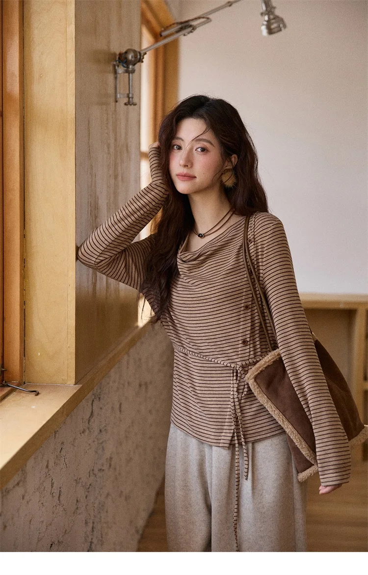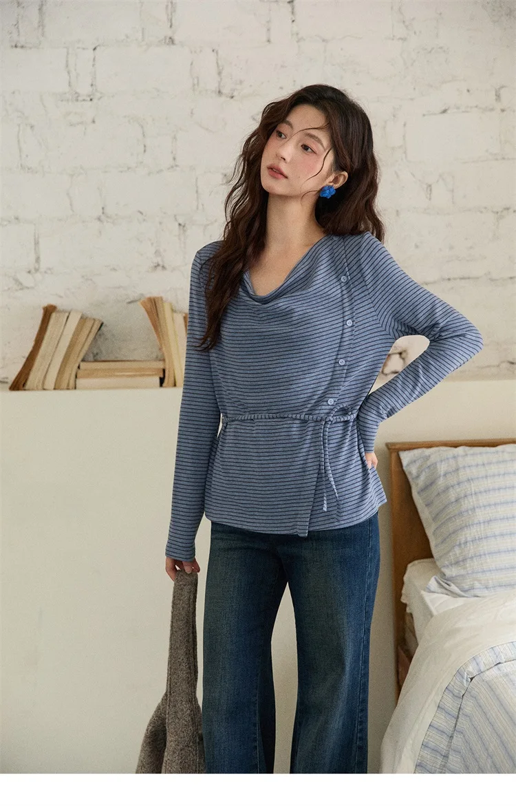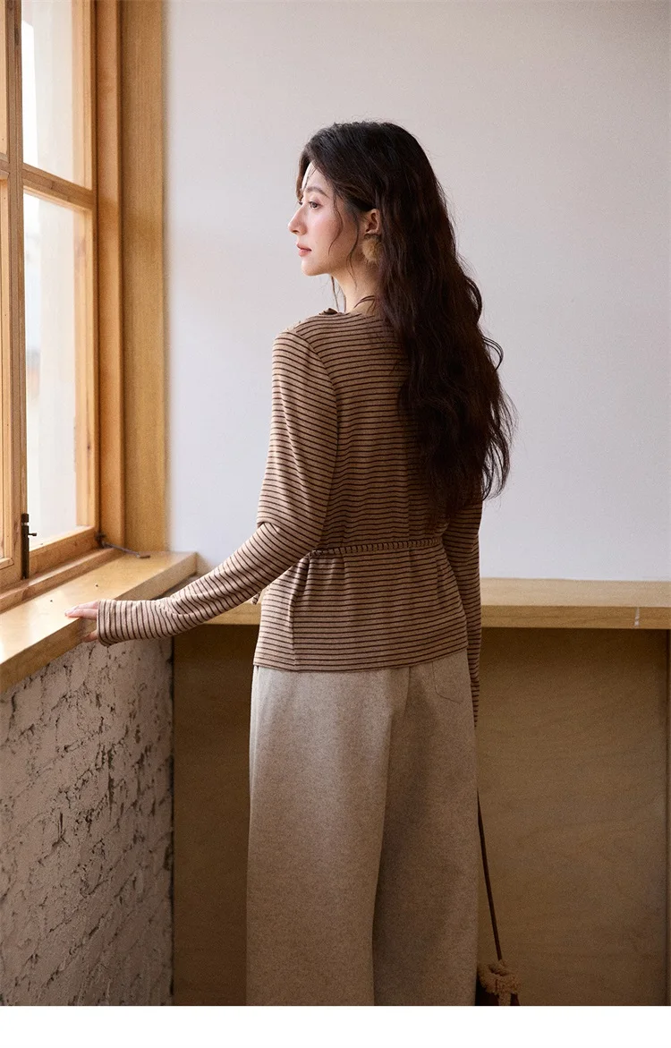 Mishow Retro Crew Neck Tie-Up Striped Top MXE87Z2700