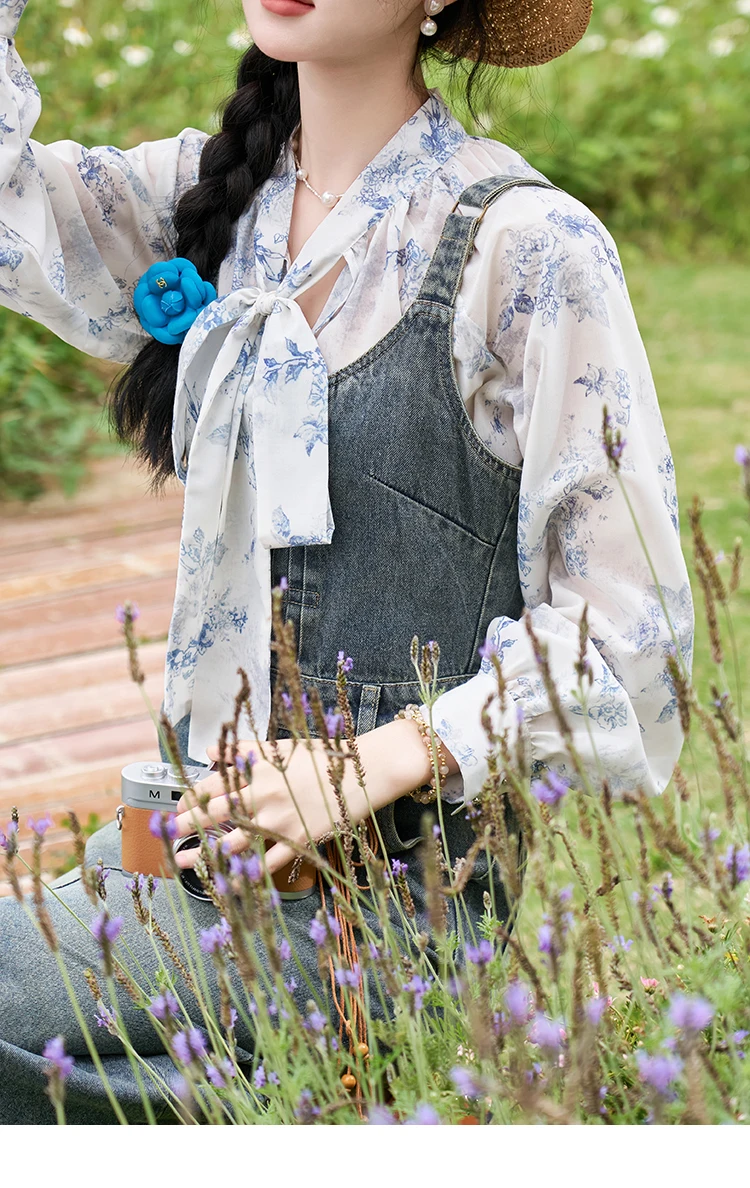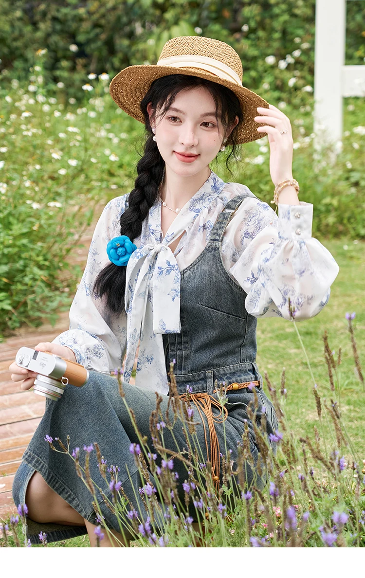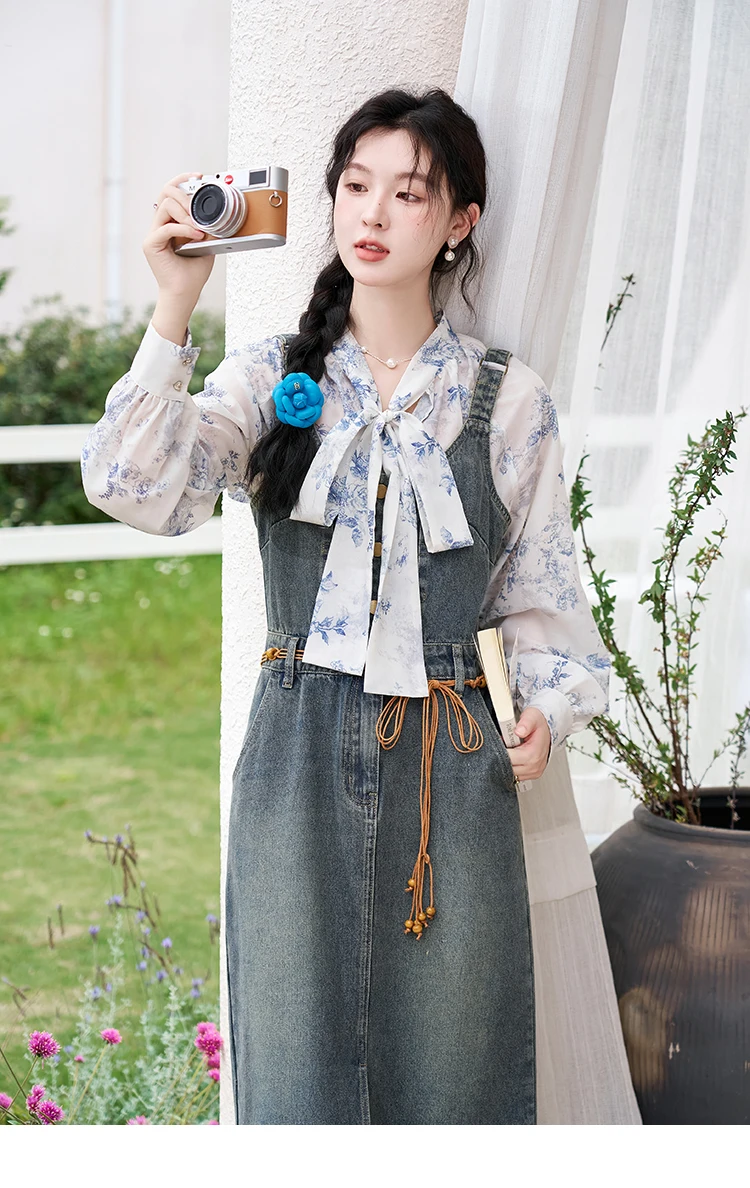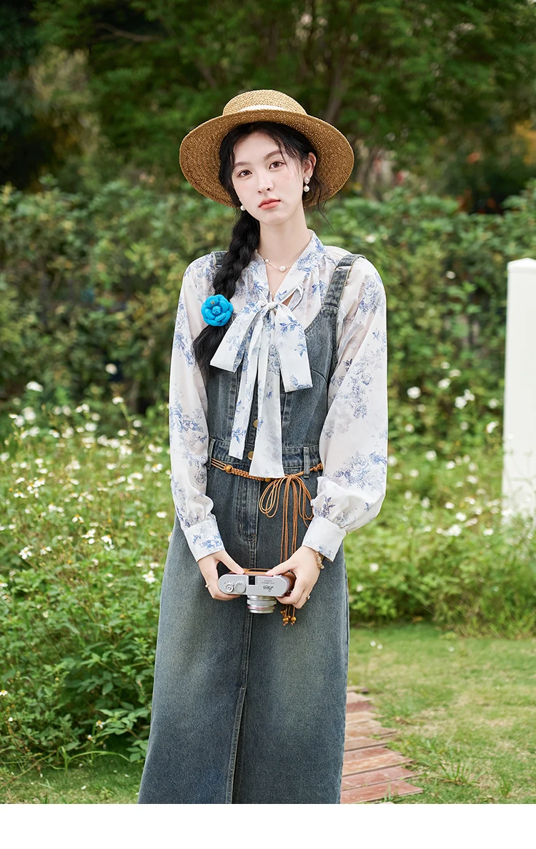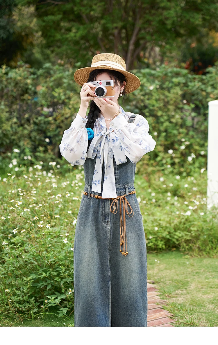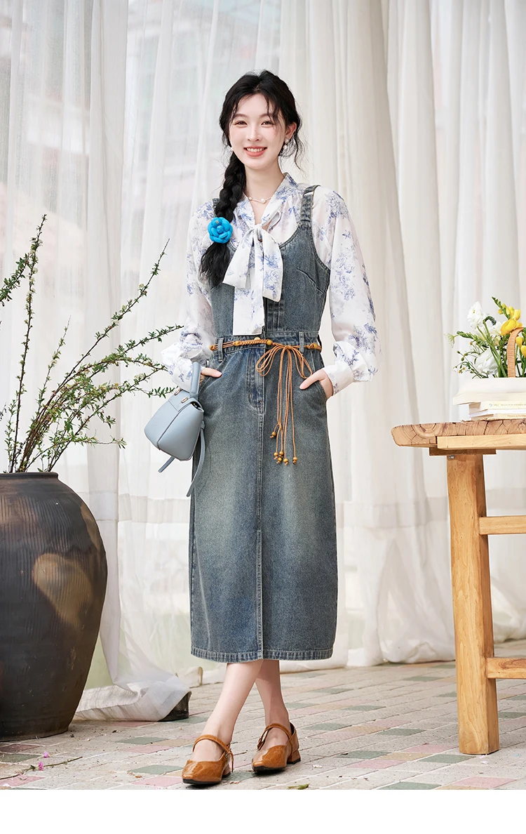 MISHOW Retro Denim Strap Dress for Women Spring Summer 2025 Symmetrical Diagonal Pockets Front Hem Slit Midi Dresses MXD14L1817