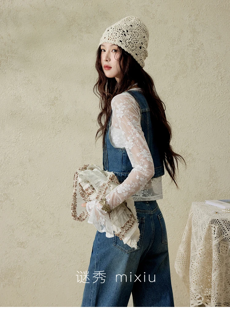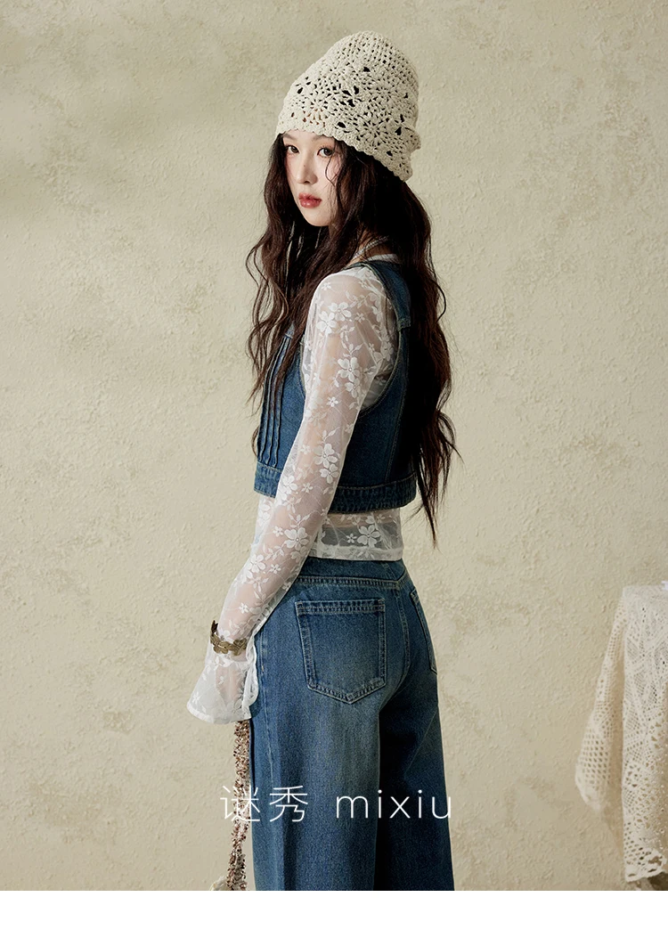 MISHOW Retro Denim Vest Coat for Women Spring Summer 2025 Deep Blue V-neck Short Versatile Outer Outfit U-neck Ccoats MXE16W0750