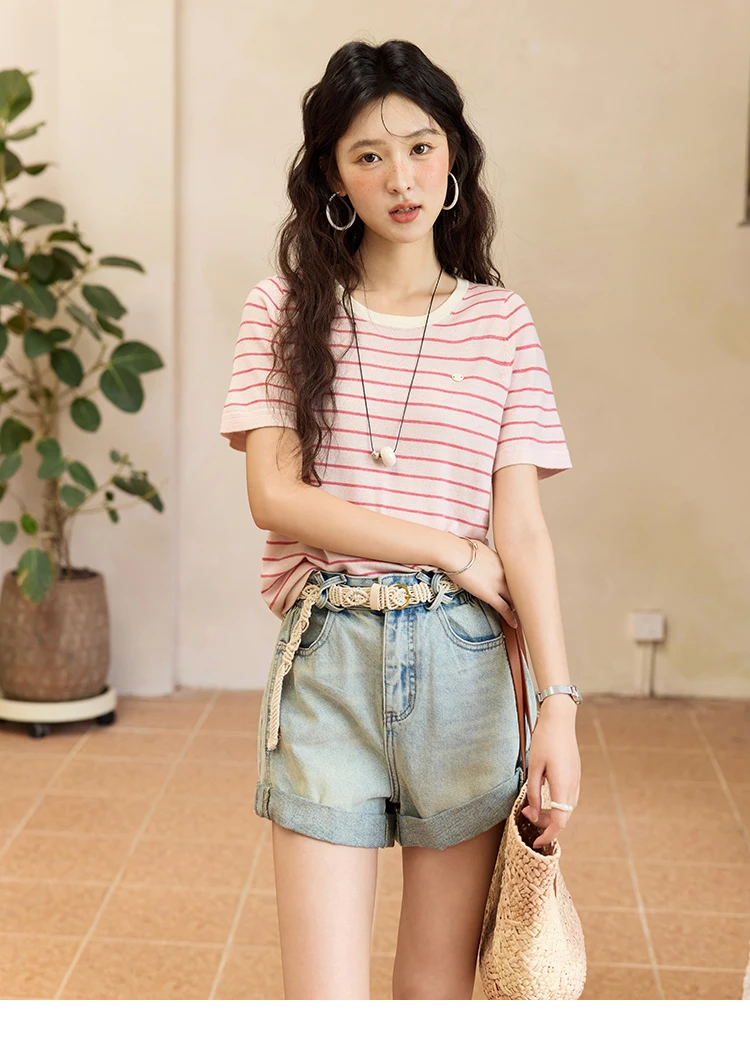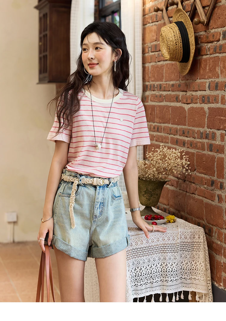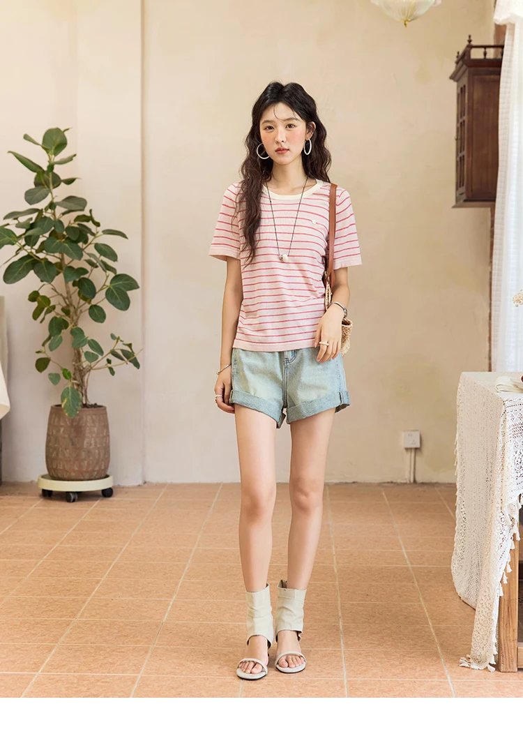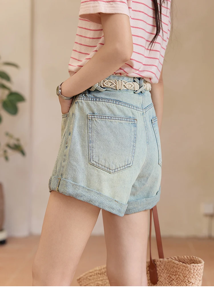 MISHOW Retro Light Blue Denim Shorts for Women Summer 2025 Fashion High Waist Washed Button Zipper Wide Leg Shorts MXE35K0944