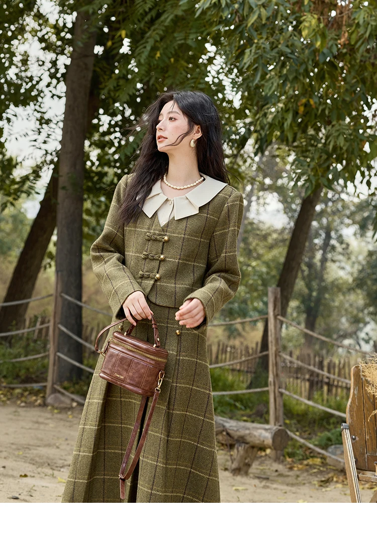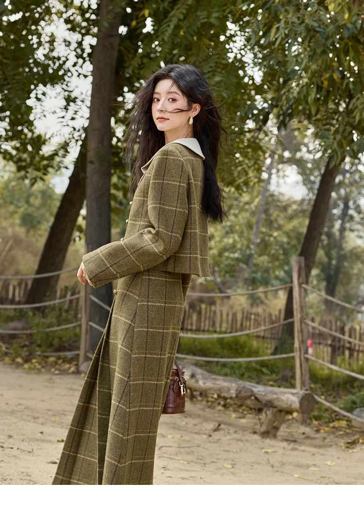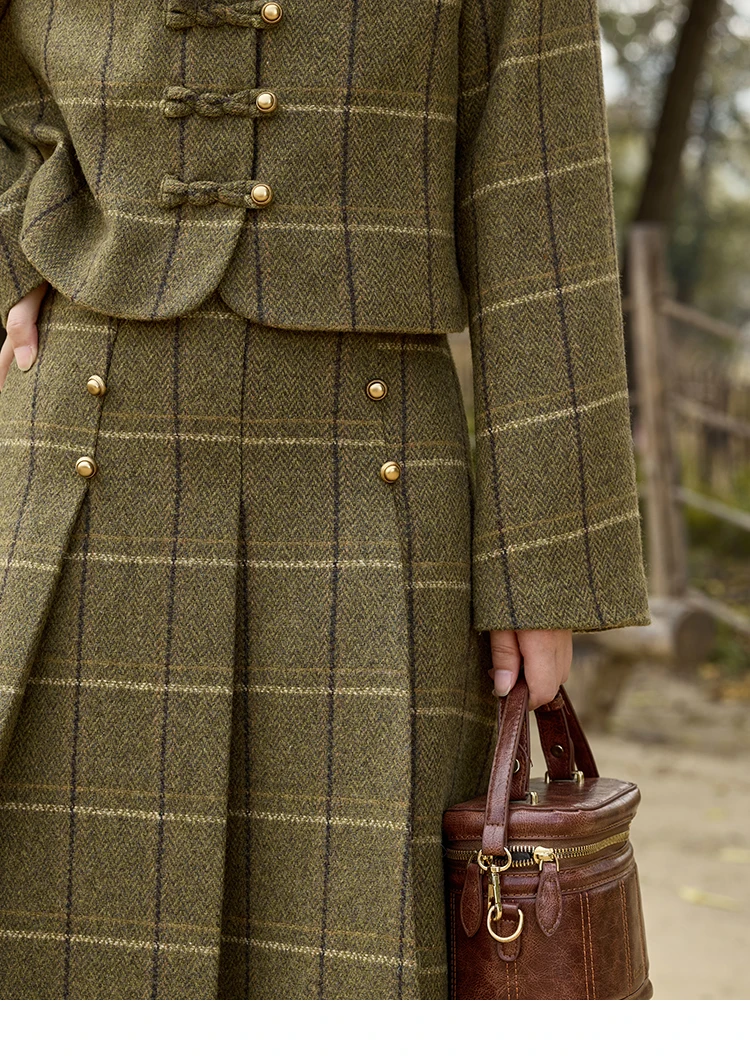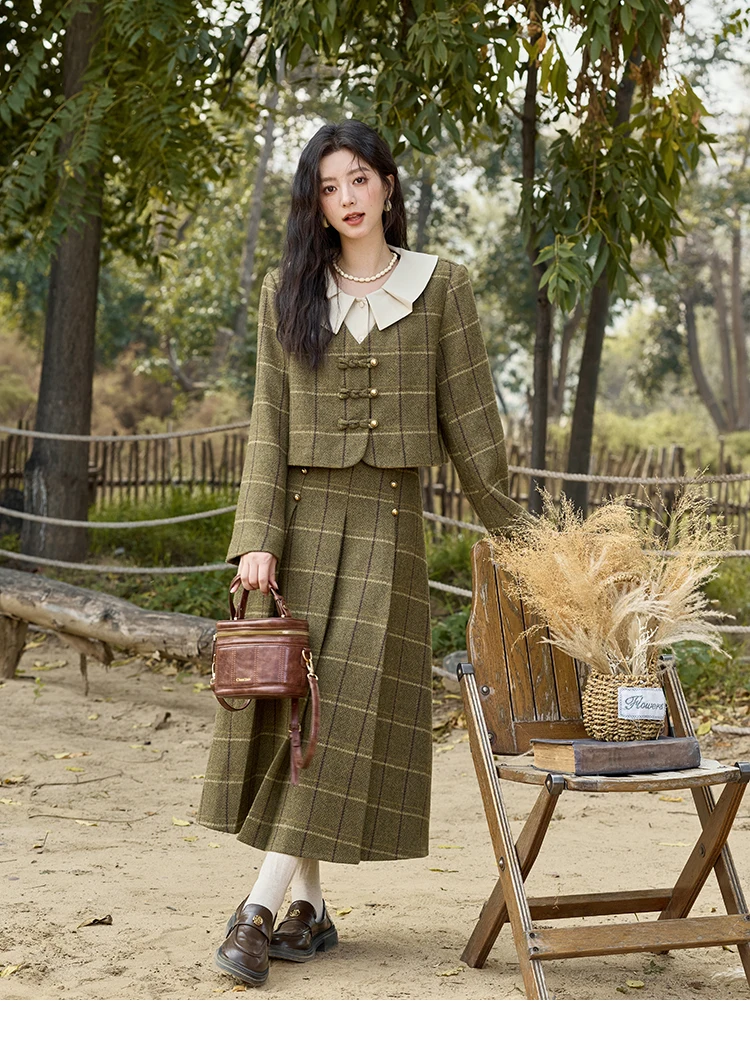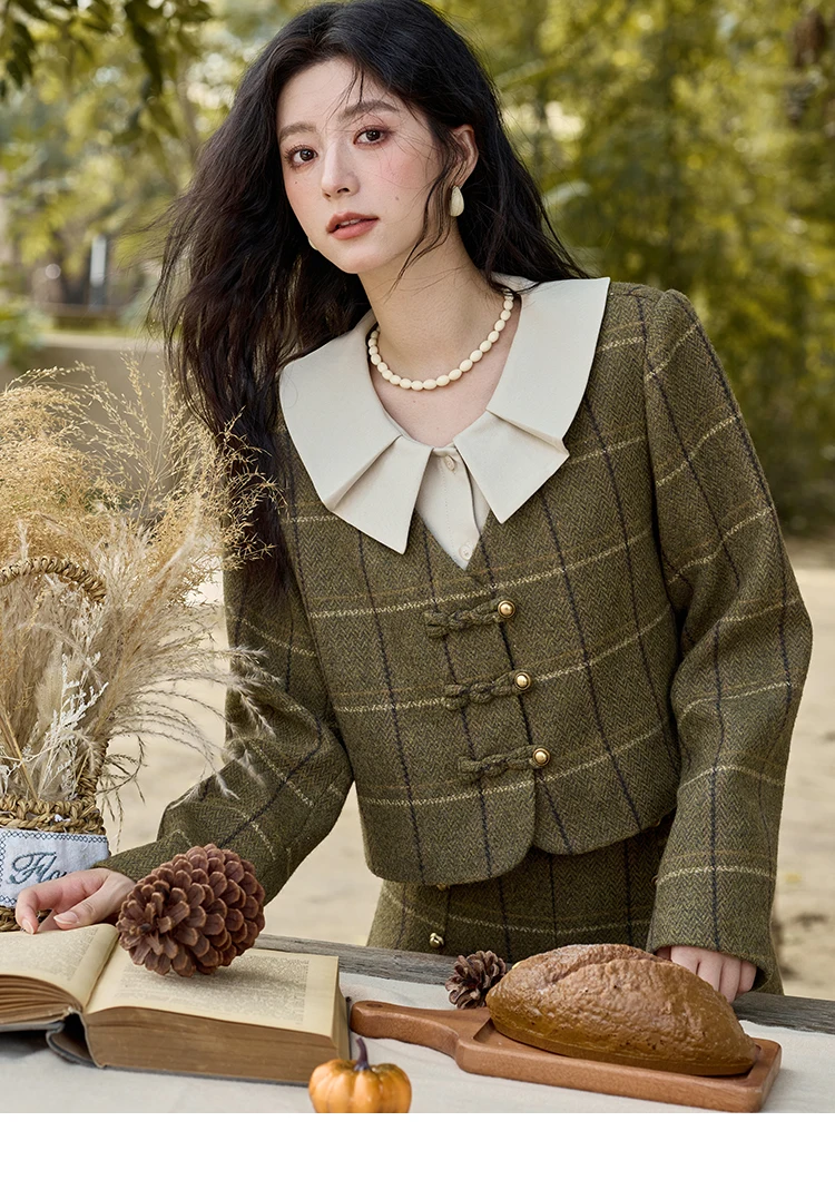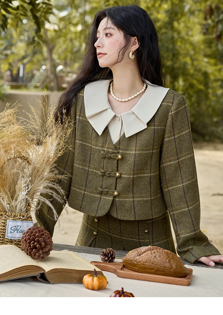 MISHOW Retro Plaid Tweed Jacket Short Skirt Separately Women 2024 Winter Doll Collar Jacket Pleated Mid Length Skirt MXD48W0469
