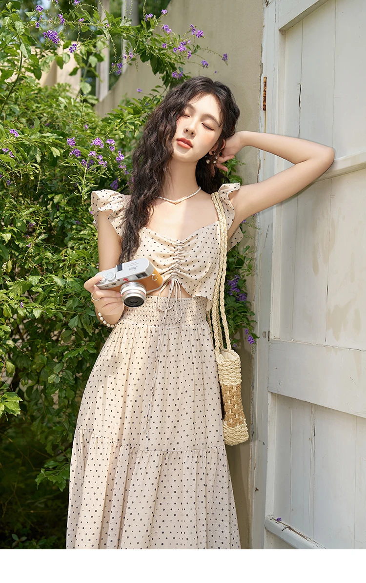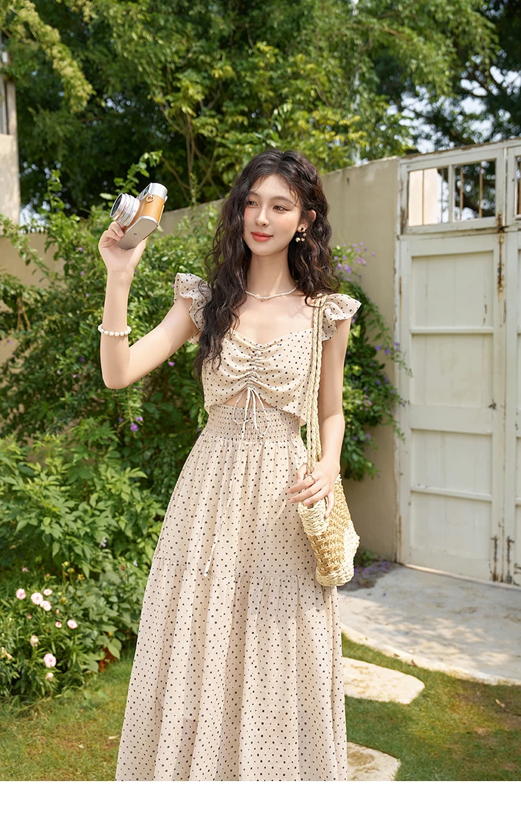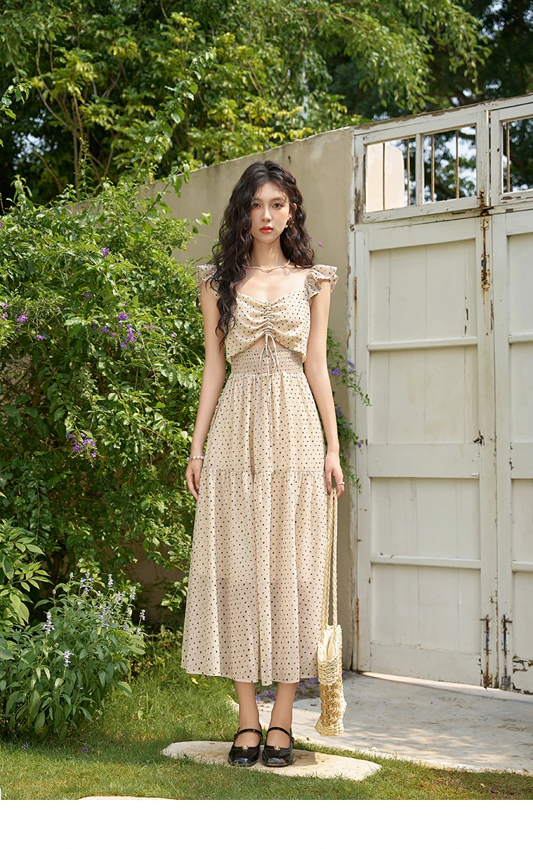MISHOW Sexy Polka Dot Dresses for Women 2024 Summer New Flying Sleeve Long Fake Two Piece French Dress Woman Clothing MXD28L1902