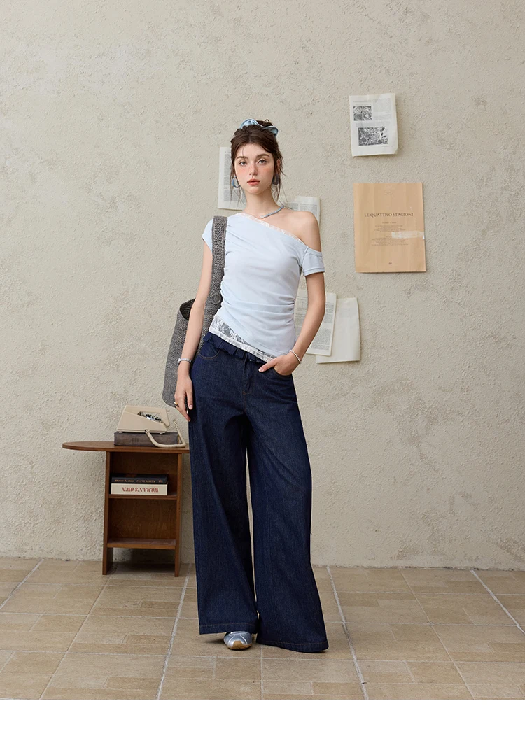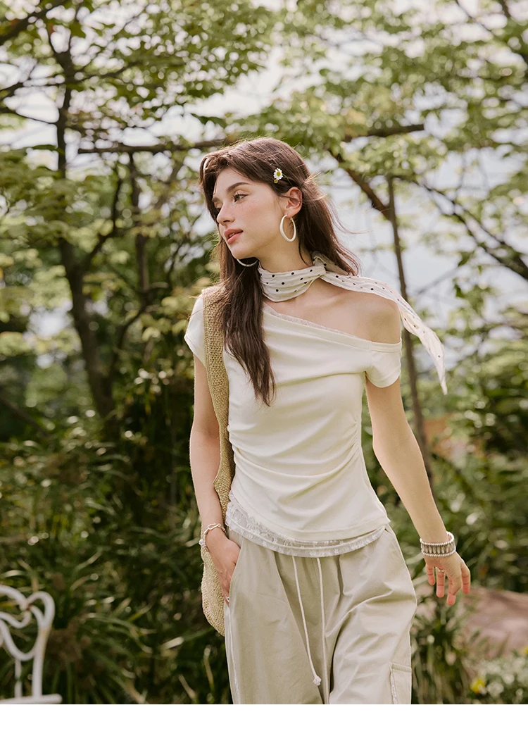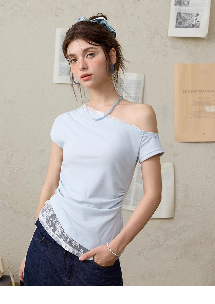 MISHOW Sexy Summer New T-shirts Women 2025 Short Sleeve Skew Collar Off-shoulder Lace Shirt Female Versatile Thin MXE31T0503
