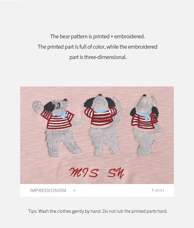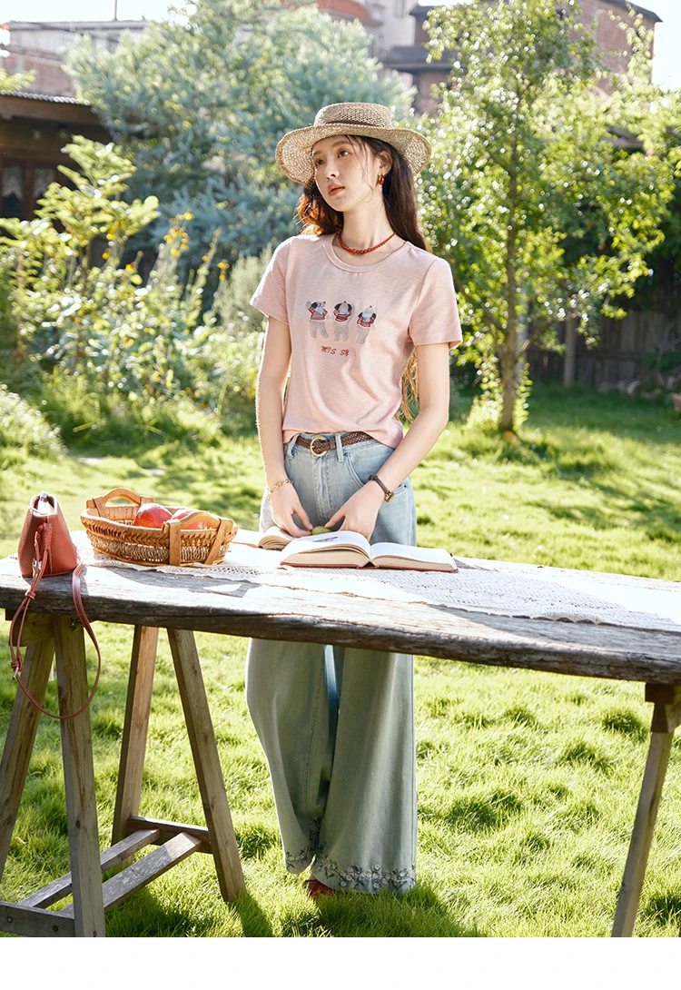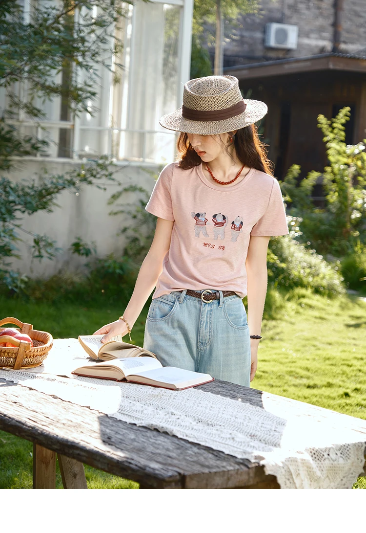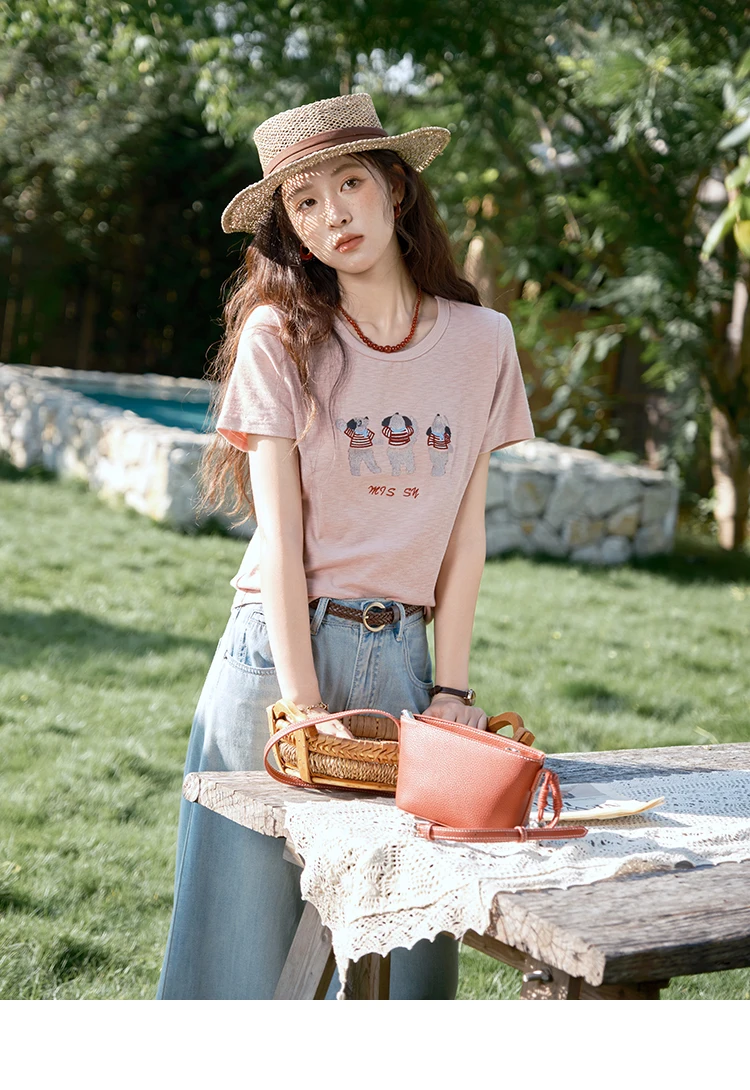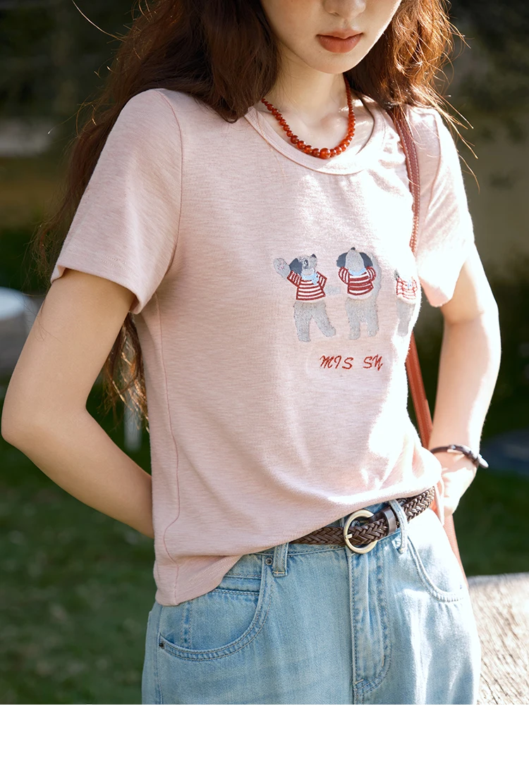 MISHOW Short Sleeve Little Bear Print T-shirt for Women 2025 Summer New O-Neck Embroidery Top Versatile Loose Tee MXE39T0699