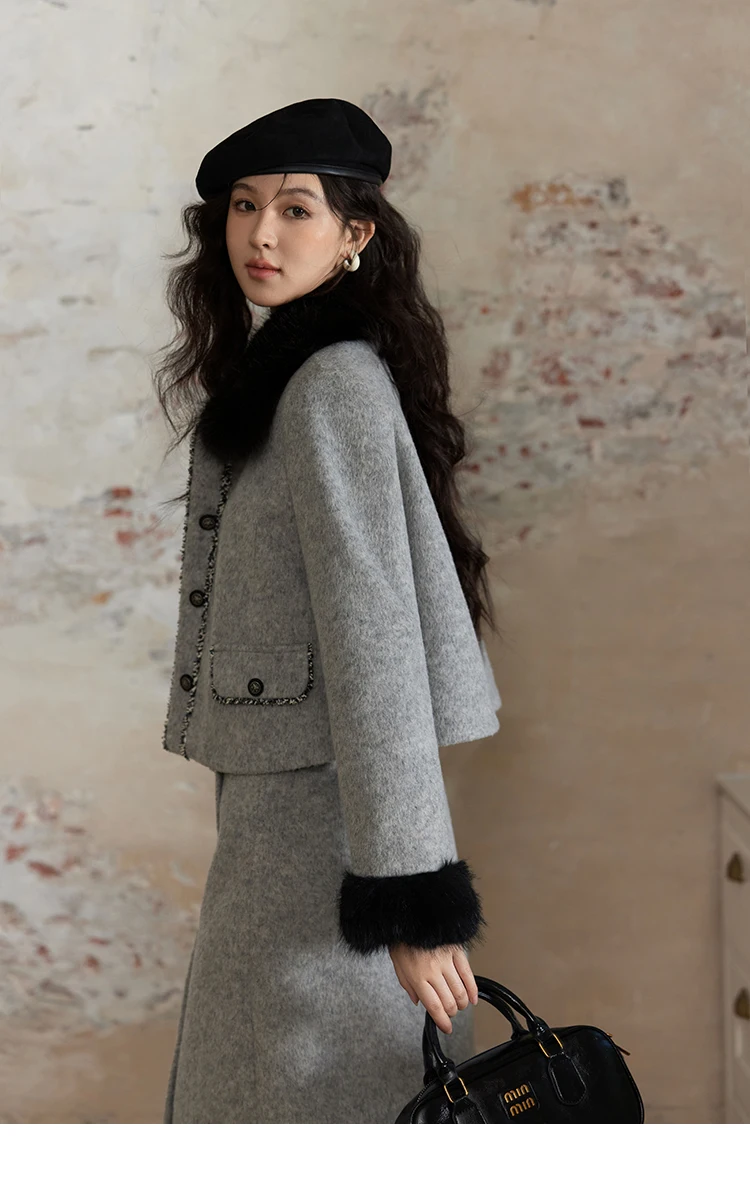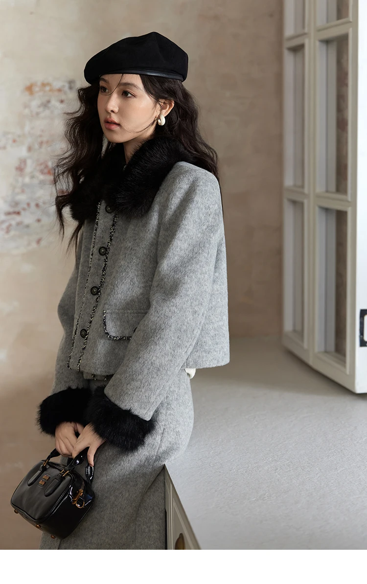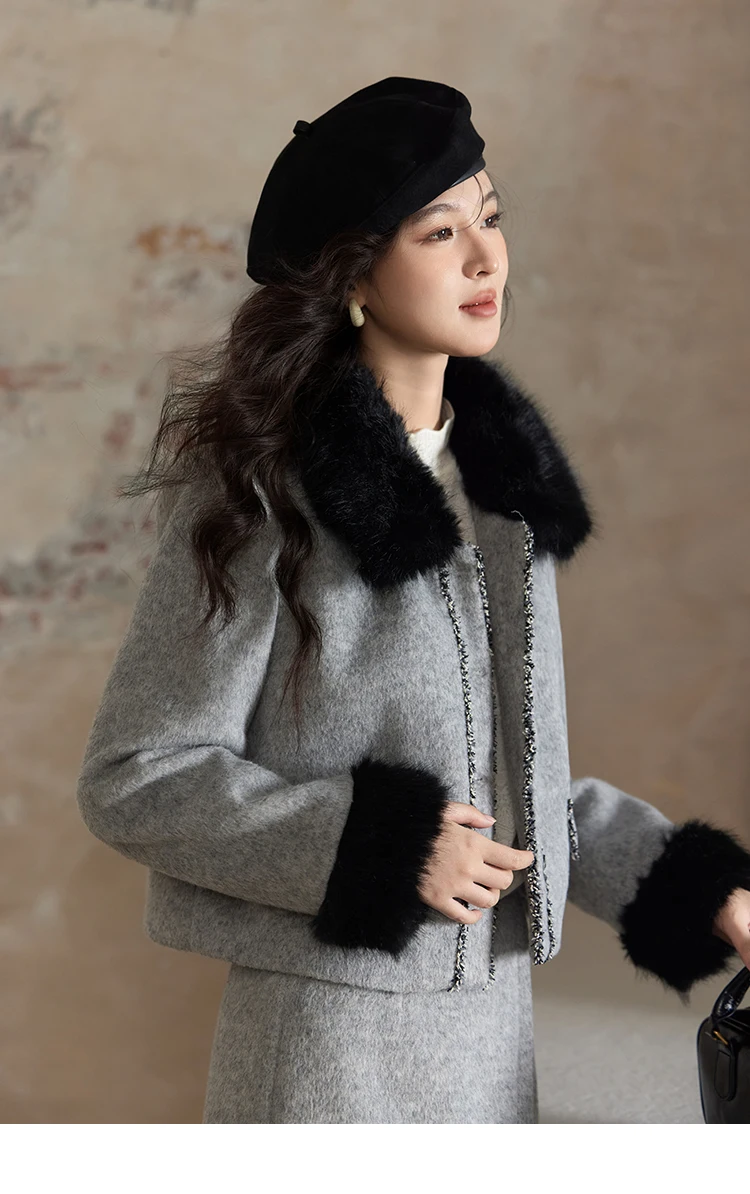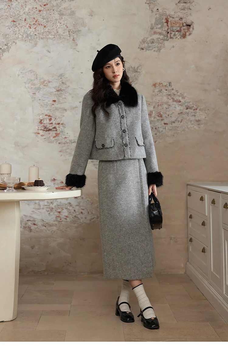 MISHOW Short Tweed Jacket Temperament Midi Skirts Separately Color Clash Lace Design Winter Skirt Thickened Coat MXD54W0553