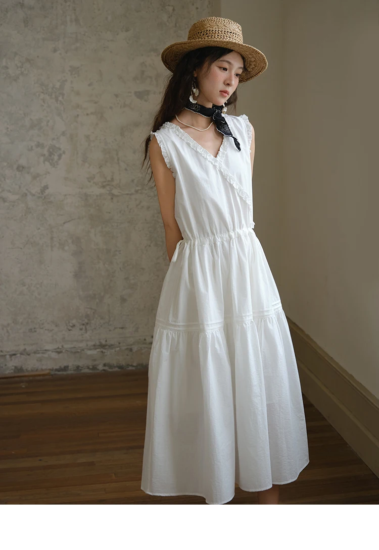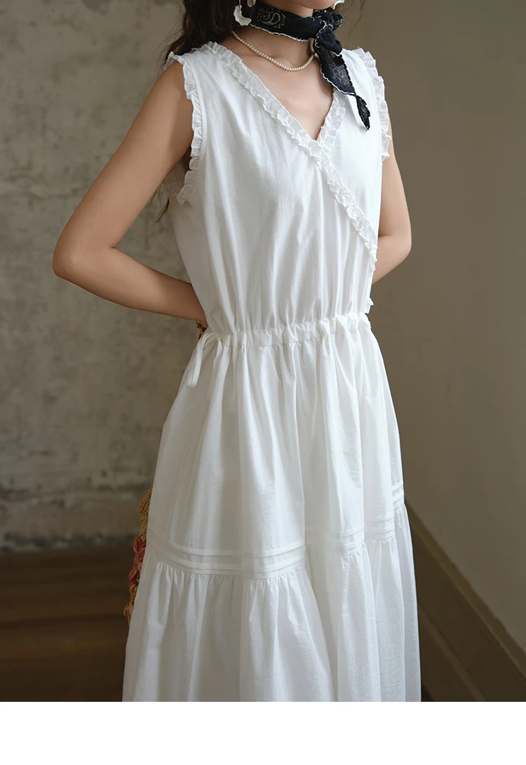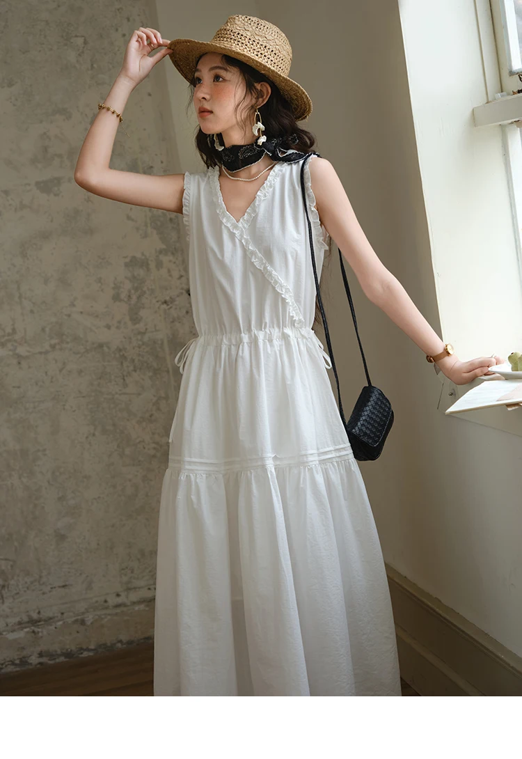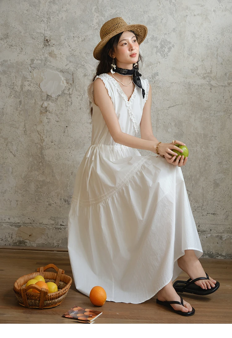 MISHOW Sleeveless Dress for Women Summer 2025 Drawstring Waist Simple Fashion Lace V-neck Dresses Female Clothing MXE37L2331