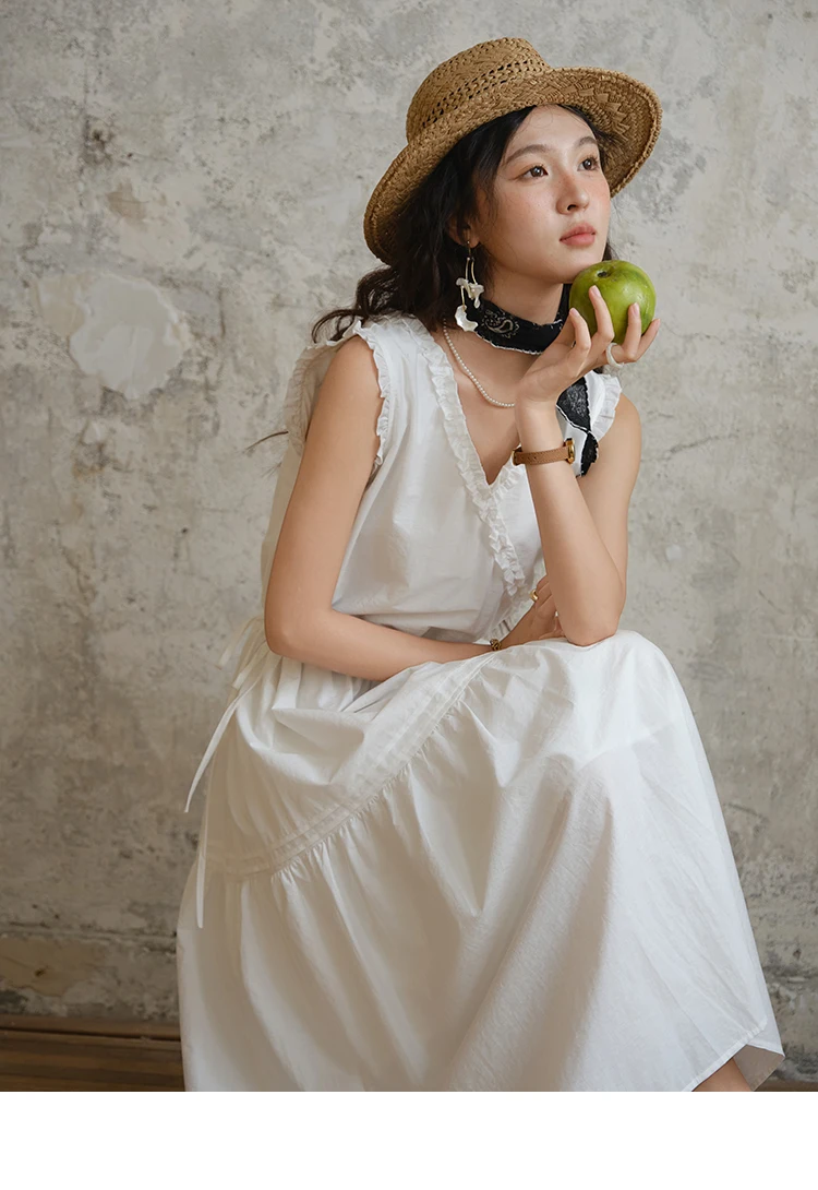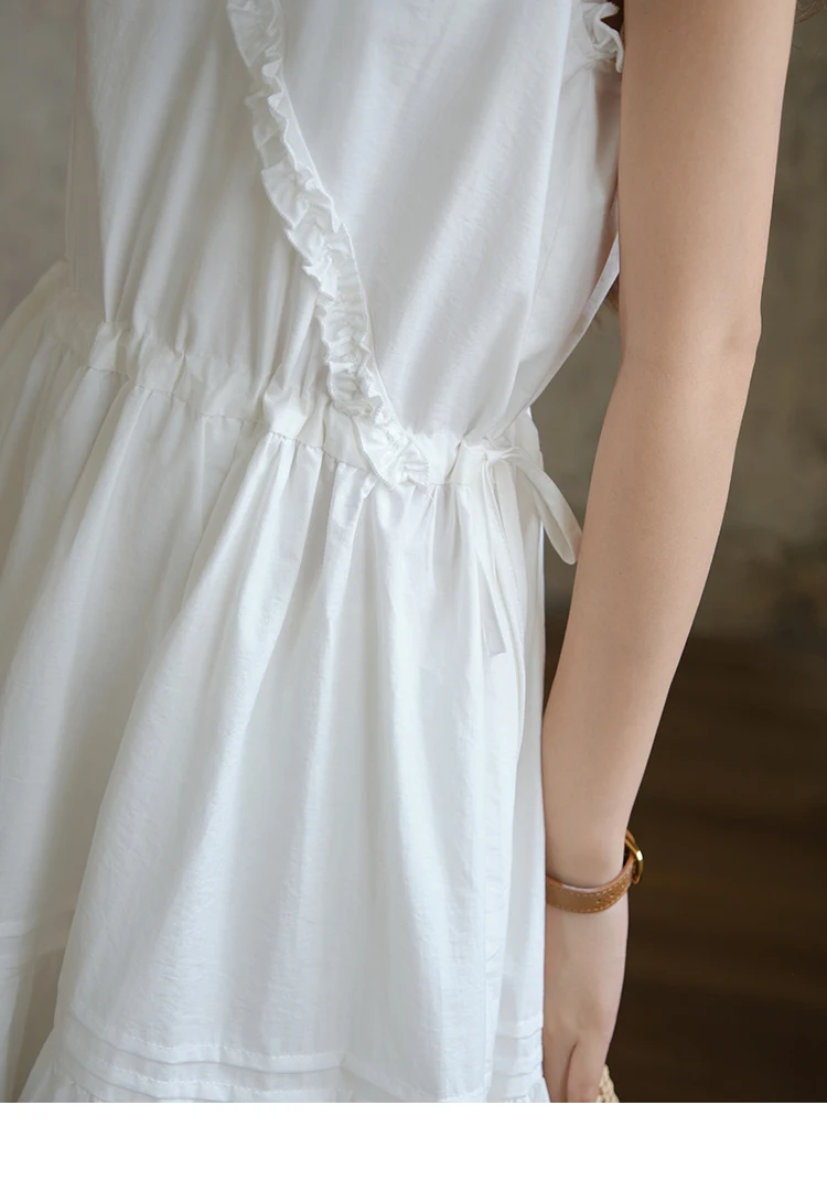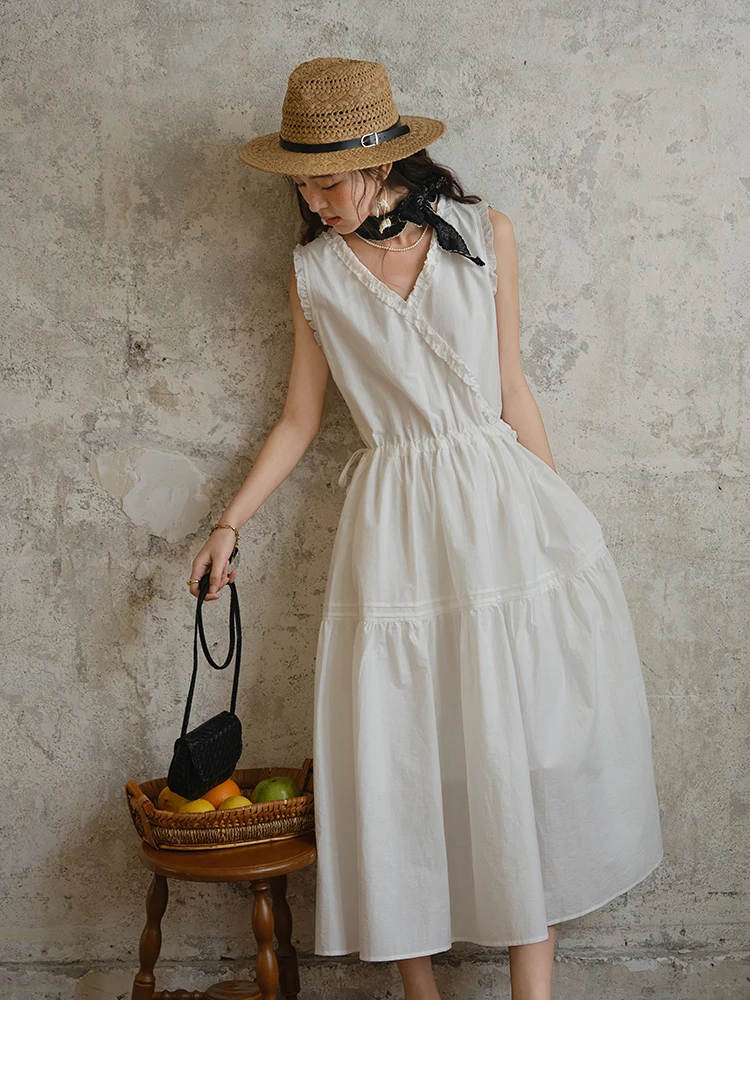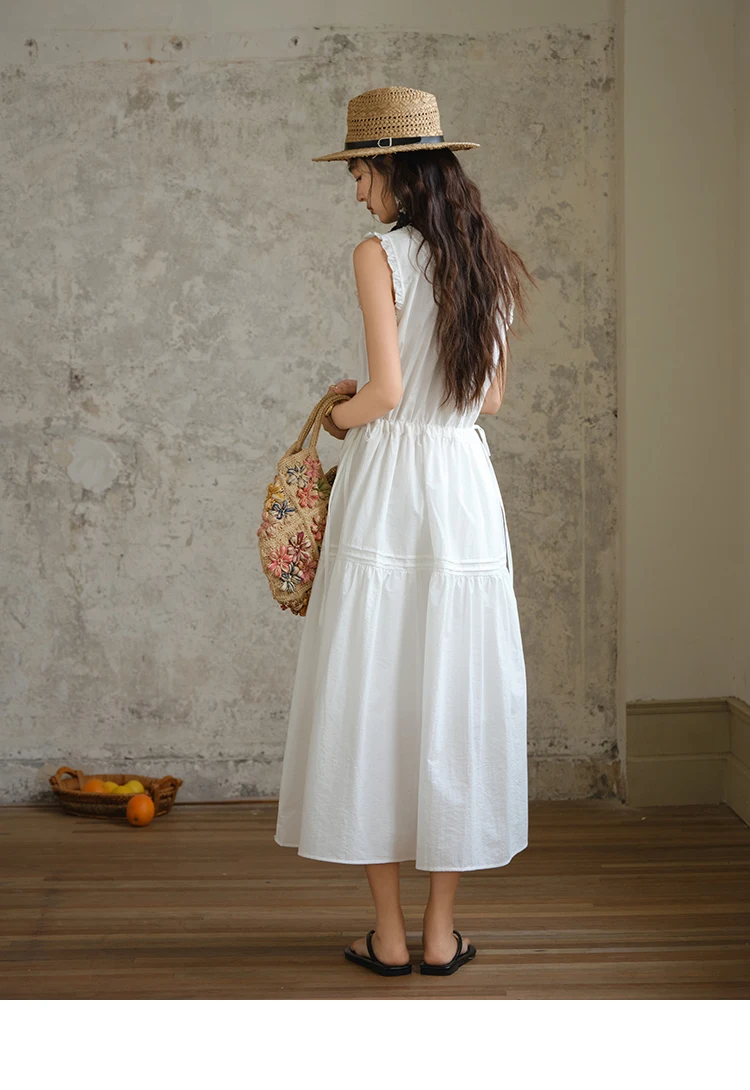 MISHOW Sleeveless Dress for Women Summer 2025 Drawstring Waist Simple Fashion Lace V-neck Dresses Female Clothing MXE37L2331