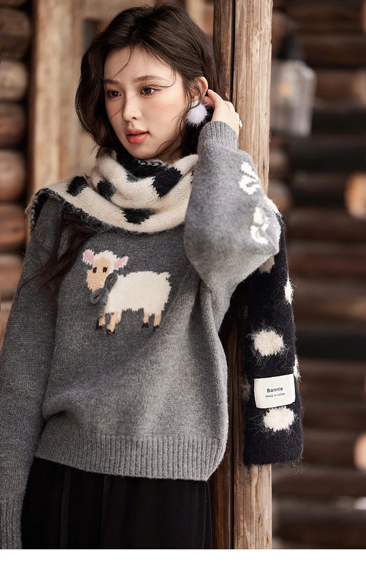 MISHOW Soft Lamb O-Neck Pullovers Color Clash Spliced Knitted Sweater 2024 Winter Women Clothes Thickened Warm Tops MXD59Z1140