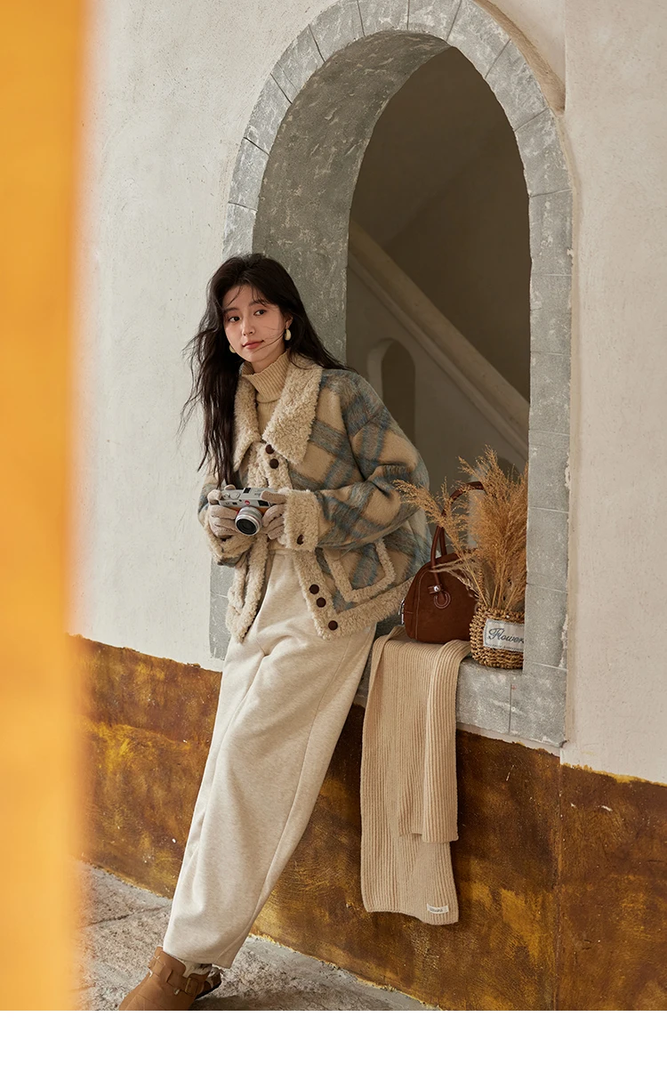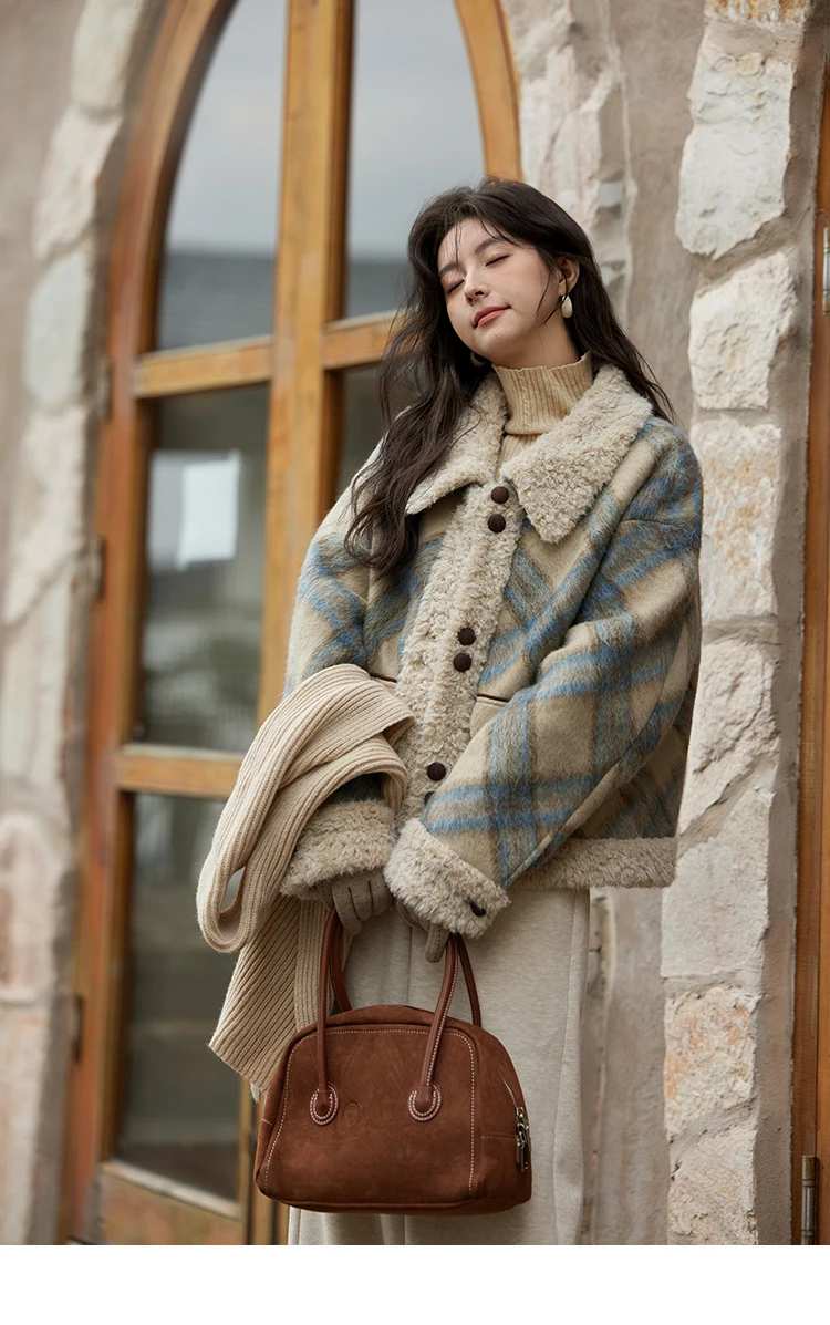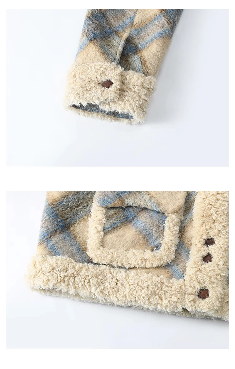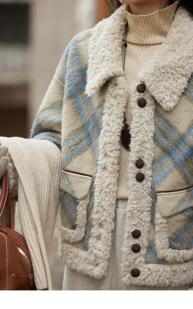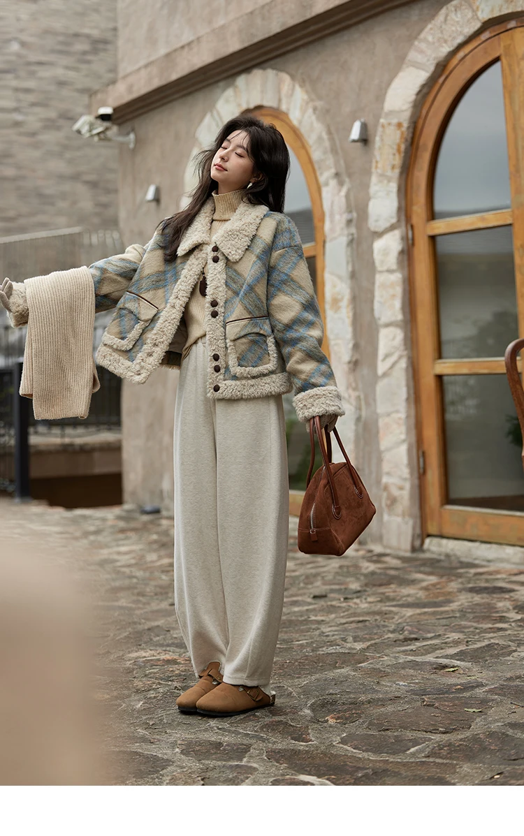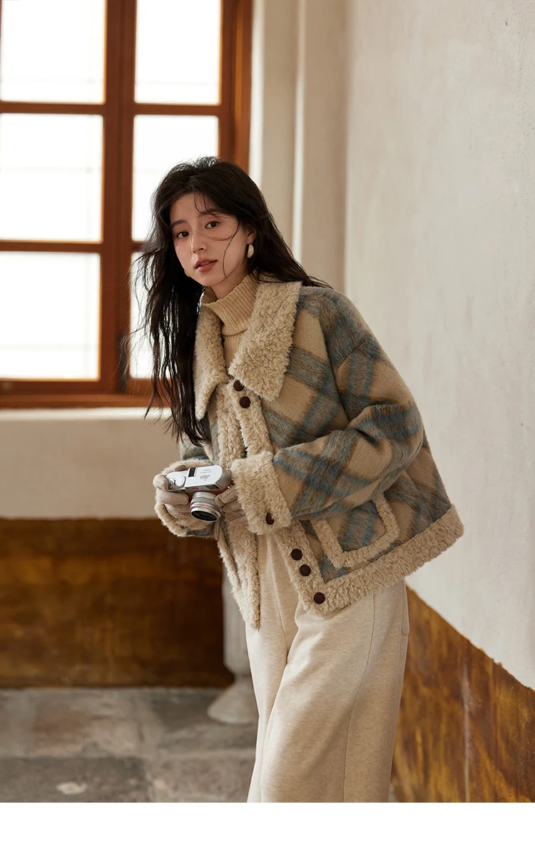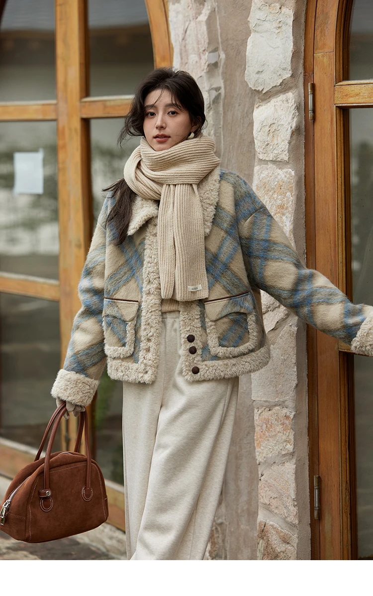 MISHOW Splicing Fleece Short Coat Women 2024 Winter Vintage French Plaid Tweed Thickened Warm Turn Down Collar Jacket MXD55W0574