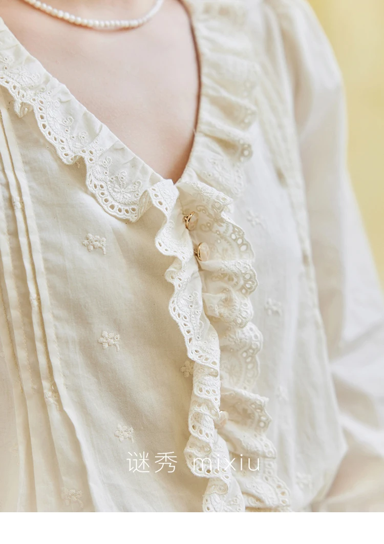 MISHOW Spring New French Shirts for Woman 2025 Long Sleeve V-neck Solid Loose Blouses Women Fashion Versatile Tops MXE14X1732