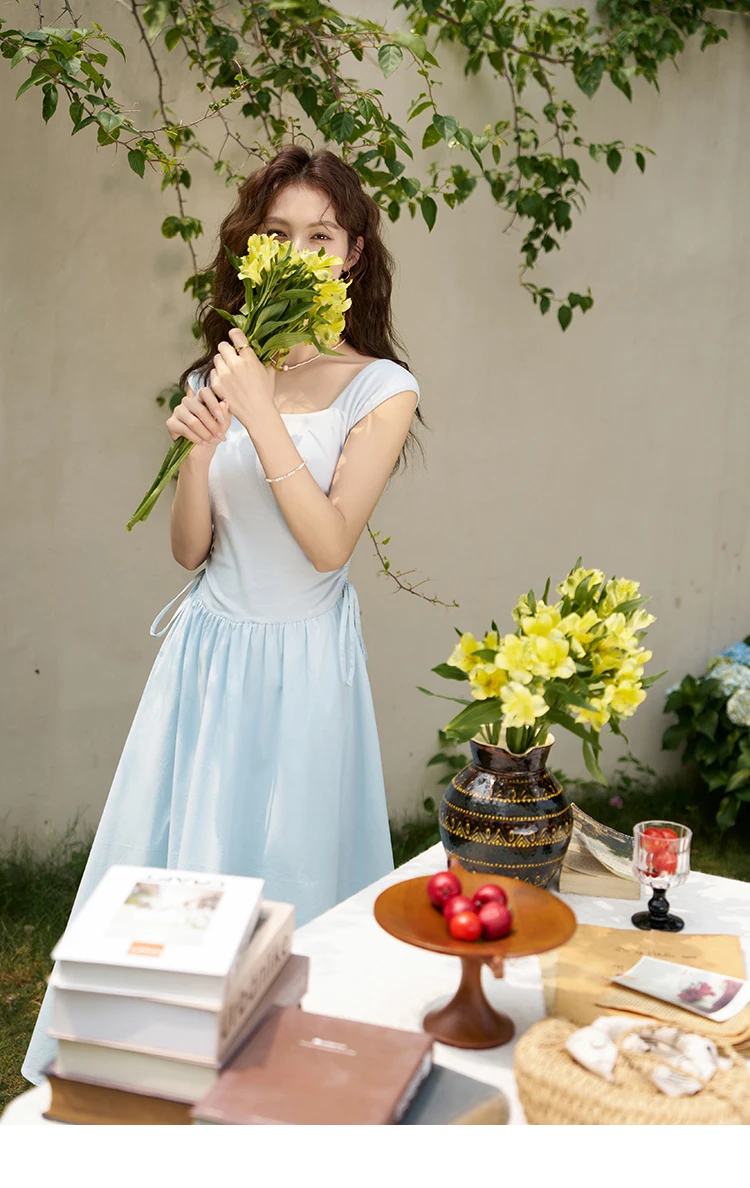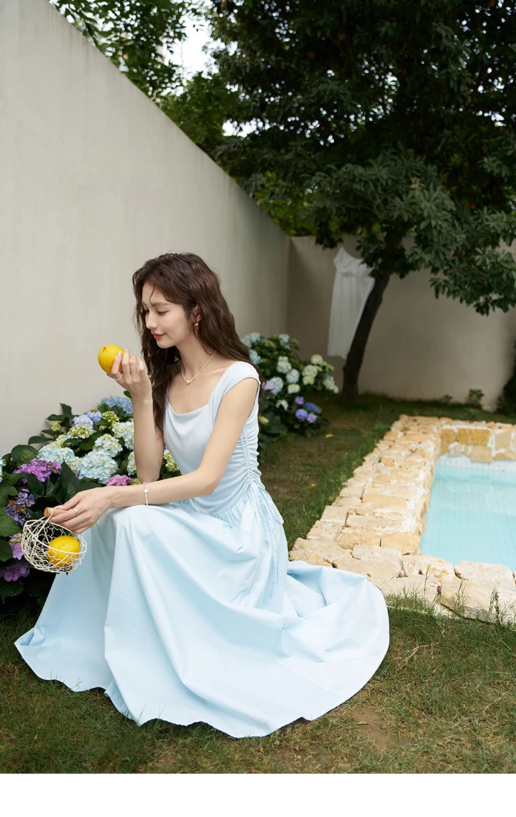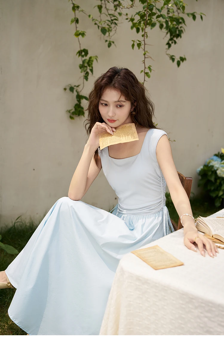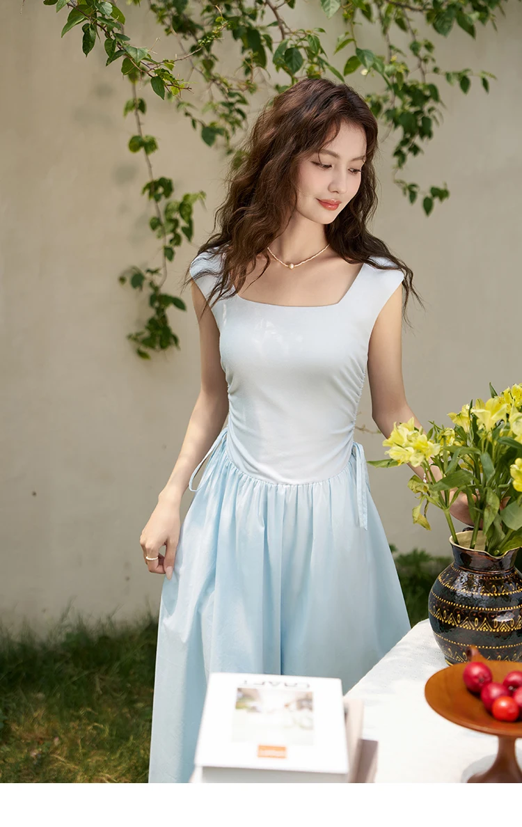 MISHOW Square Neck Patchwork Knitted Long Dress Summer 2024 Minimalist High Waist Side Drawstring Waist Slim Dresses MXD23L1818