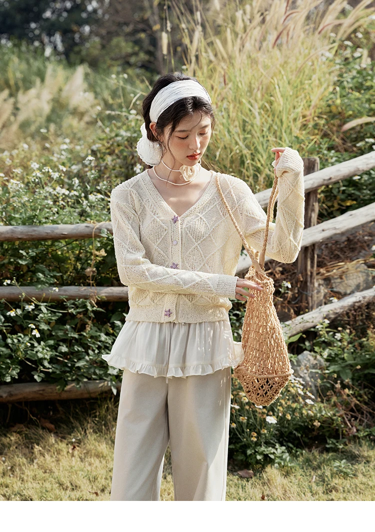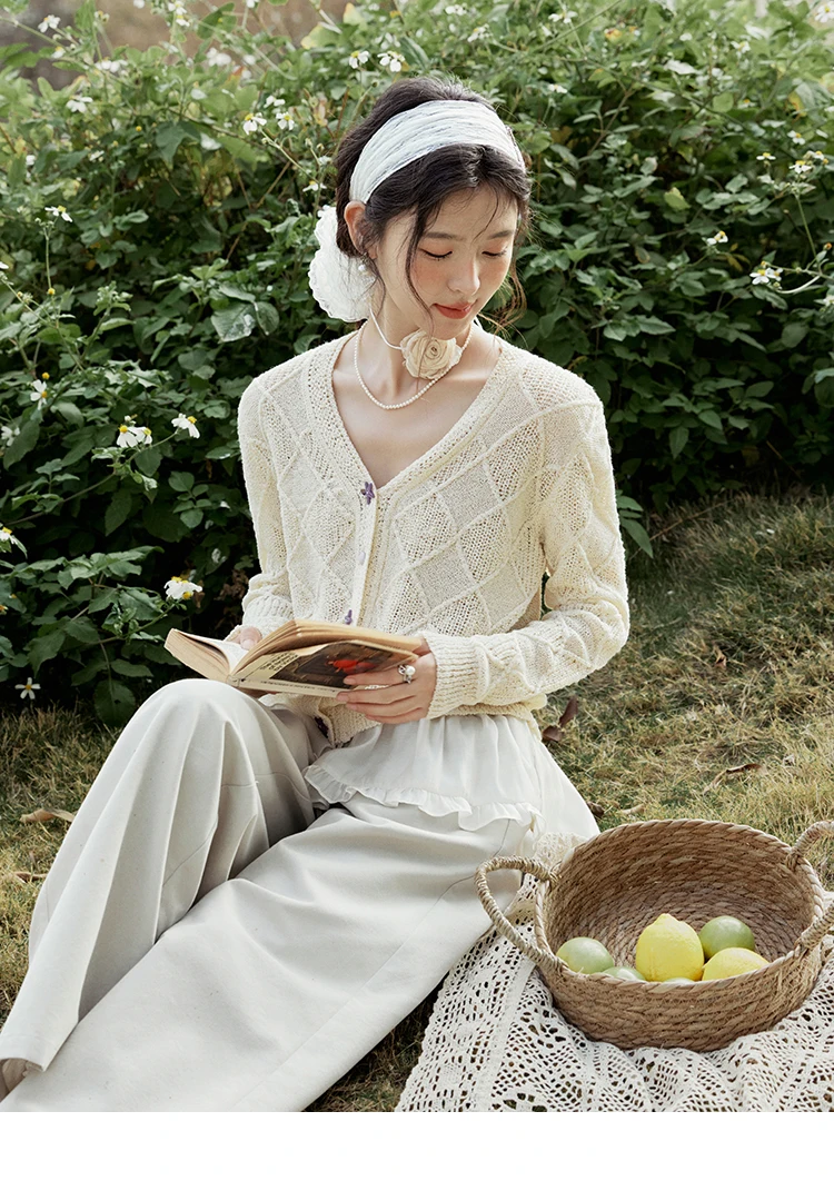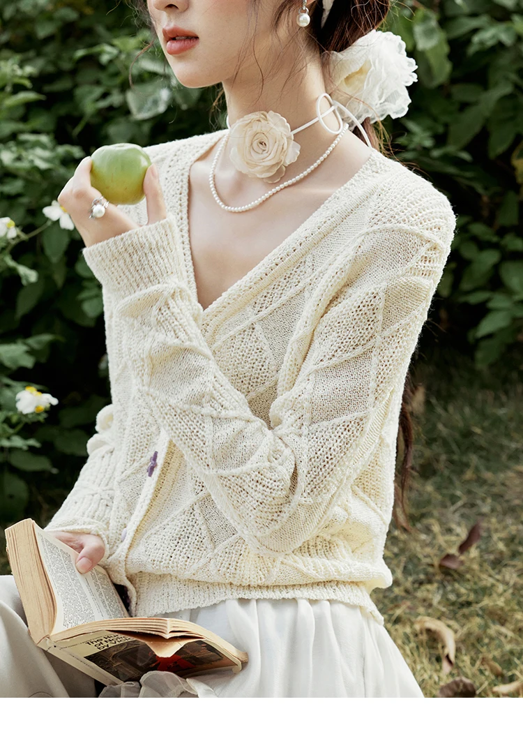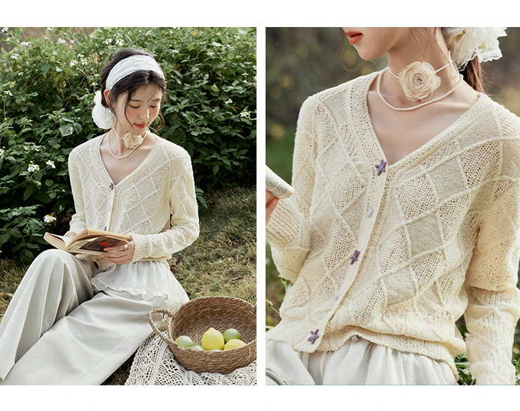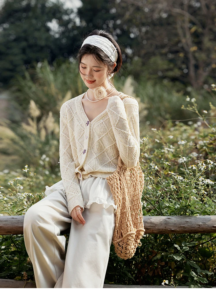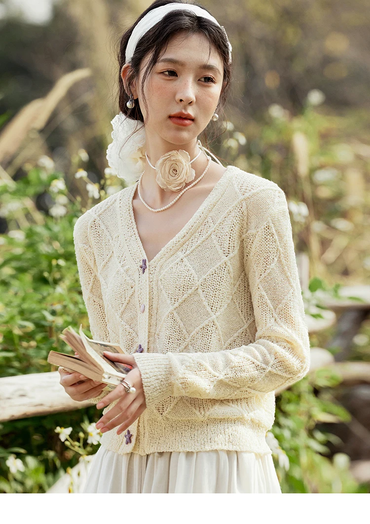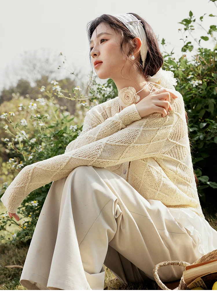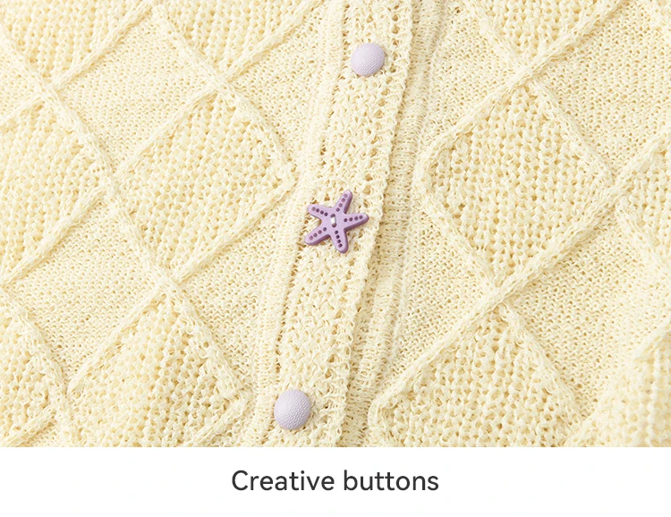 MISHOW Square Pattern Knitted Sweater for Women Spring Summer 2025 V-neck Tops Colorful Starfish Buckle Lazy Cardigan MXE16Z1213